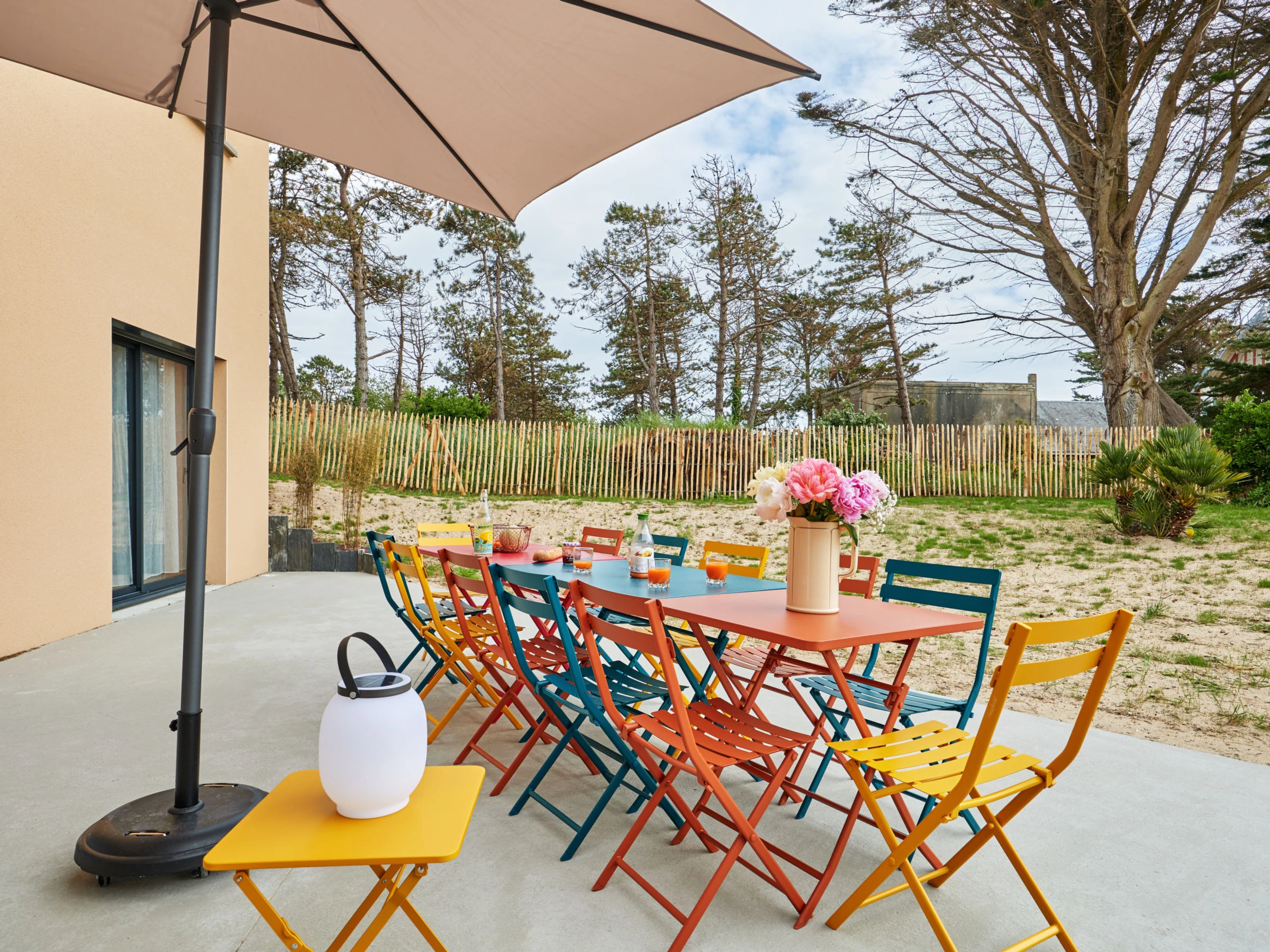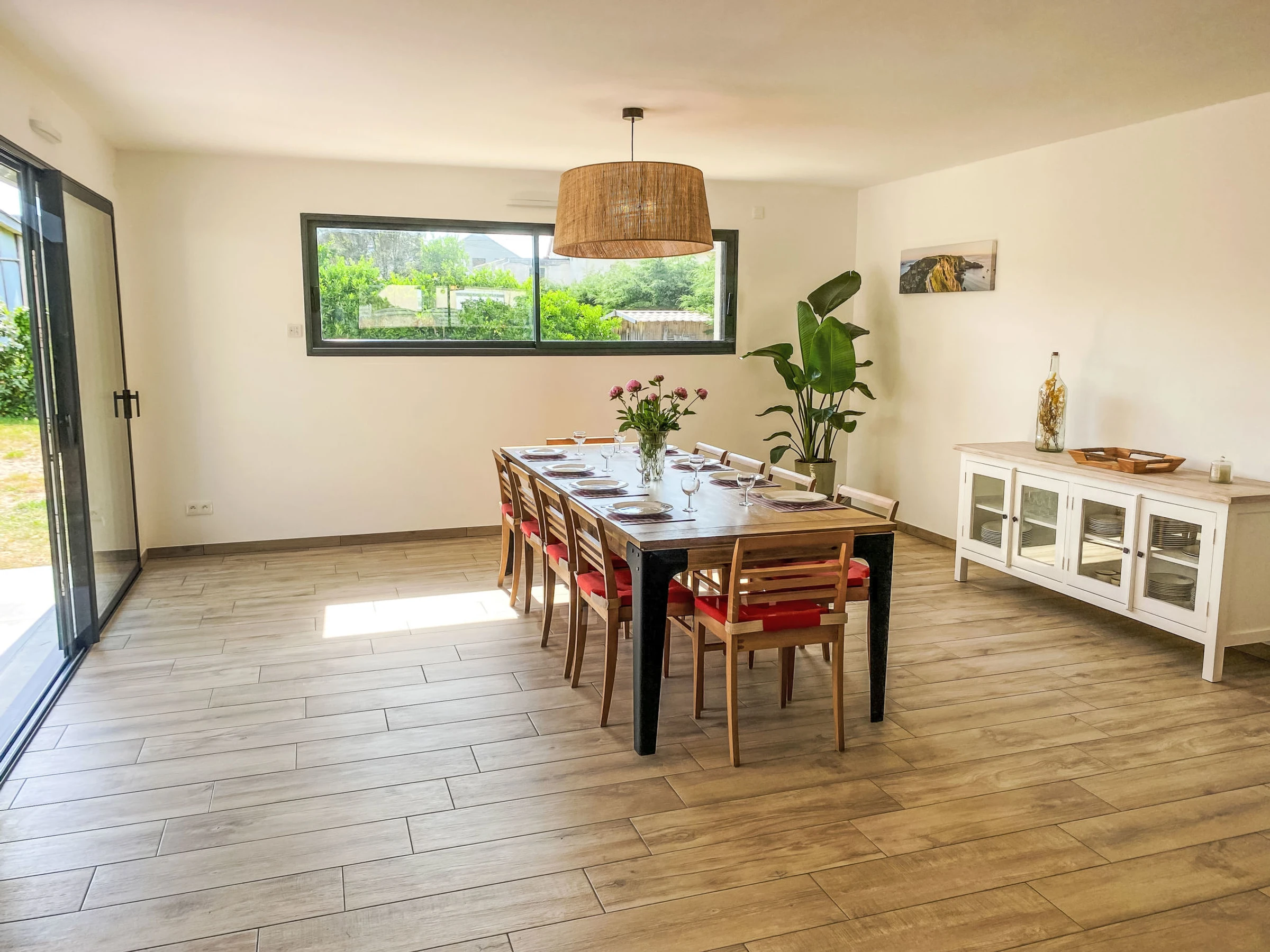 "Les lilas", maison 6 pièces 120 m2 sur 2 niveaux. Aménagement confortable et moderne: séjour/salle à manger avec TV (écran plat). Sortie sur la terrasse. 1 chambre avec 1 lit double (140 cm, longueur 190 cm). 1 chambre avec 2 lits (90 cm, longueur 200 cm) avec WC séparés. Cuisine ouverte (four, lave-vaisselle, grille-pain, bouilloire électrique, micro-ondes, congélateur, cafetière électrique). Bain/WC. Chauffage par le sol. À l'étage supérieur: 1 grande chambre avec 3 lits (90 cm, longueur 190 cm). 1 chambre avec 1 grand-lit (160 cm, longueur 200 cm). 1 chambre avec 2 lits (80 cm, longueur 200 cm). Bain/douche, WC séparé. Grande terrasse 50 m2, situation sud et situation ouest. Meubles de terrasse, barbecue, chaises longues. Vue sur la mer. A disposition: lave-linge, sèche-linge. Internet (Connexion WIFI, gratuit). Veuillez noter: maximum 1 animal/ chien autorisé. Détecteur de fumée. Annonce d'un professionnel (art 155, IV du CGI)