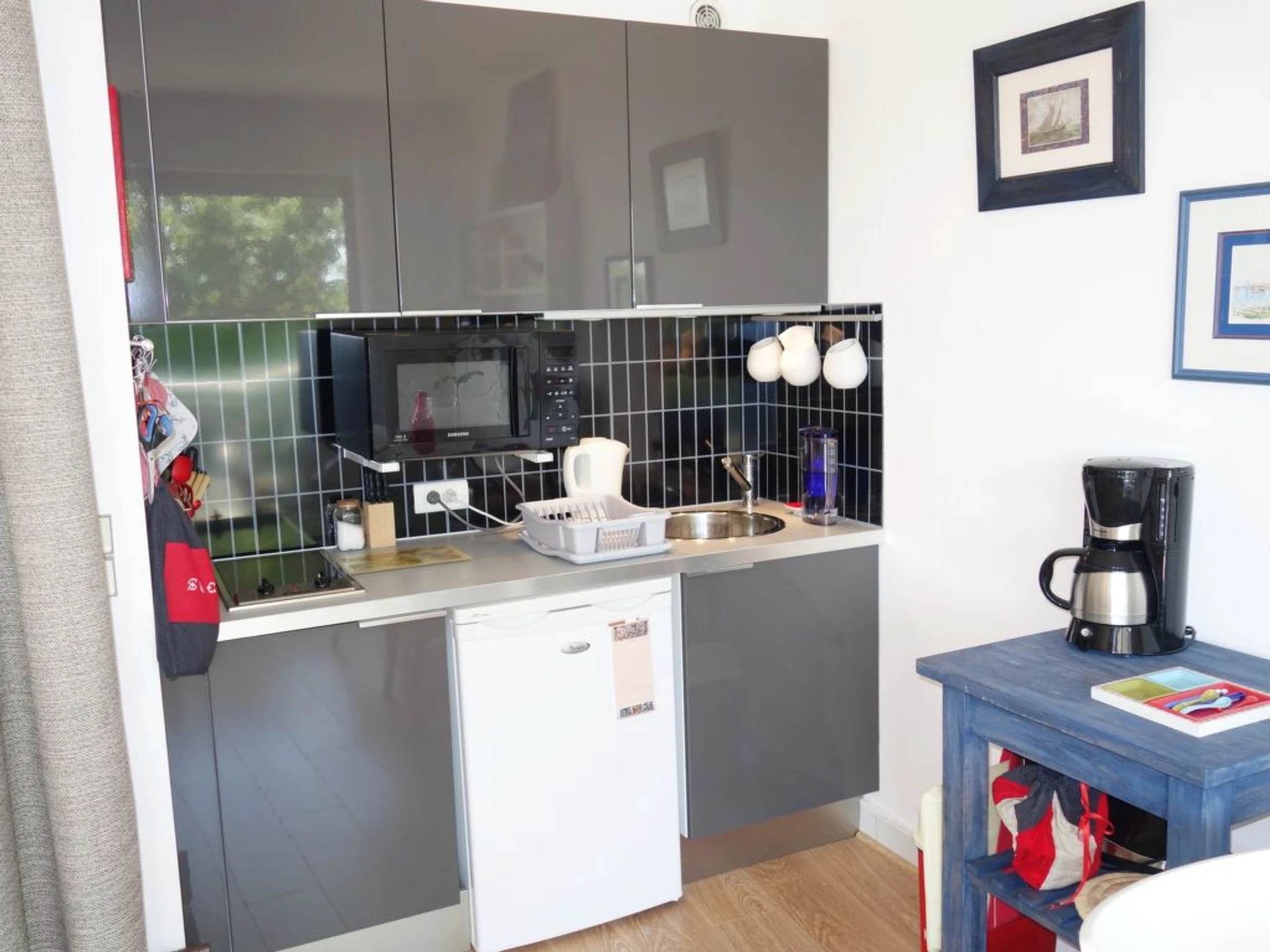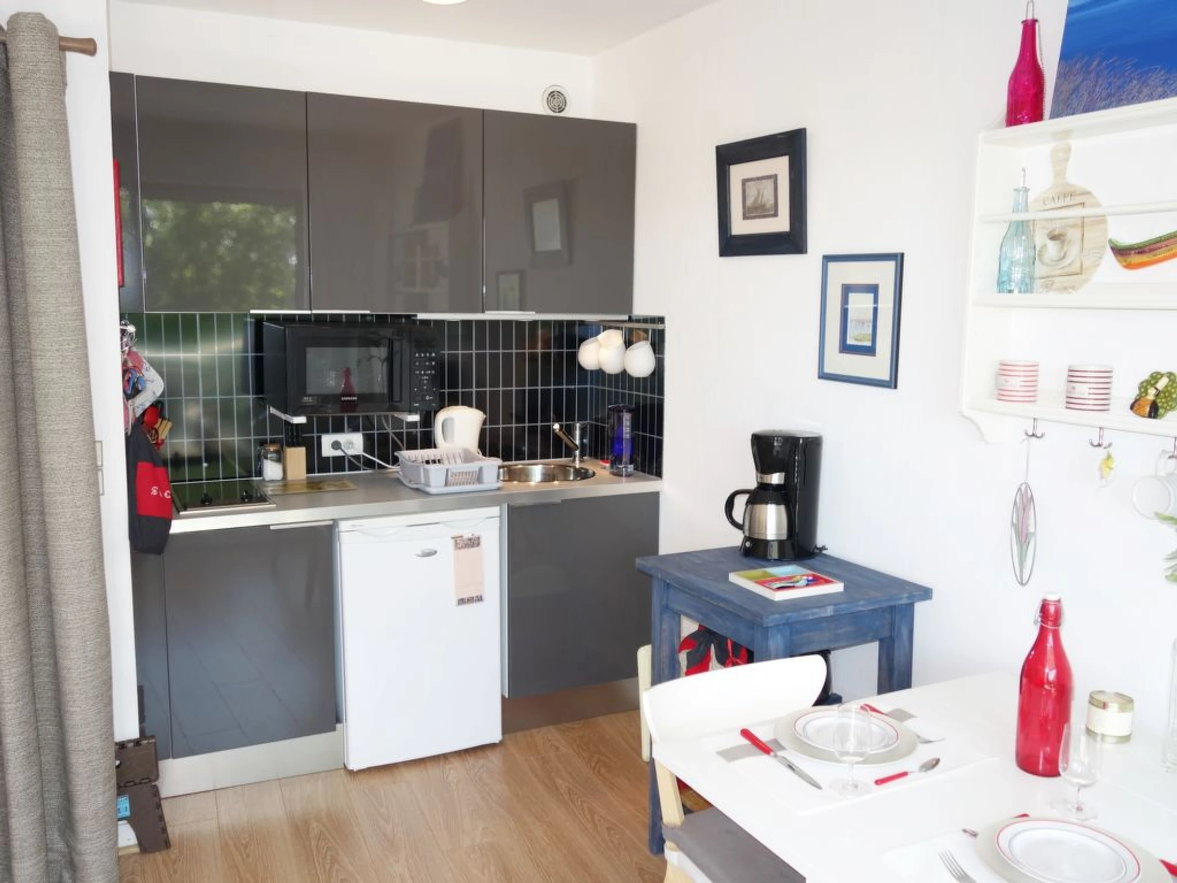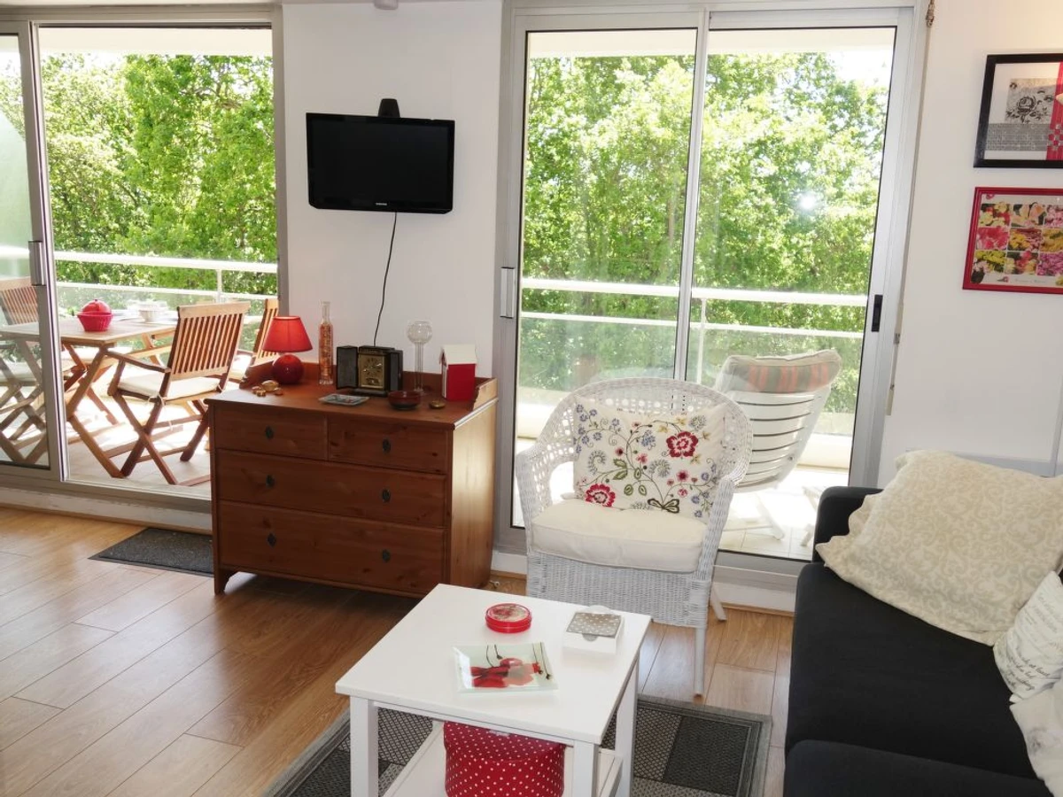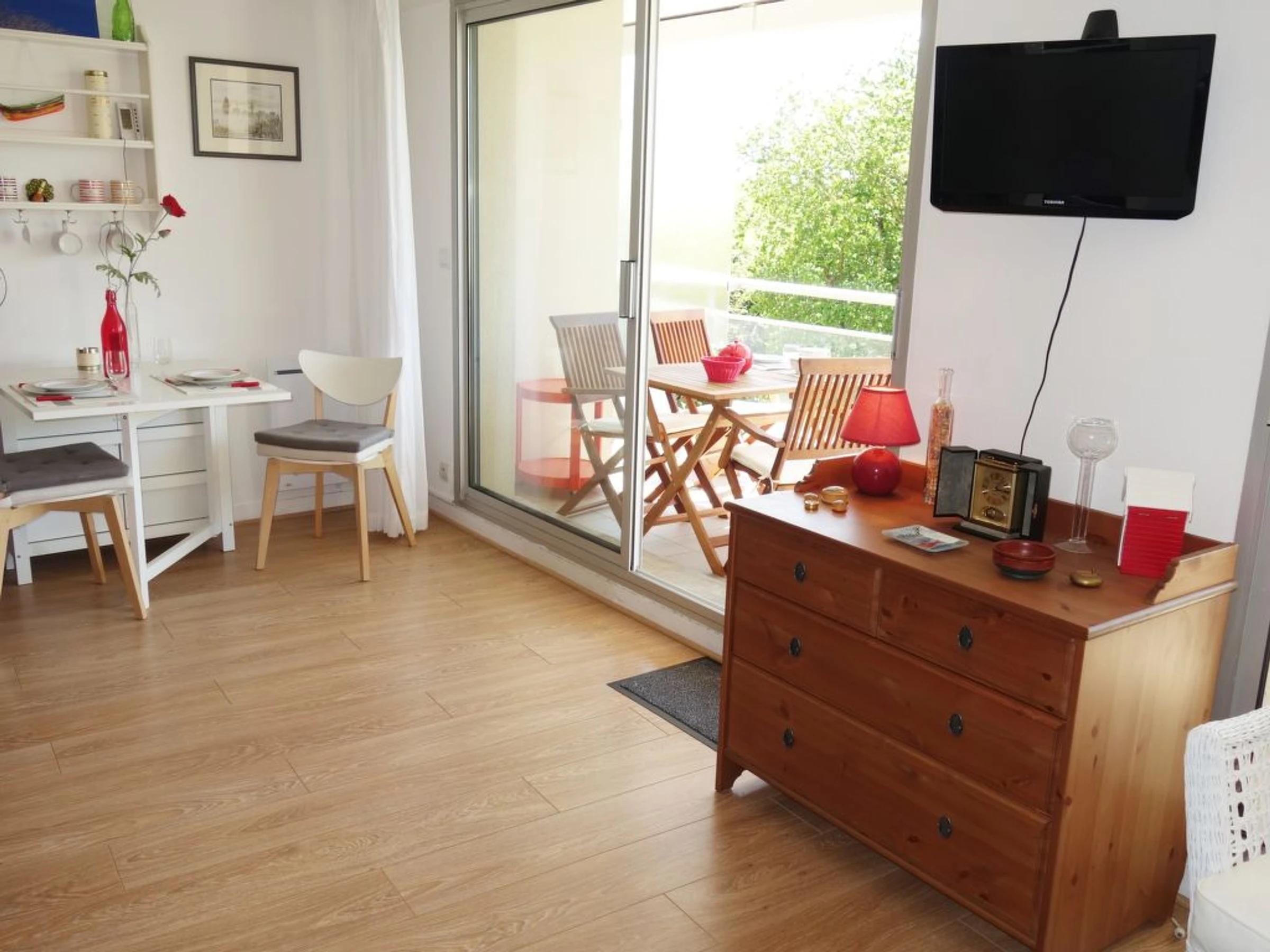 Studio 28 m2 au 1er étage. Aménagement agréable et de bon goût: séjour/salle à manger avec 1 divan-lit double (1 x 140 cm, longueur 190 cm), TV (écran plat). Sortie sur le balcon. Coin cuisine (2 plaques de cuisson, cafetière électrique, combiné micro-ondes). Salle de bains, WC séparé. Chauffage électrique. Grand balcon 12 m2, situation sud. Mobilier de balcon. Belle vue sur le jardin. A disposition: lit bébé. Internet (Connexion WIFI, en sus). Place de parking (cloturée). Veuillez noter: logement pour non fumeurs. Détecteur de fumée.