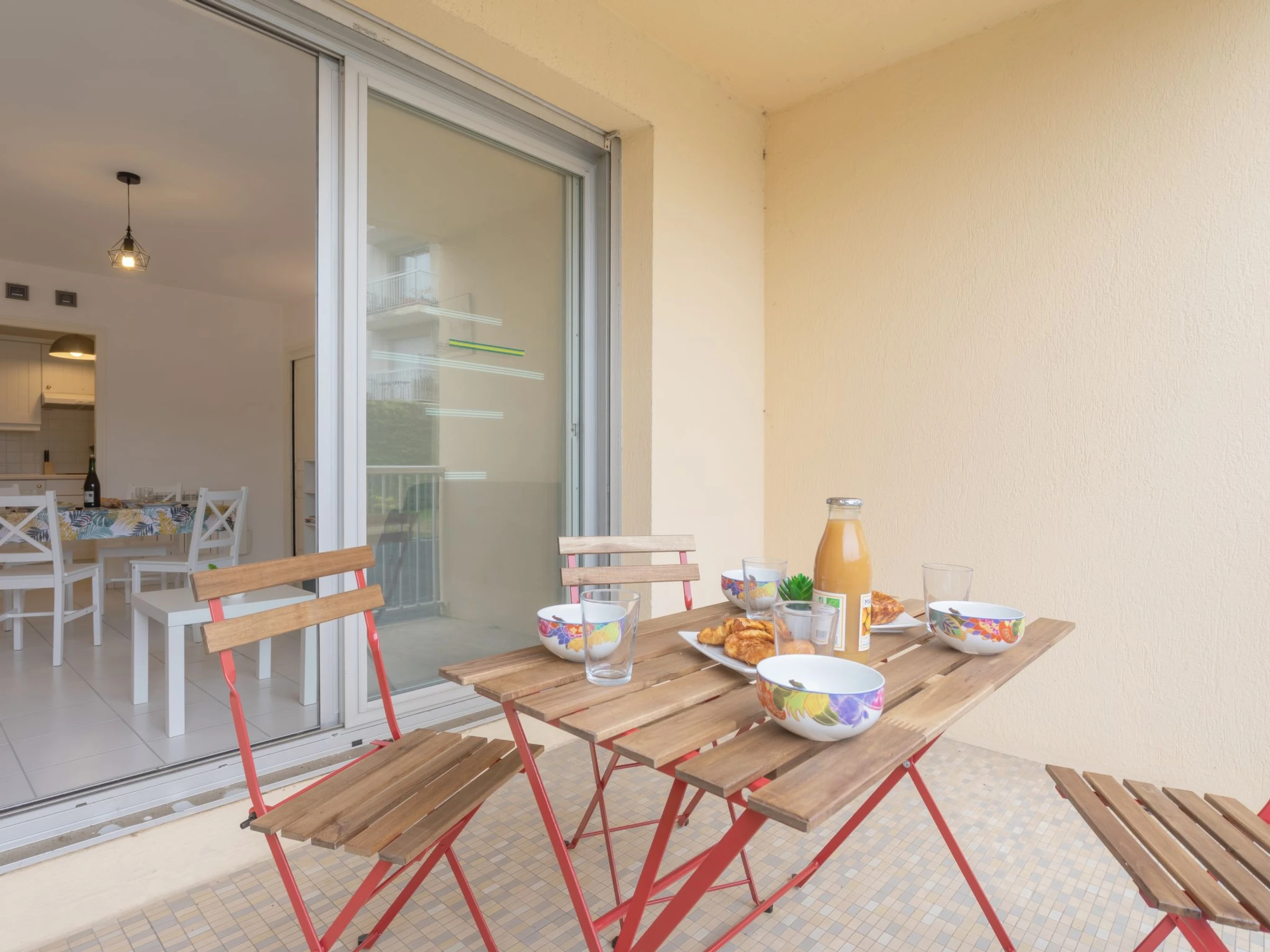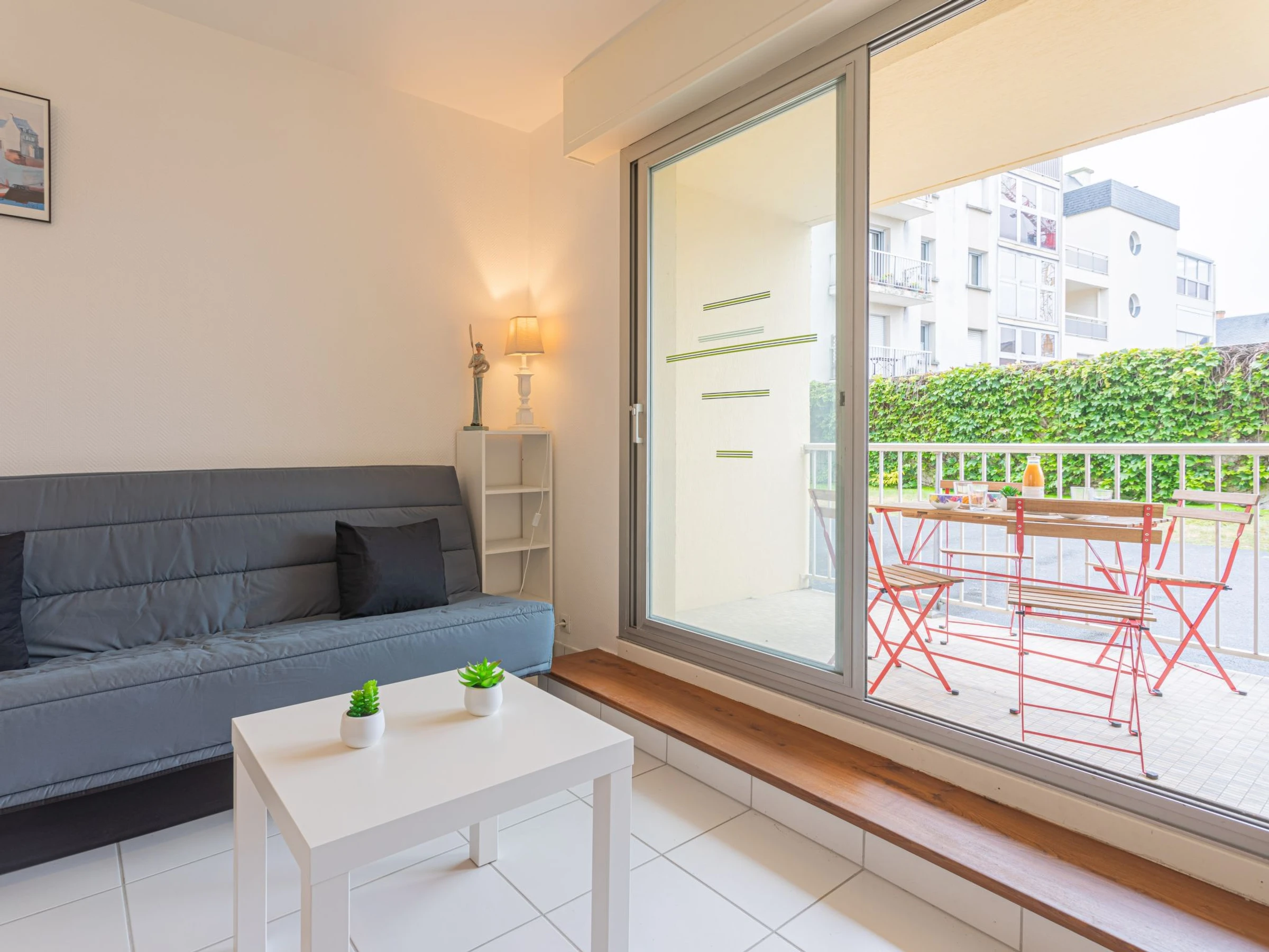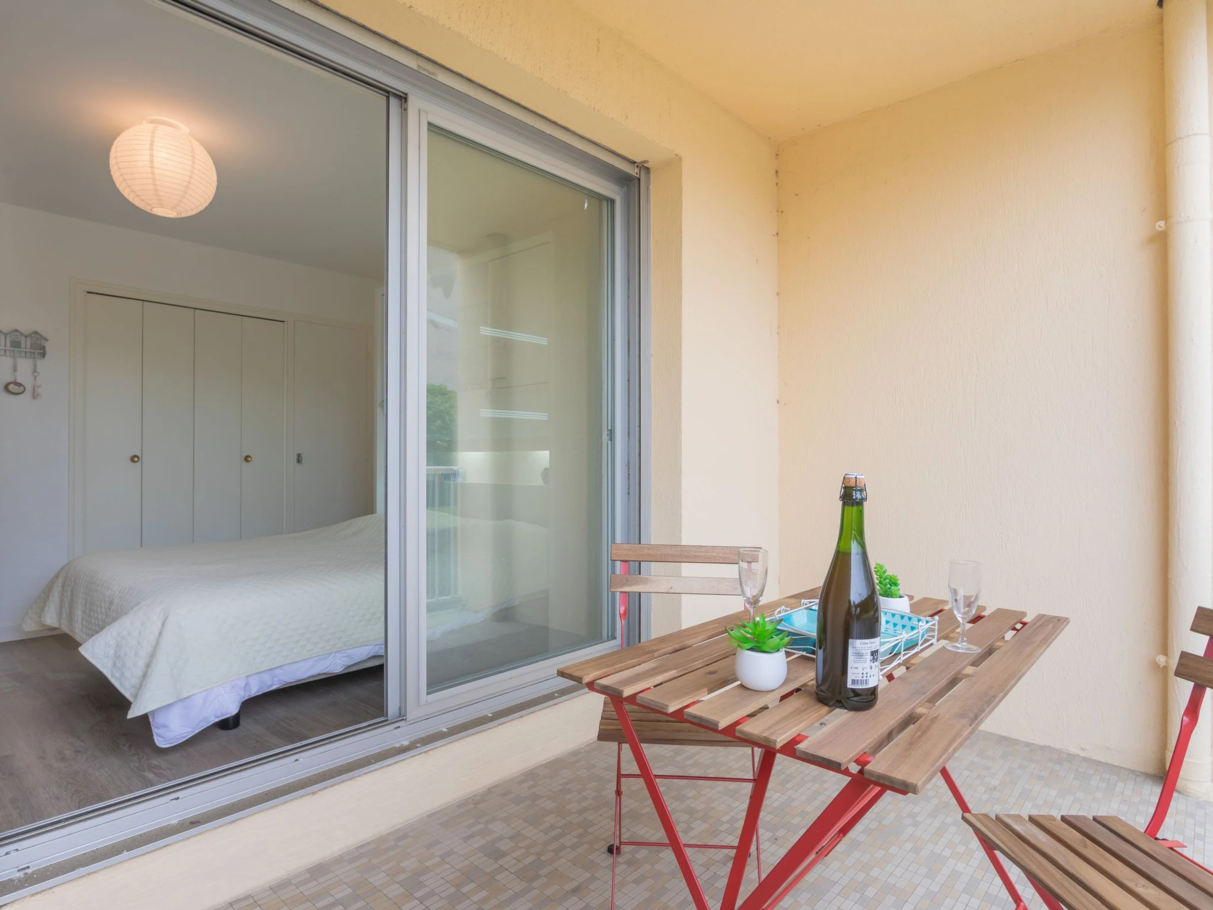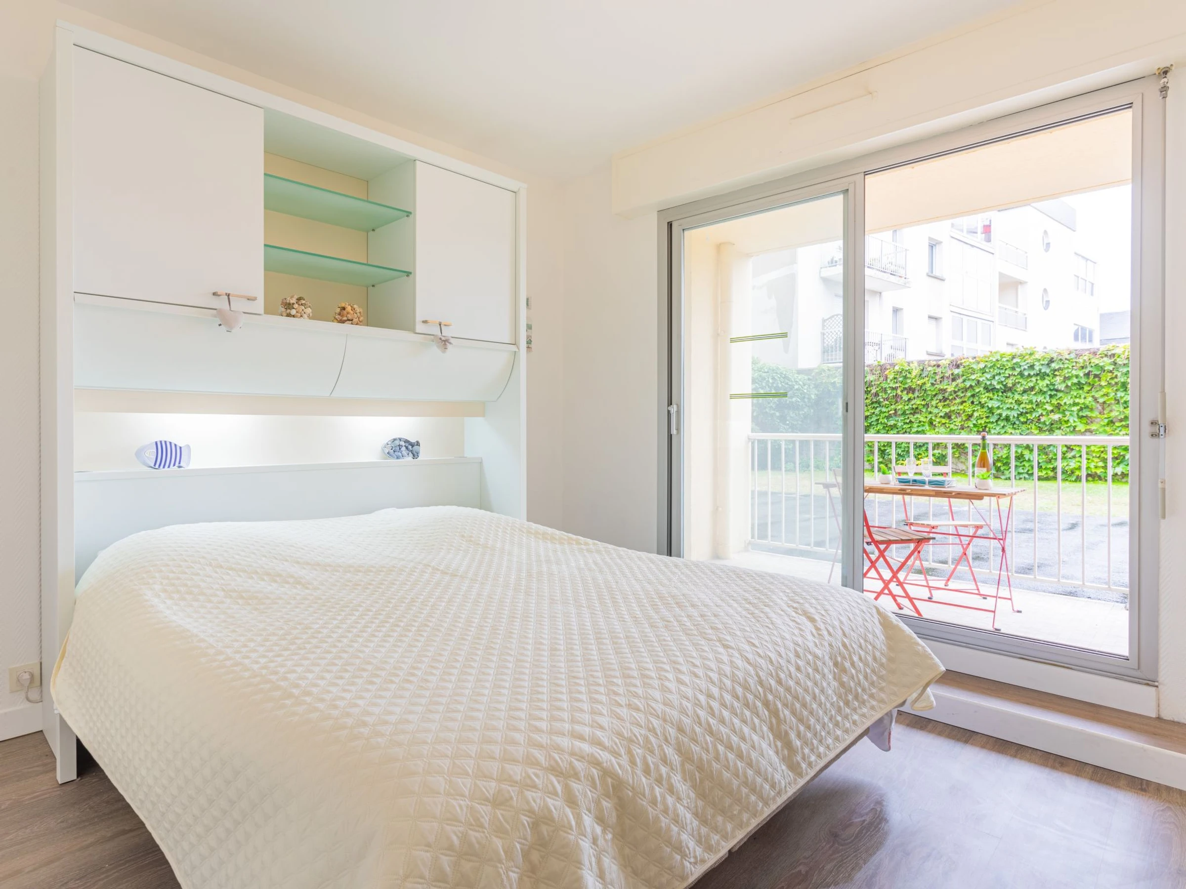 Apt 2 pièces 42 m2, au rez-de-chaussée. Aménagement fonctionnel et agréable: séjour/salle à manger avec 1 divan-lit double (140 cm, longueur 190 cm), TV (écran plat), chauffage électrique. 1 chambre avec 1 grand-lit (160 cm, longueur 200 cm). Sortie sur le balcon. Coin cuisine (four, 2 plaques à induction, grille-pain, bouilloire électrique, four micro-ondes, cafetière électrique). Douche/WC. Balcon, situation sud. Mobilier de balcon. A disposition: lave-linge, sèche-cheveux. Internet (Connexion WIFI, en sus). Place de parking (couvert, 1 Voiture). Veuillez noter: logement côté parking. Logement non-fumeur. Détecteur de fumée.