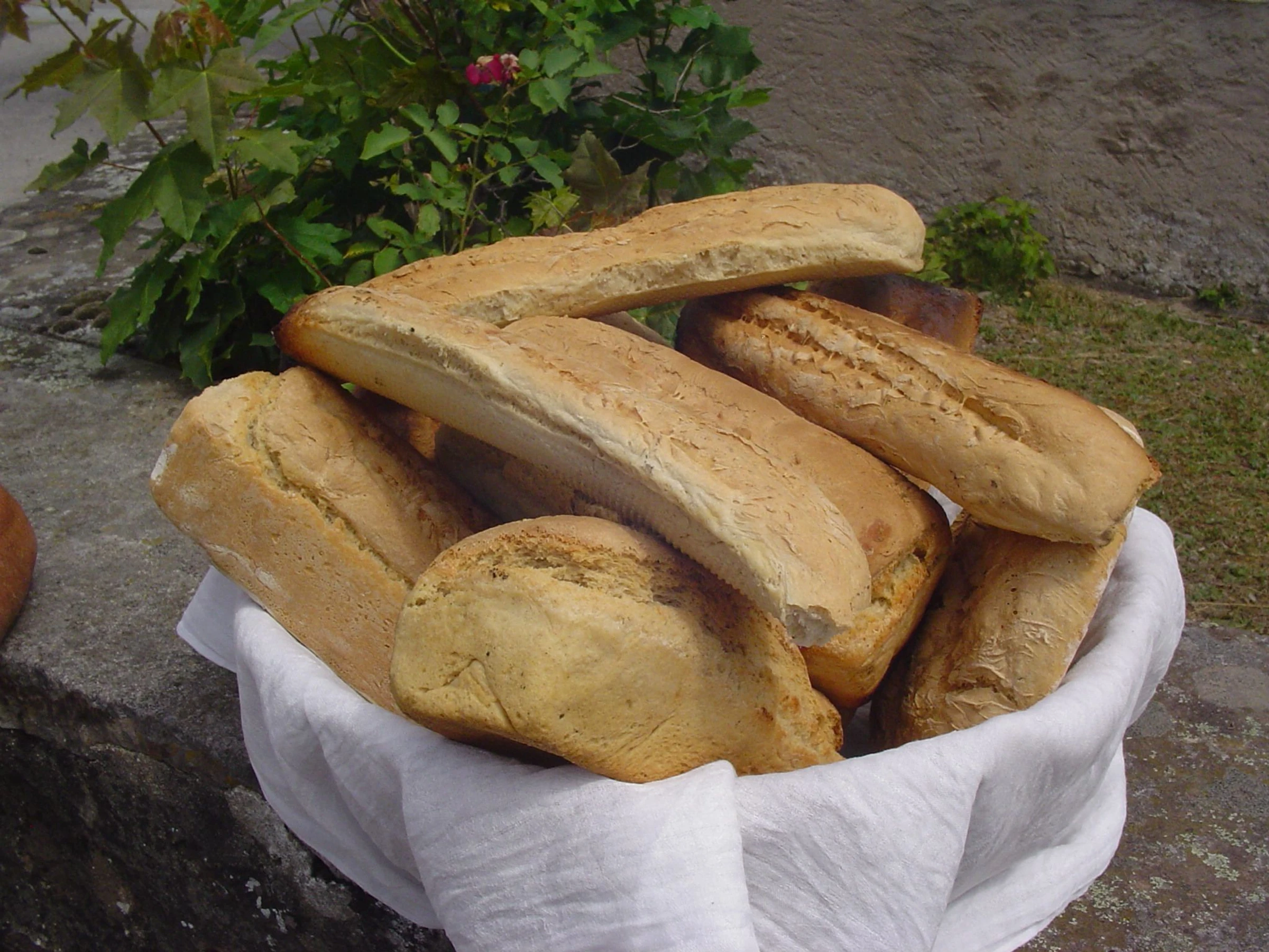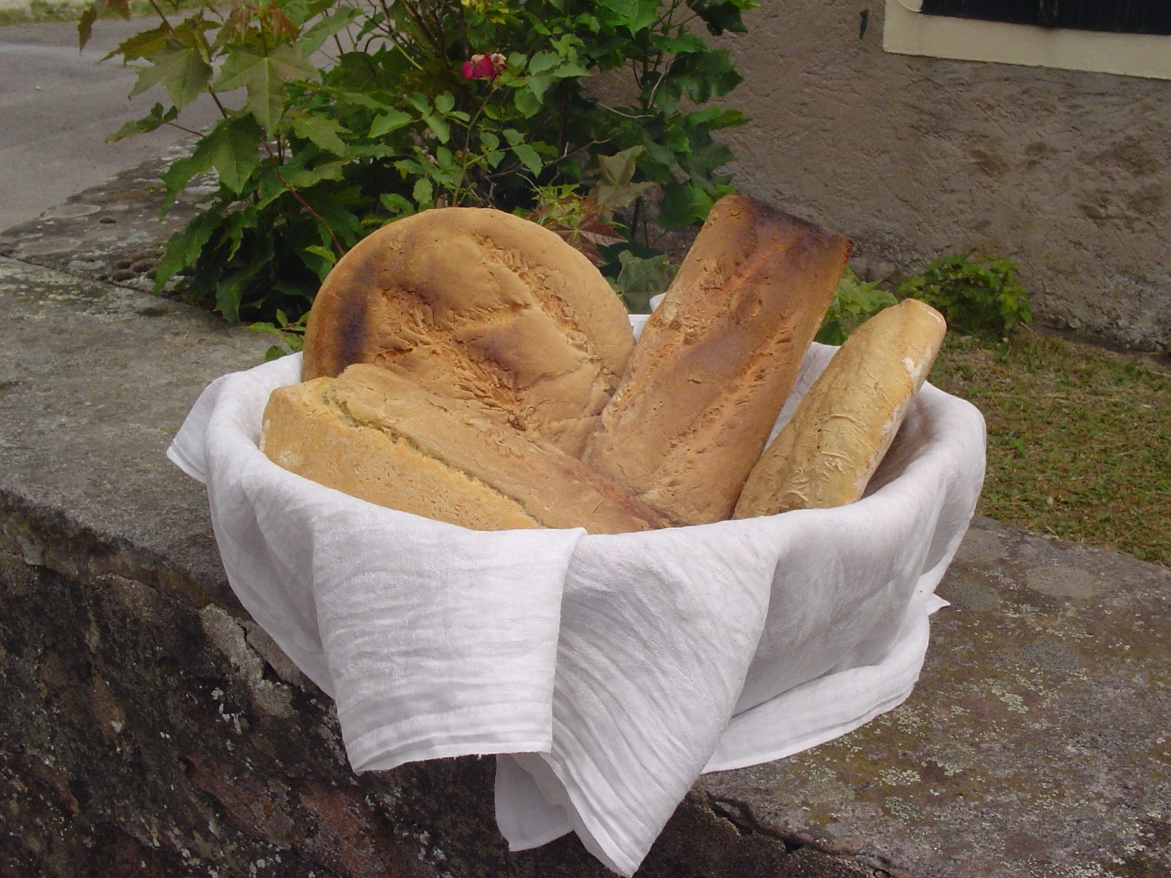 A la belle saison, fabrication artisanale de pain. Cuisson à l'ancienne au feu de bois.