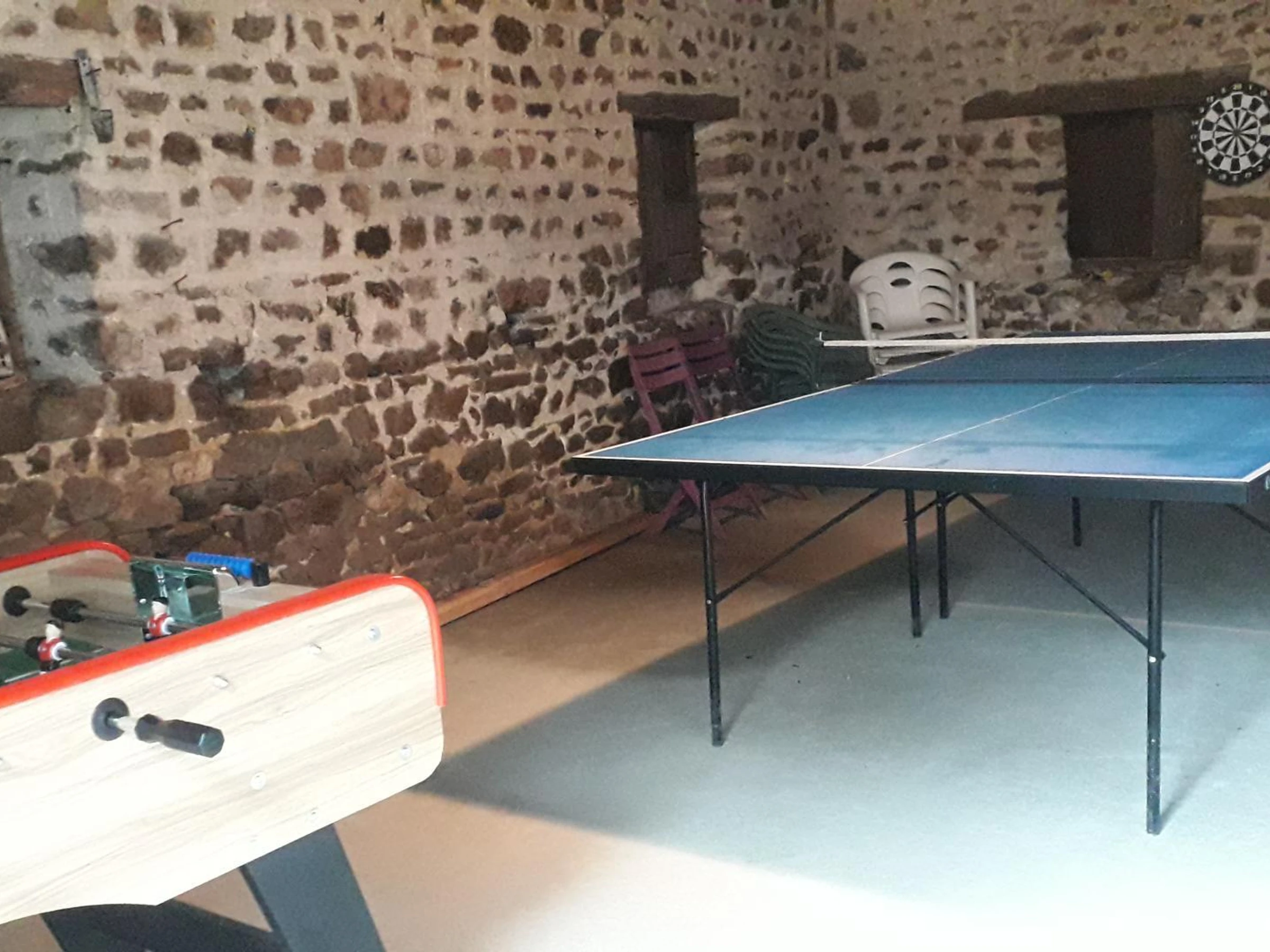 Salle de jeux de 30m² comprenant une table de ping pong, un baby foot, un jeu de fléchettes, des jeux d'extérieur.