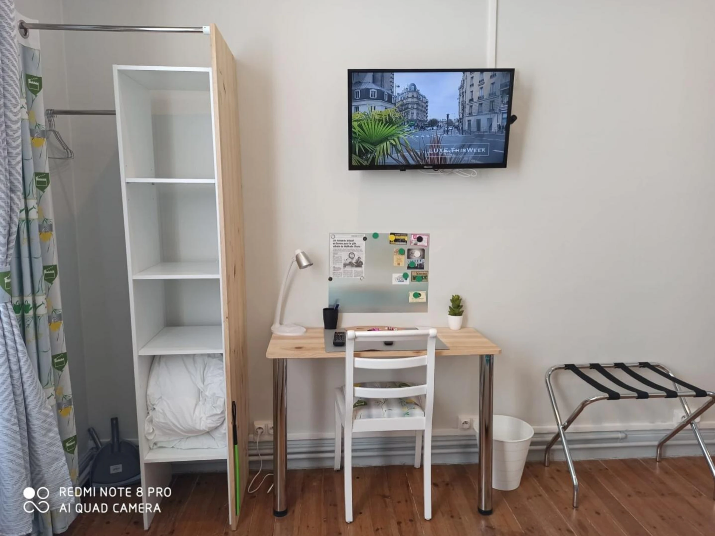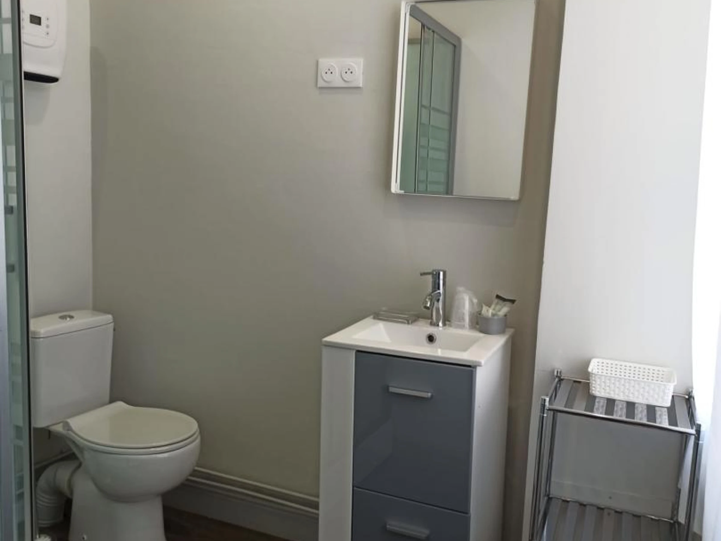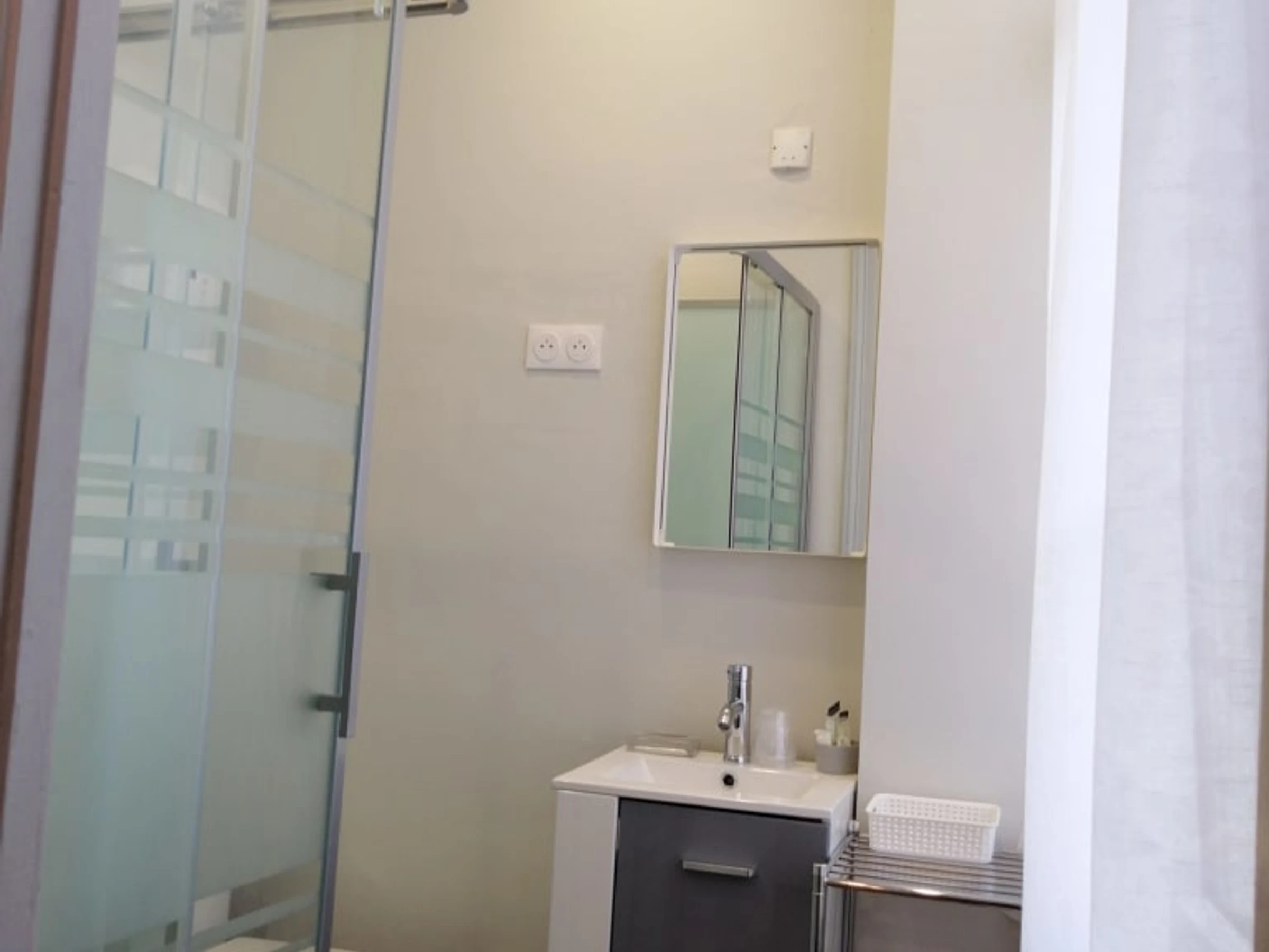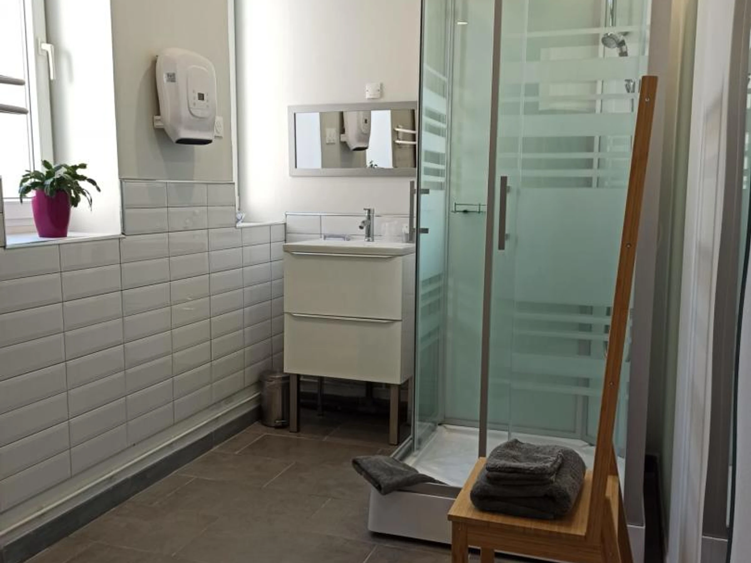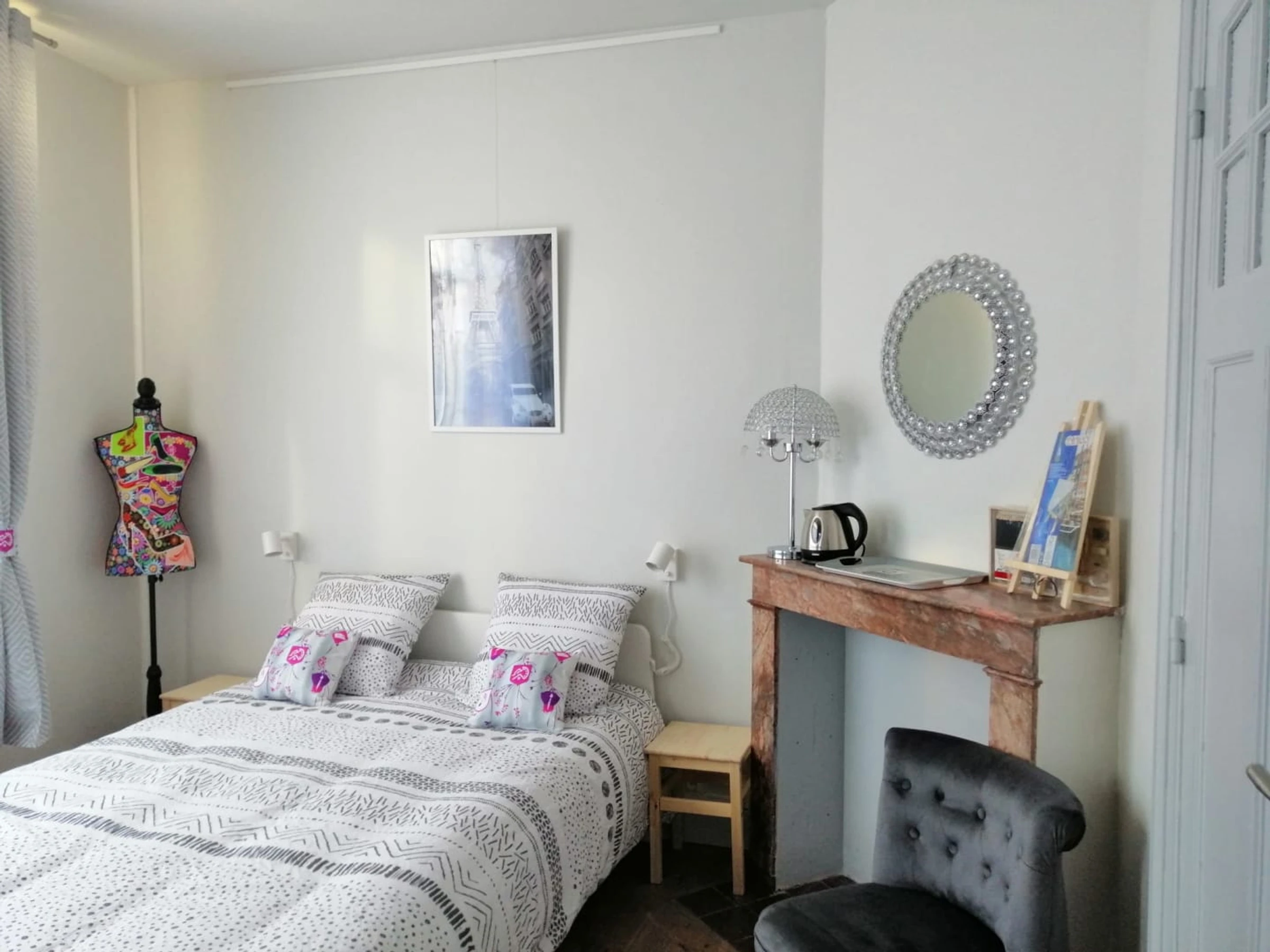 Chambre "The fashion institute" avec1 lit 140x190, salle d'eau avec douche cabine et WC.