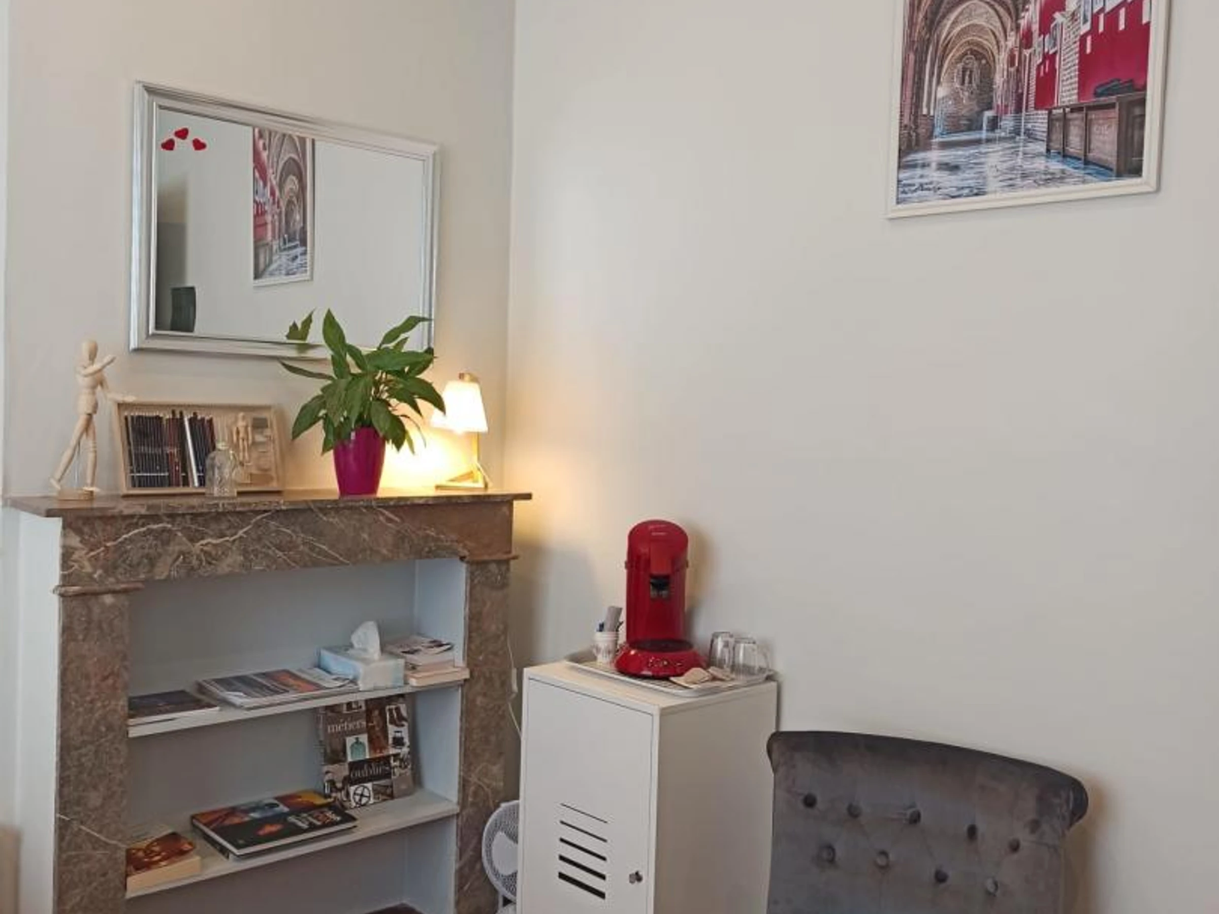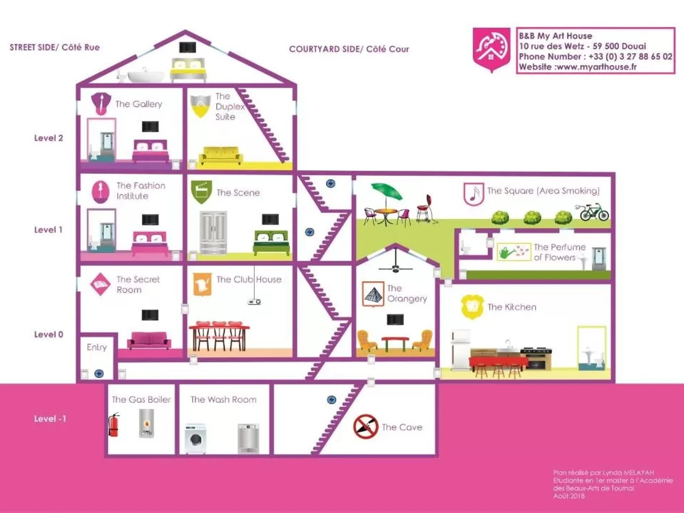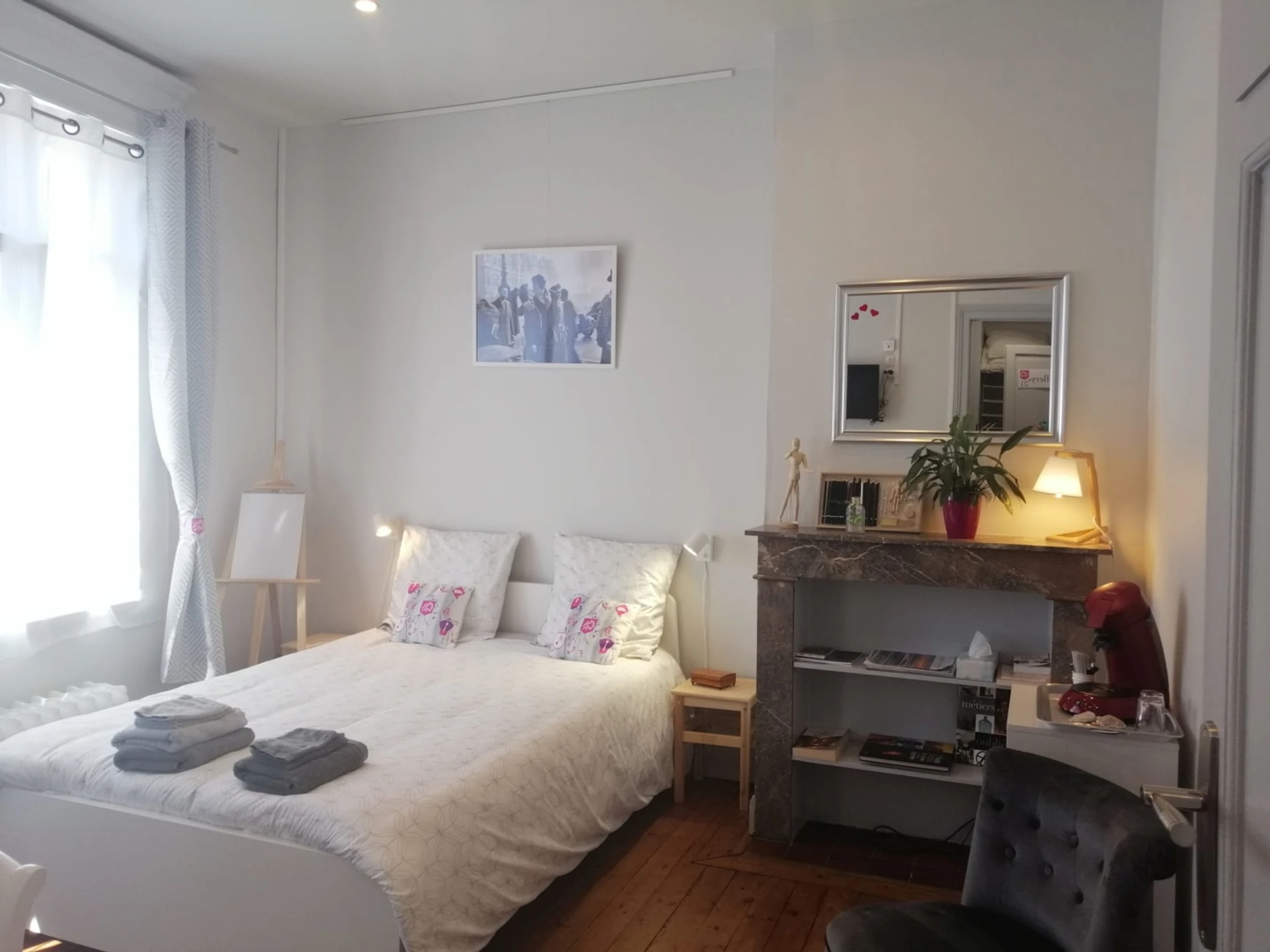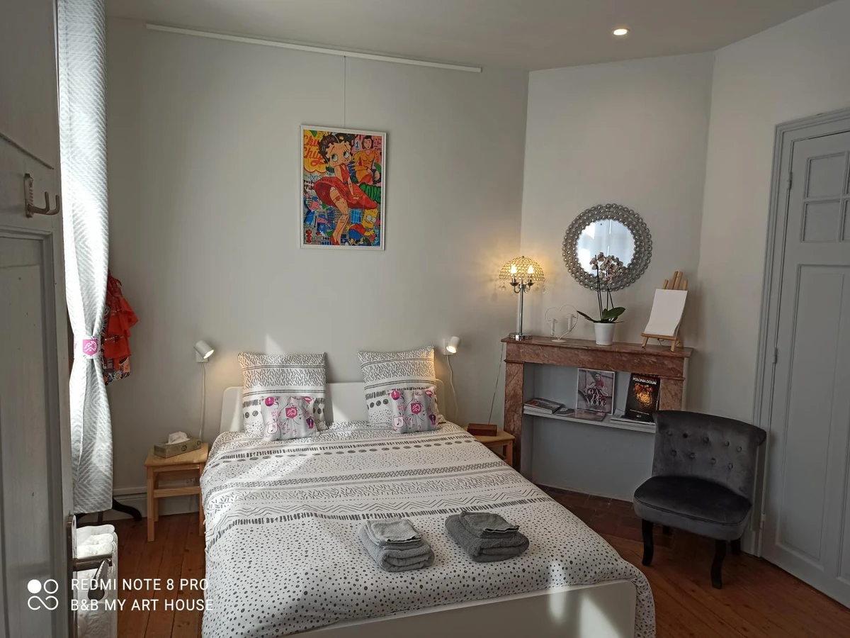 Chambre "The duplex suite" avec 1 lit banquette 160x190 pouvant servir de canapé, un lit bébé, salle d'eau avec douche cabine et WC. Chambre à l'étage avec 1 lit 140x190. Le stationnement se fait dans la rue (zone payante). Notre concept : L'Art de Recevoir !!!Nos chambres sont thématisées sur l'Art ! Une connexion Wi-Fi est disponible gratuitement dans l'ensemble de l'établissement. Possibilité de service traiteur sous forme de plateau repas à commander 24h au préalable auprès des propriétaires. Service de blanchisserie. Une situation géographique idéale pour vos déplacements professionnels ou pour découvrir la capitale des Géants du Nord. En face de l'école d'Art, à 400m du tribunal de grande instance, de l'Église Saint Pierre et de l'hôpital de Douai, à 10min à pied du célèbre beffroi.