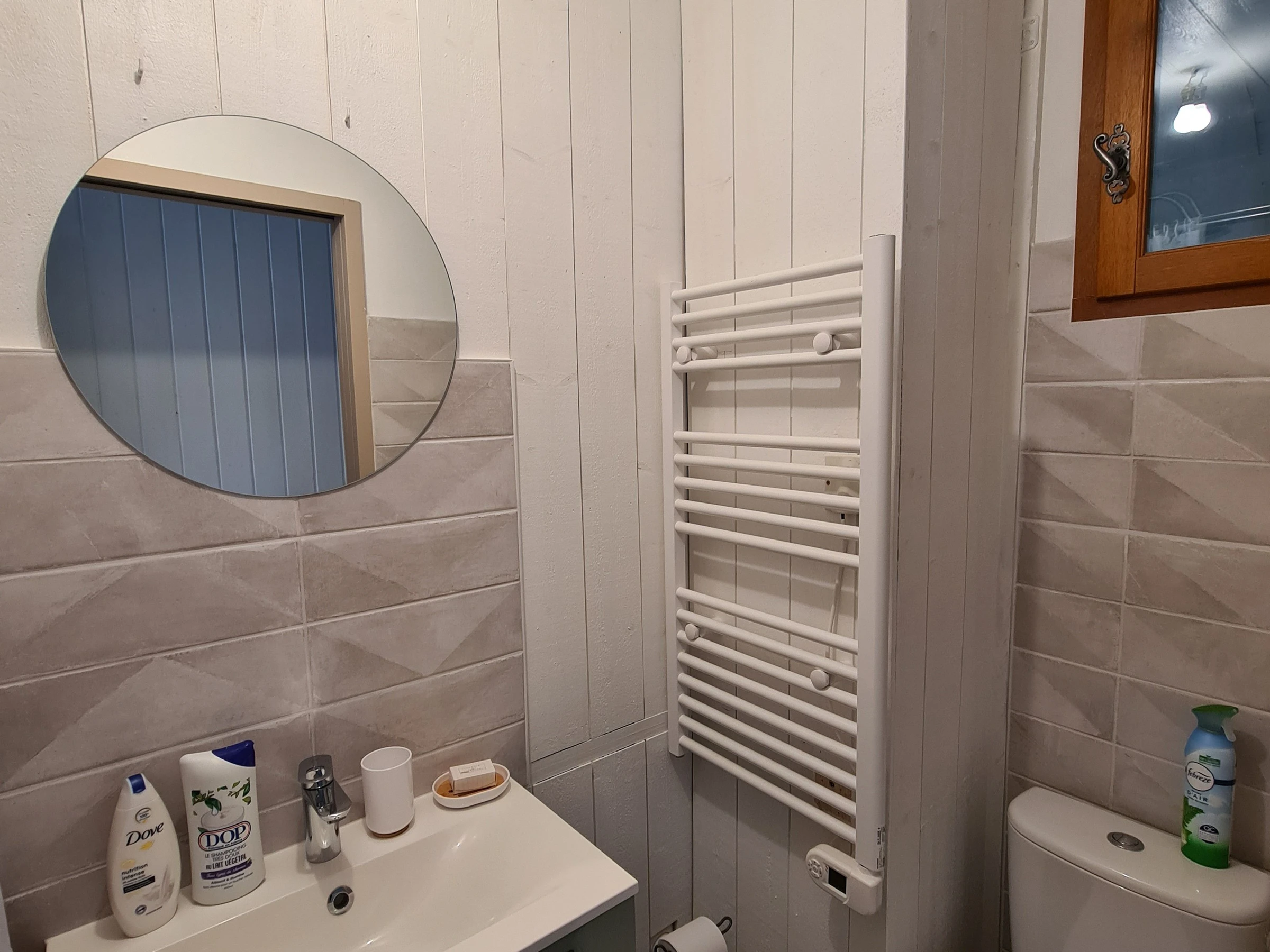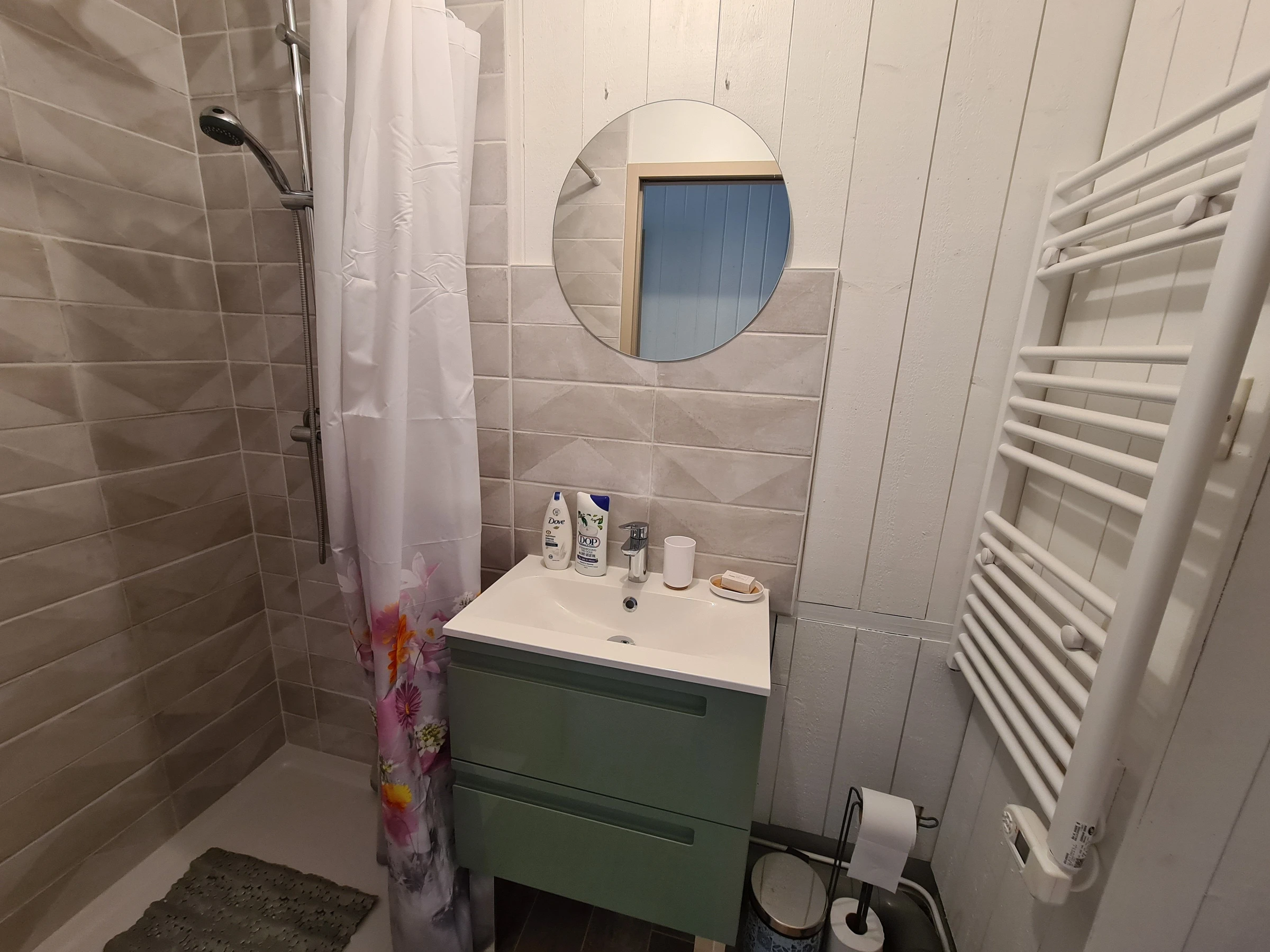 Un couloir vous permettra d’accéder à une salle d’eau avec wc puis à un cellier.