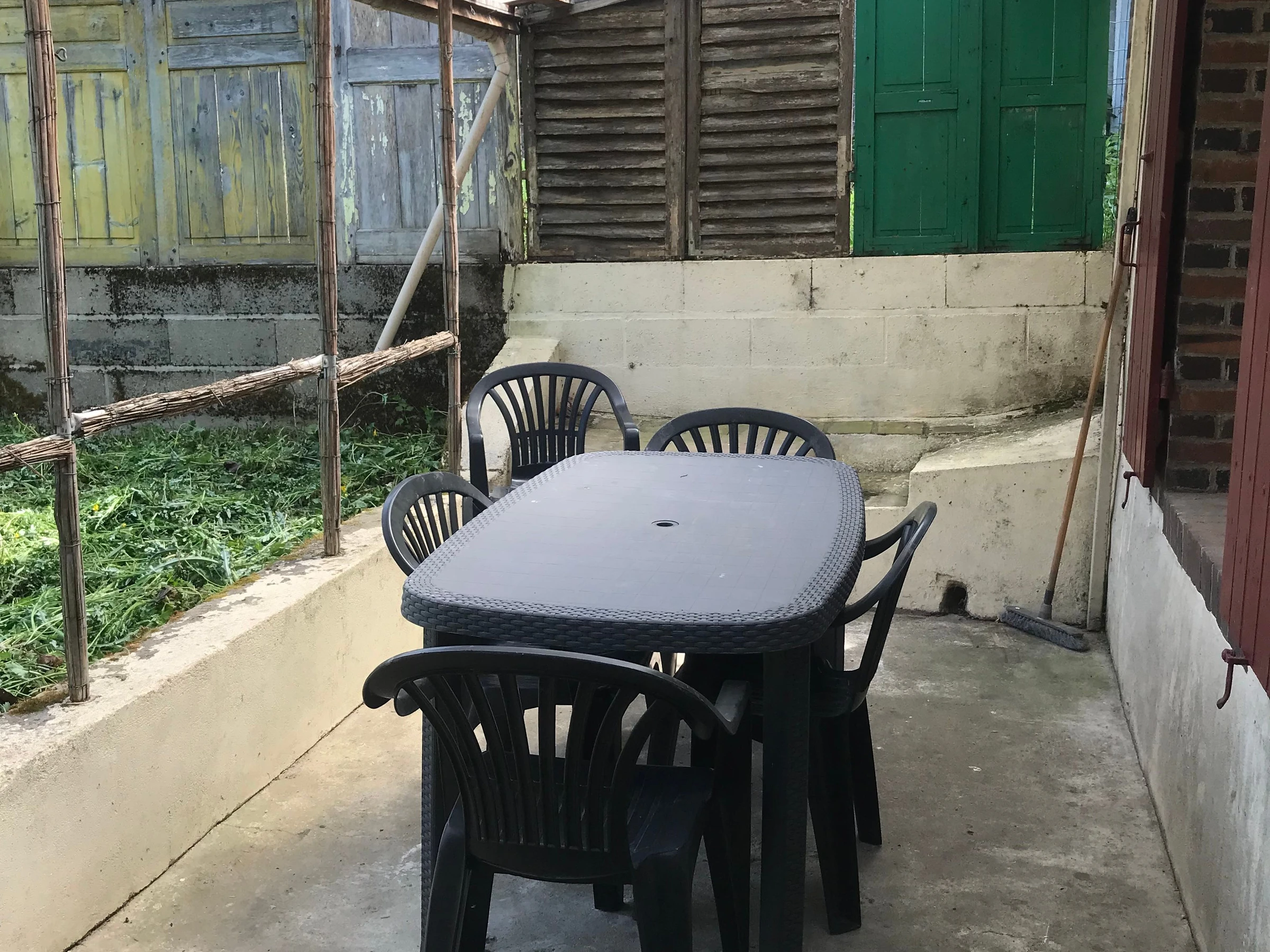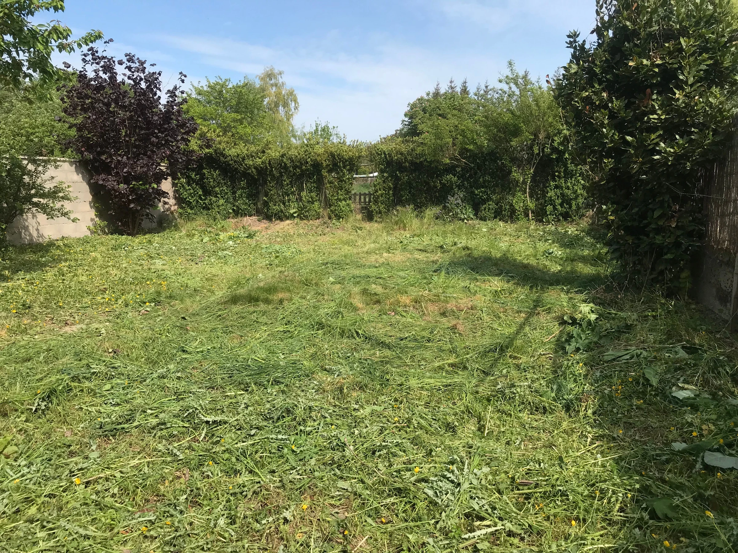 Une porte vous donnera accès à la terrasse et au jardin d'environ 100 m² sur l’arrière.