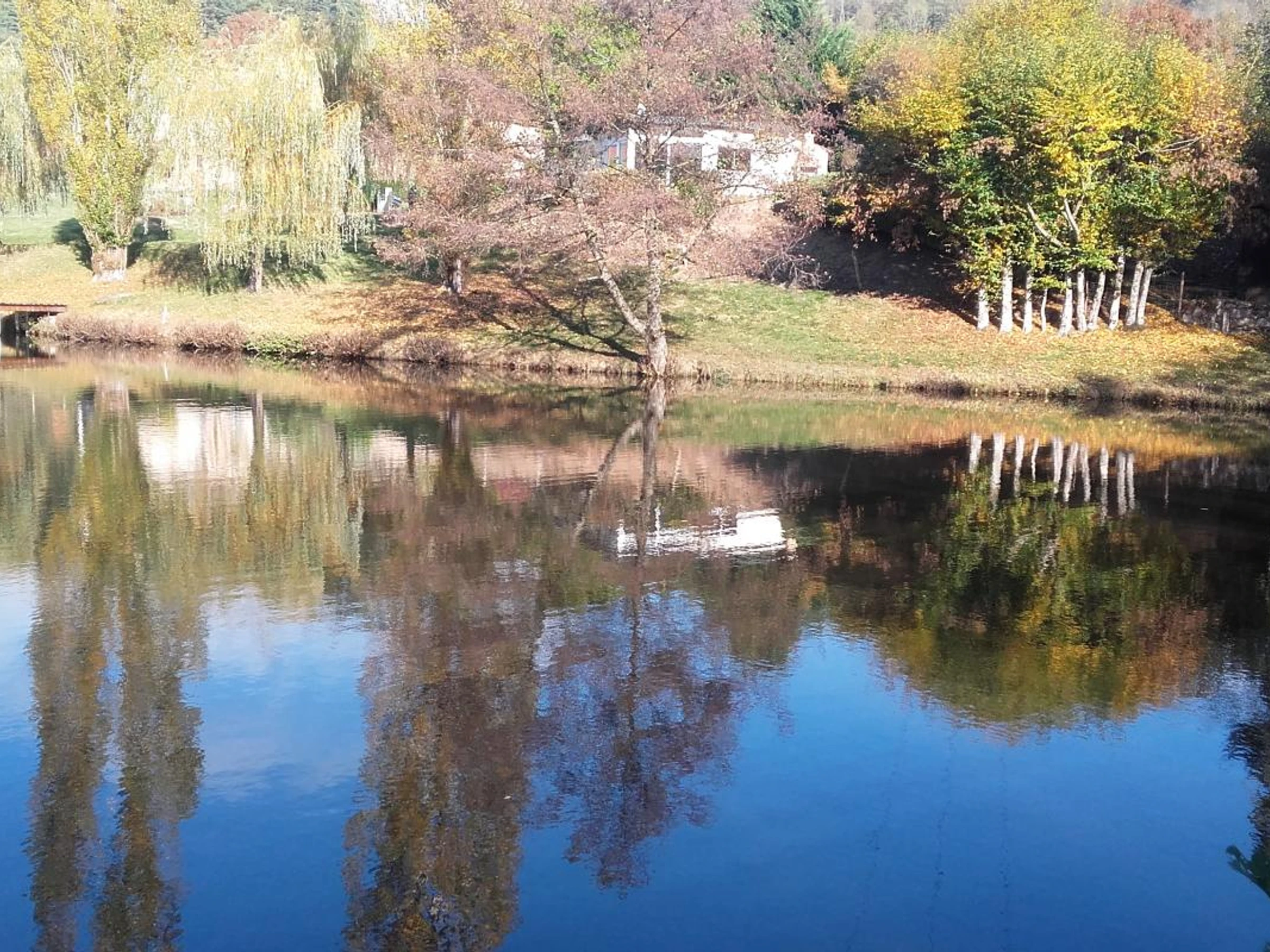 Surplombant le petit plan d'eau privé, gite indépendant avec grand espace vert clos (1ha). Rez-de-chaussée : Pièce à vivre avec salon, cheminée à insert, grandes baies vitrées donnant sur une terrasse avec vue sur l'étang, cuisine à l'américaine, 2 chambres (2 lits 2 pers.), salle d'eau (douche, wc séparé). Chauffage électrique. Pêche sur place. Le Pal parc d'attraction à 33 km. Vulcania à 107 km.