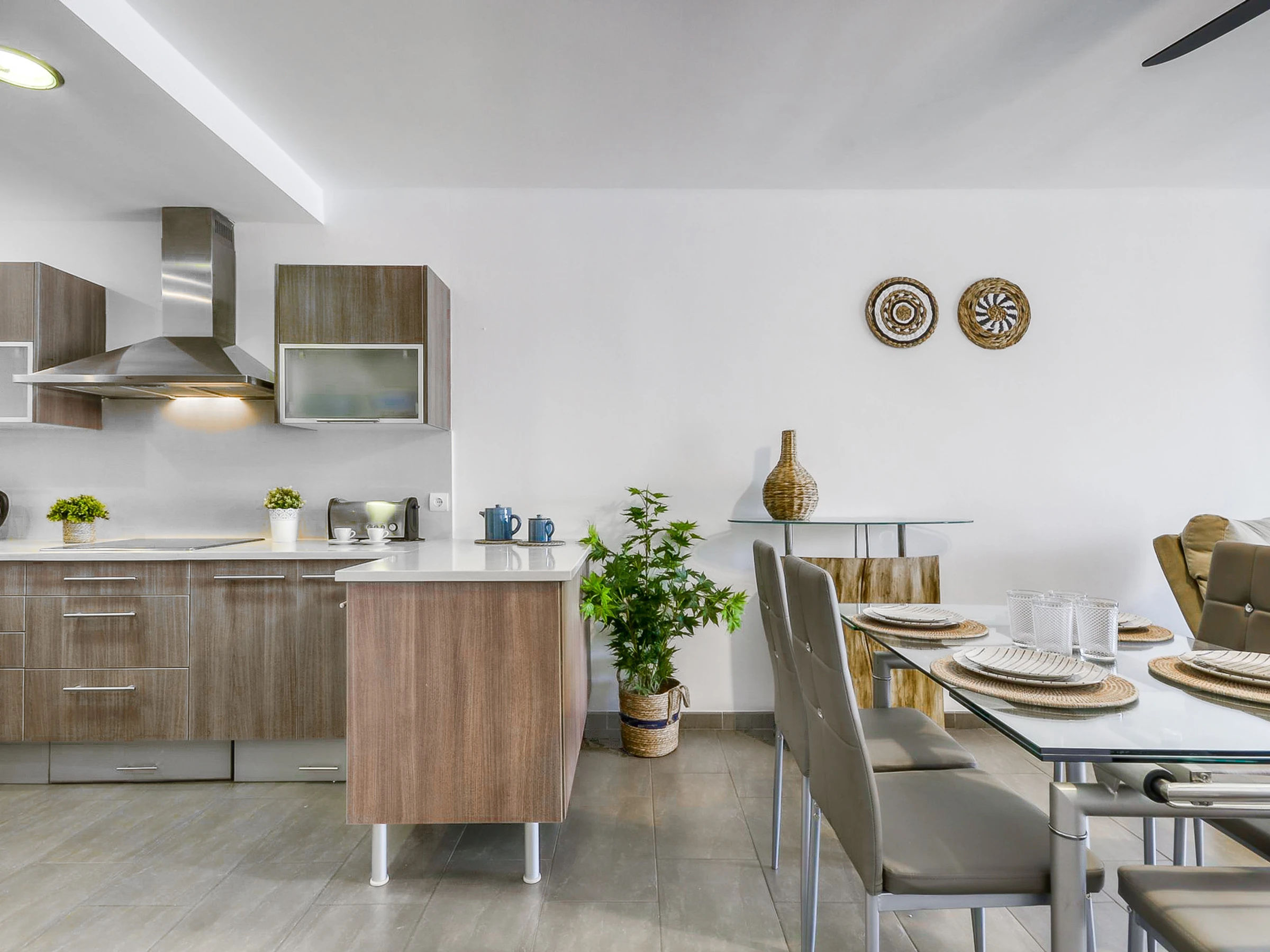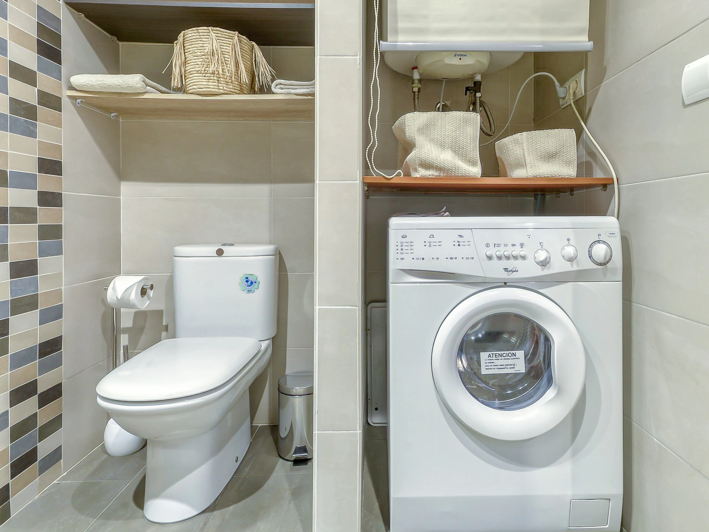 L'appartement dispose d'une cuisine américaine entièrement équipée avec des appareils électroménagers de dernière génération, tels que réfrigérateur, congélateur, lave-vaisselle, micro-ondes et cafetière. Il dispose également d'une machine à laver et d'un fer à repasser pour que vous puissiez garder vos vêtements propres pendant votre séjour.