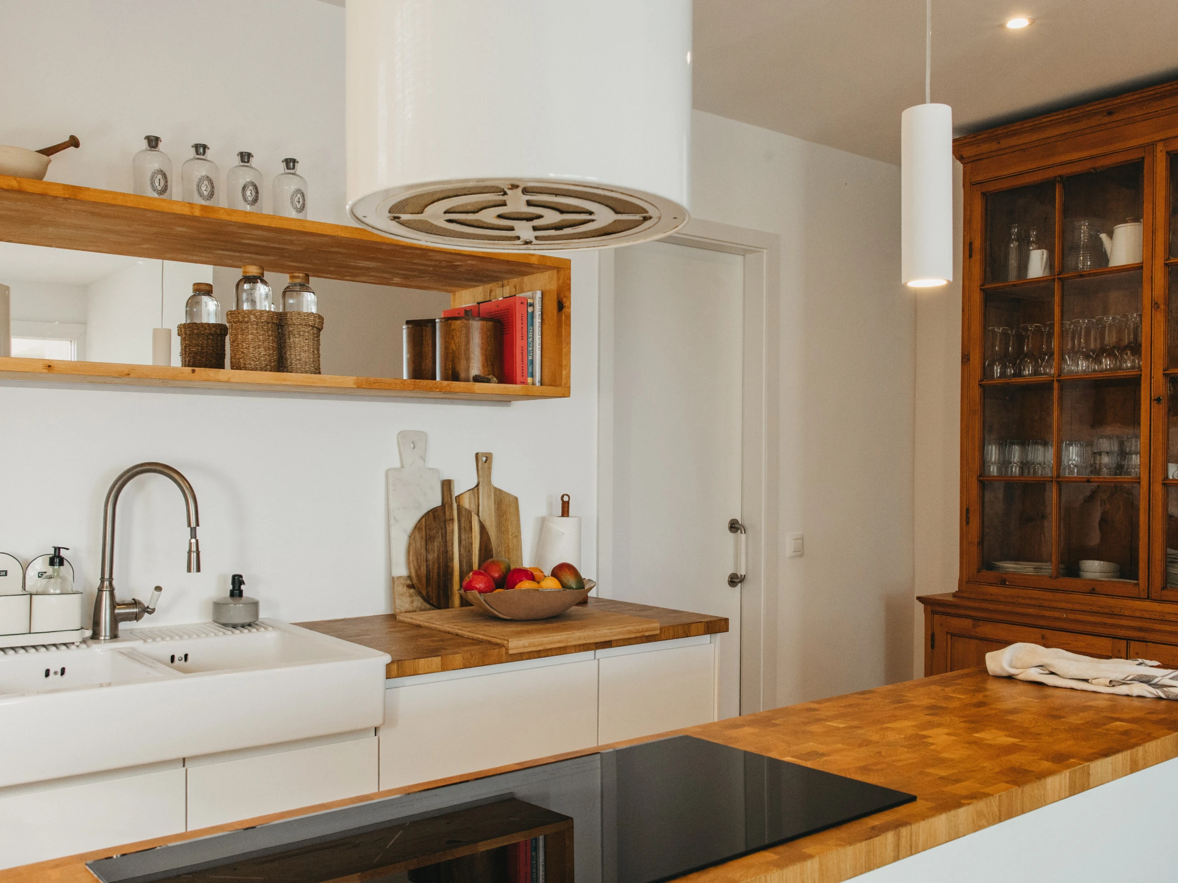 La cuisine américaine, à induction, est équipée avec réfrigérateur, micro-ondes, four, congélateur, lave-vaisselle, vaisselle/couverts, ustensiles/cuisine, cafetière, grille pain, bouilloire et presse-agrumes.