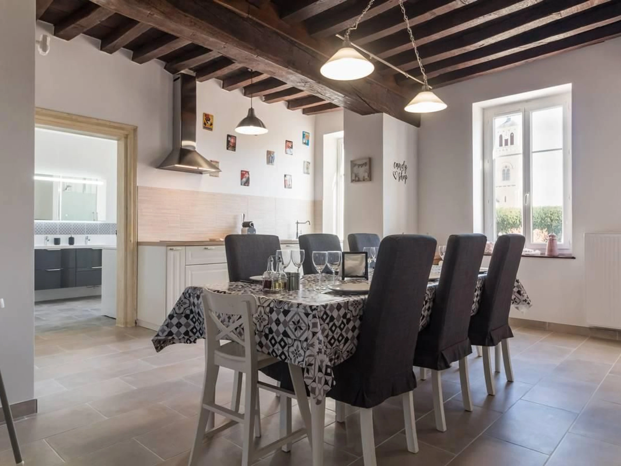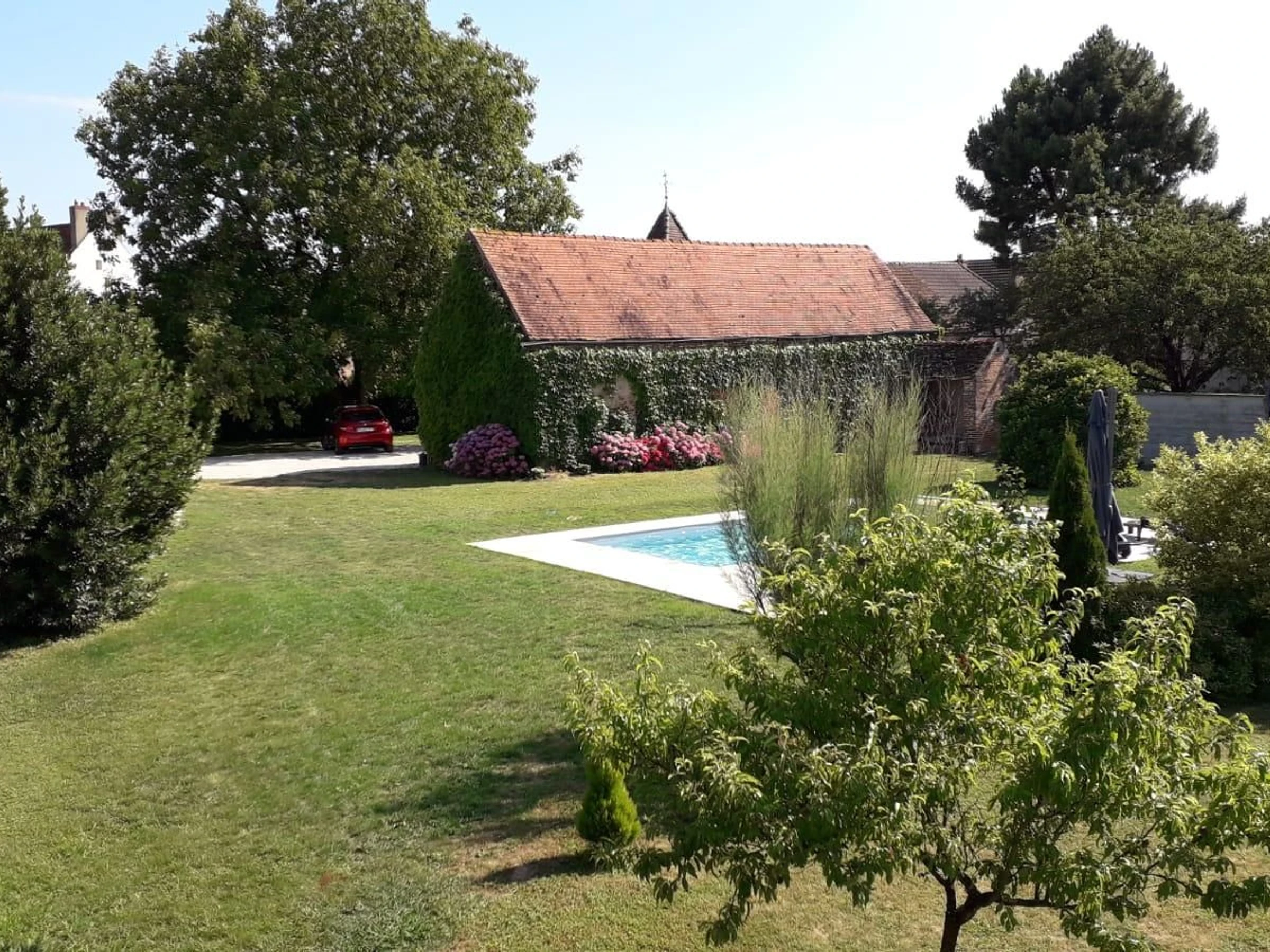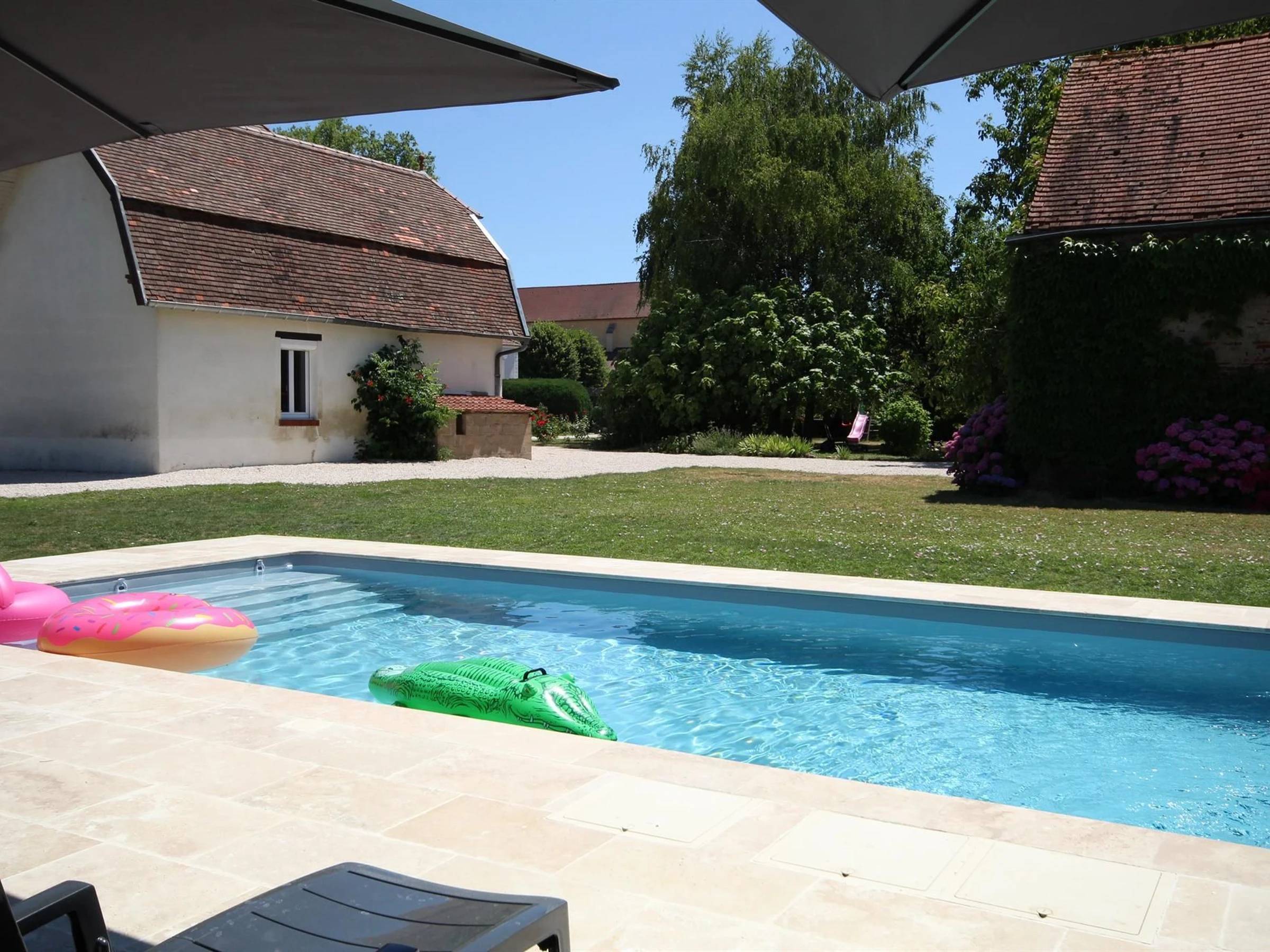 Idéalement située entre Dijon, Dole et Beaune, belle maison de 1750 de plain pied entièrement rénovée tout en conservant le charme de l'ancien : plafonds à la Française, cheminées en marbre, parquets, boiseries et huisseries d'époque. Salle à manger avec cuisine intégrée et cheminée insert, grand salon, 2 vastes chambres de 21 m² avec chacune 1 lit 160 et possibilité d'ajouter un lit d'appoint (en supplément), salle de bains complète avec baignoire, douche et WC. Le gîte est mitoyen à la maison des propriétaires, sur un beau terrain clos de 3800 m², avec cour et jardin communs. Abri vélos. Piscine commune et chauffée de Juin à Septembre, de 4x9m sécurisée par un portillon fermé à clé et un volet.