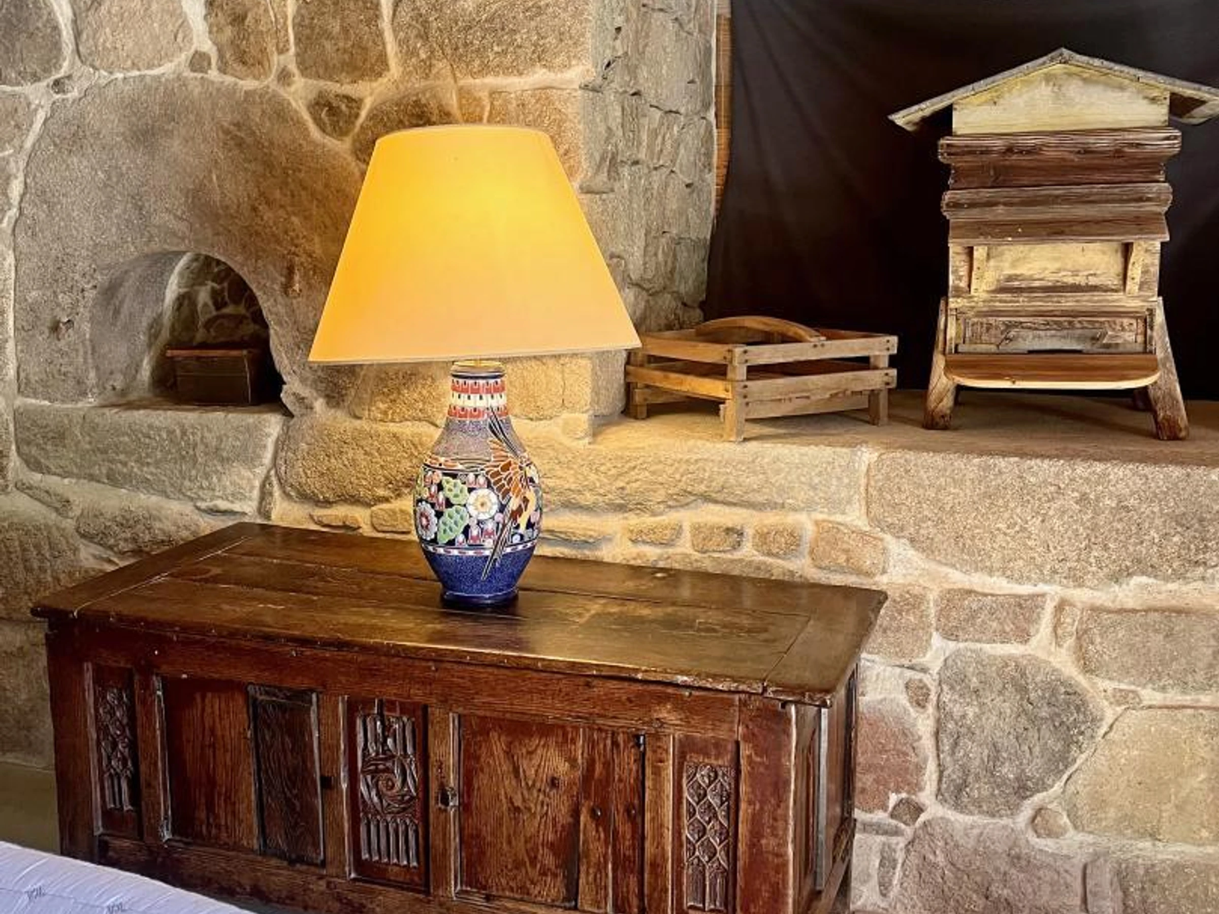 Je récupère ou chine les objets d'antan et les outils anciens agricoles ou d'artisans. Depuis plus de 40 ans je restaure une ancienne ferme des Monts du Lyonnais, qui abrite le gite, pour lui redonner son lustre d'autrefois en utilisant des matériaux nobles et anciens : le chêne, la pierre, la chaux, les tomettes, ... La pierre du pays en granit est omniprésente. Je la taille , je la boucharde, je monte des murs en pierres (sèches), où l'on voit pratiquement pas le ciment, j'ai refait un porche, des cheminées, des jambages en pierre, etc. Je suis toujours ravi de répondre aux questions des locataires qui s'intéressent au passé et intarissable pour ceux qui recherchent un gite avec une vrai histoire et une âme.
