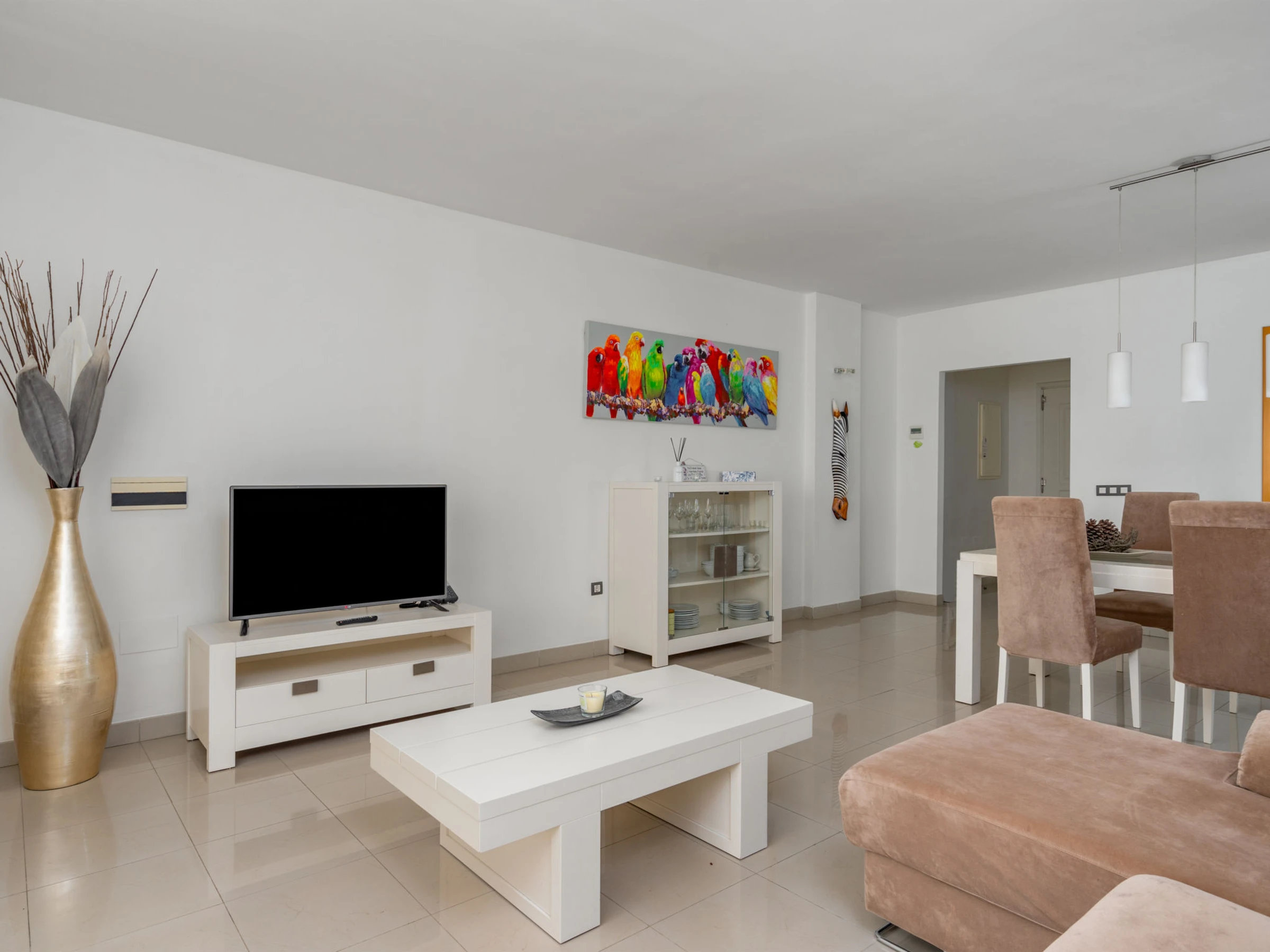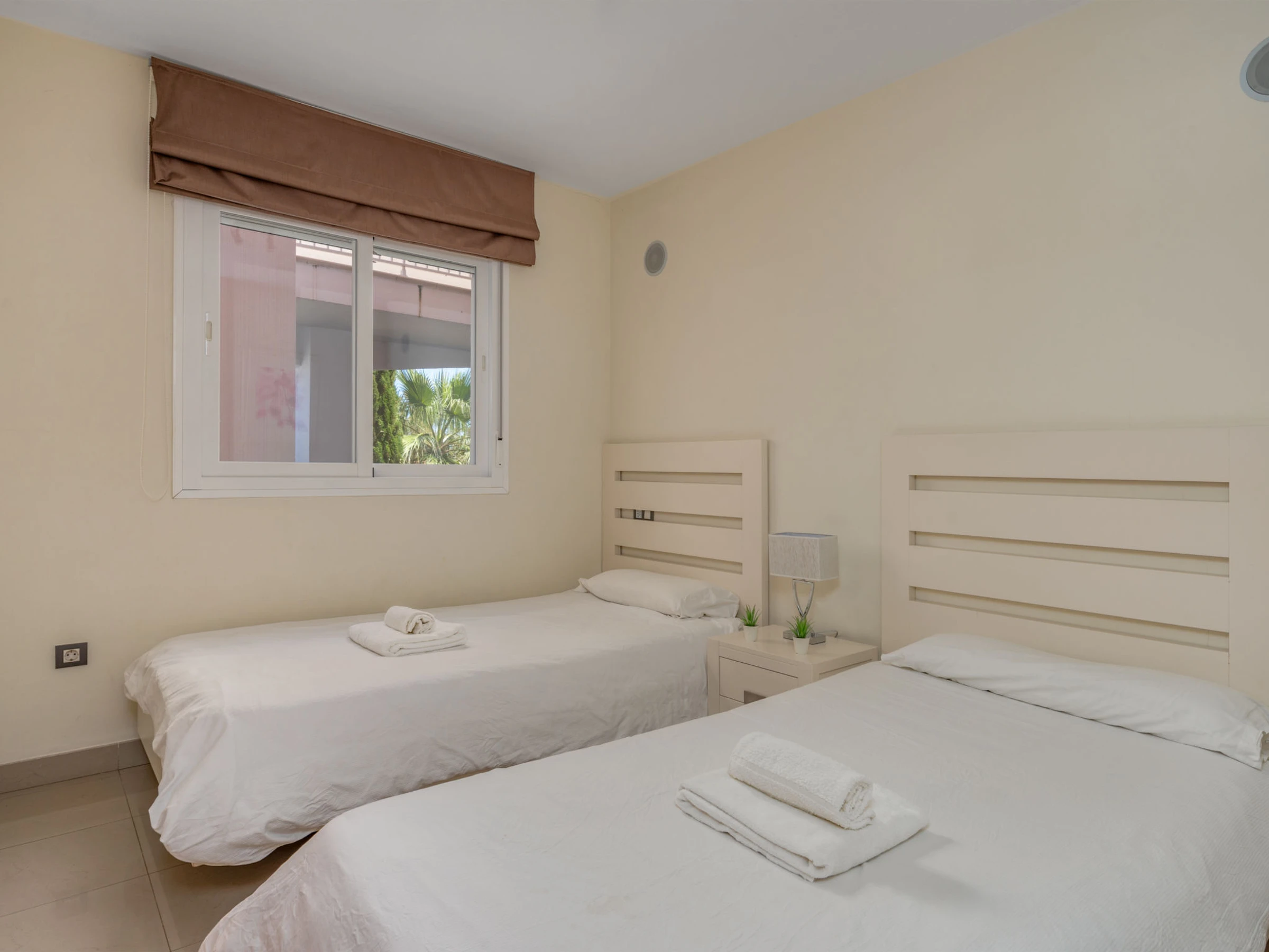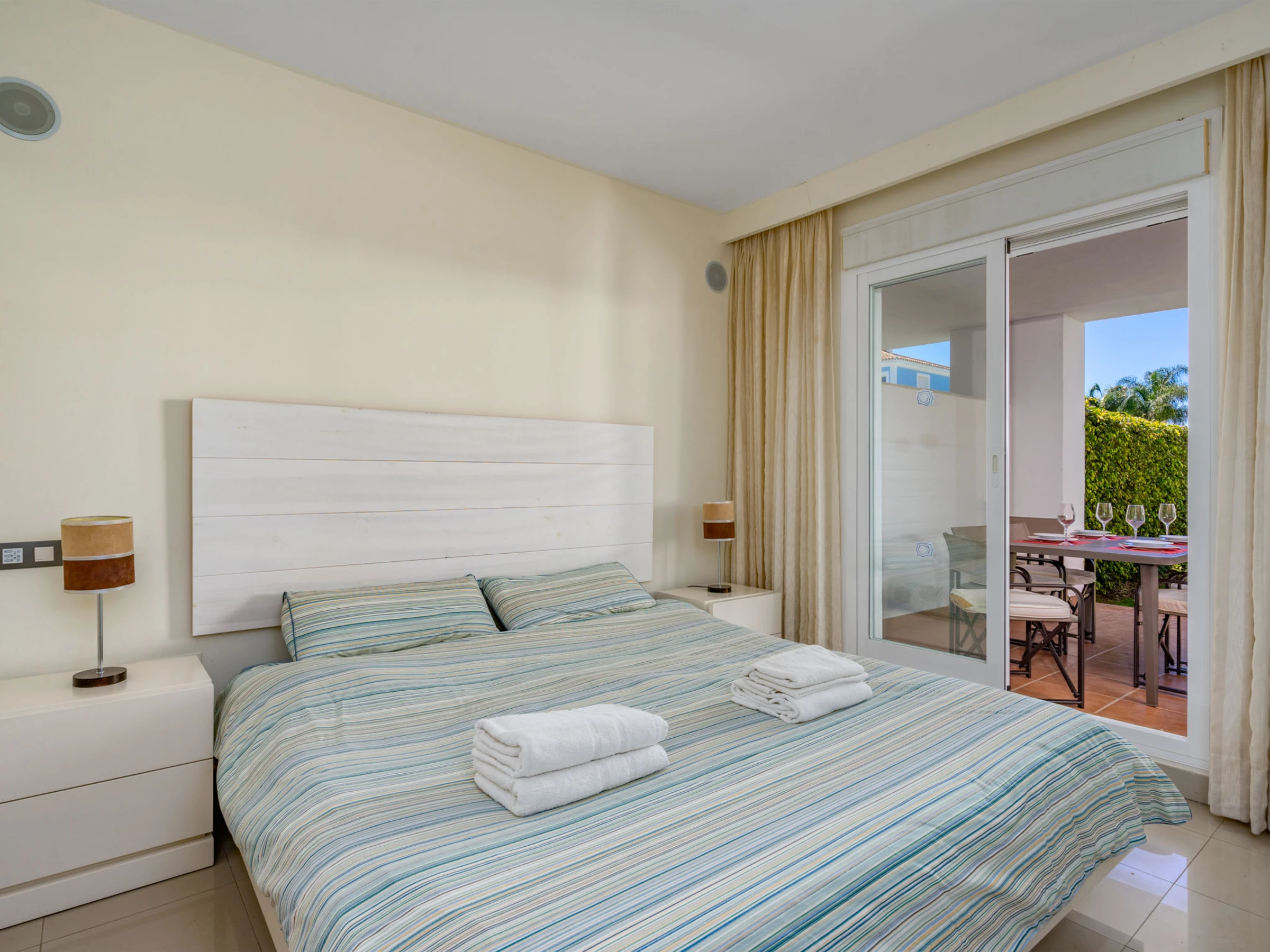 "Cortijo del Mar Gardens", apt 3 pièces 92 m2, sous-sol de plain-pied. Logement idéal pour 4 adultes. Spacieux et clair, aménagement confortable et moderne: séjour/salle à manger avec Télévision numérique, air-conditionné et chauffage à air chaud. Sortie sur la terrasse. 1 chambre avec 1 grand-lit (180 cm, longueur 200 cm), bain/WC, double vasque et bain à remous (privé) air-conditionné et chauffage à air chaud. Sortie sur la terrasse. 1 chambre avec 2 lits (100 cm, longueur 200 cm), air-conditionné et chauffage à air chaud. Cuisine (four, lave-vaisselle, 4 plaques vitrocéramiques, grille-pain, bouilloire électrique, micro-ondes, congélateur, cafetière électrique). Douche/WC. Jardinet 34 m2, jardin 28 m2. Meubles de terrasse, chaises longues (2). A disposition: lave-linge, fer à repasser, chaise haute pour enfant, lit bébé, sèche-cheveux. Internet (Connexion WIFI, gratuit). Veuillez noter: logement non-fumeur. [hidden] // Reg. Nr.: ESFCTU0000290370004871610000000000000000[hidden]