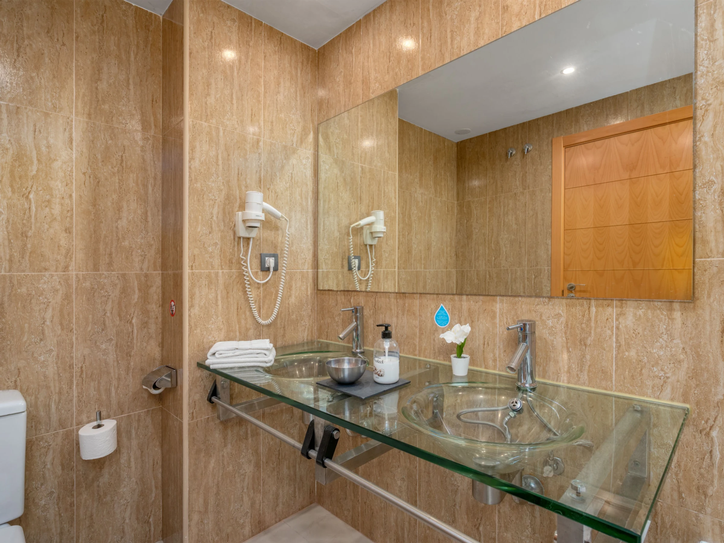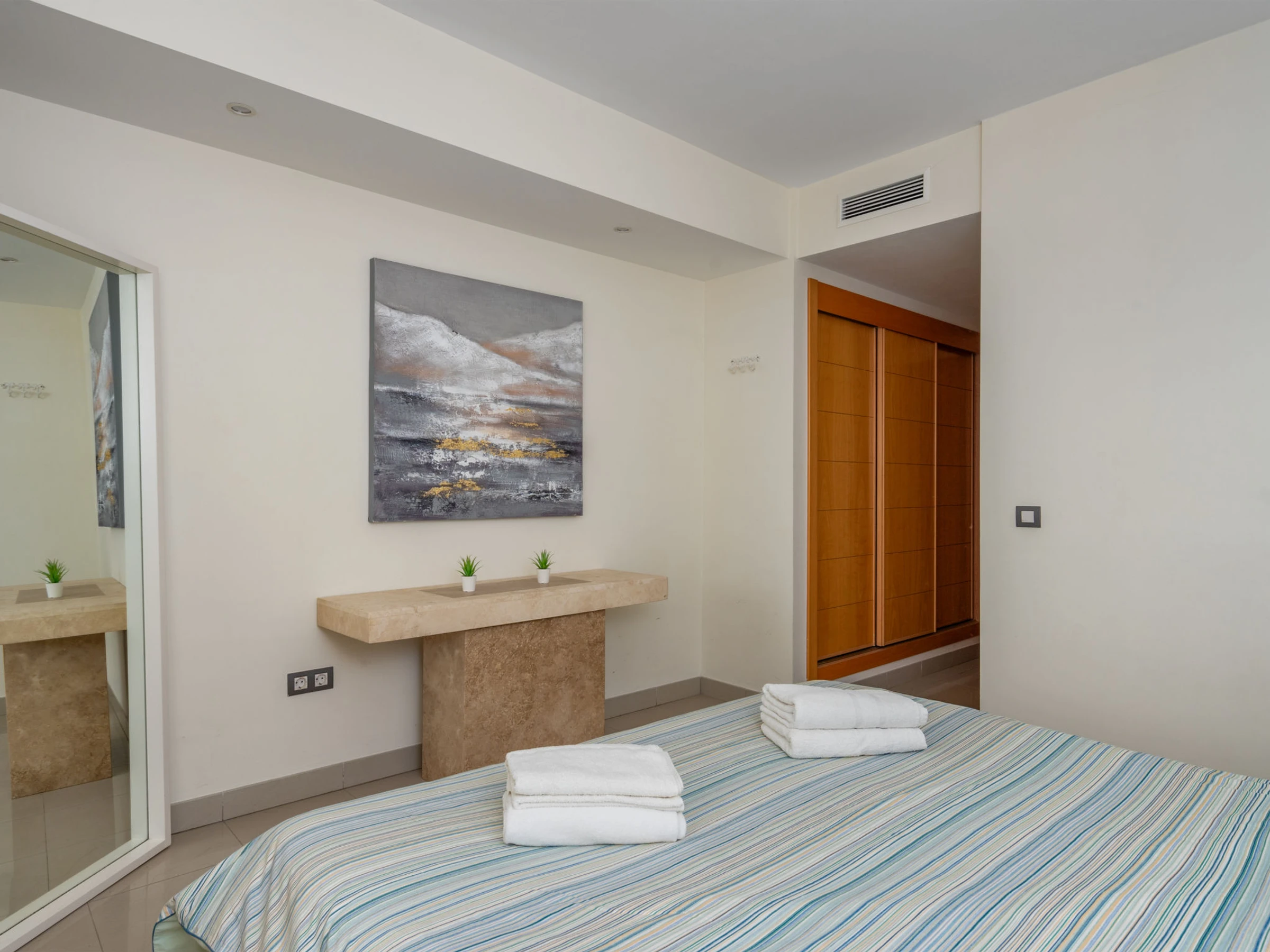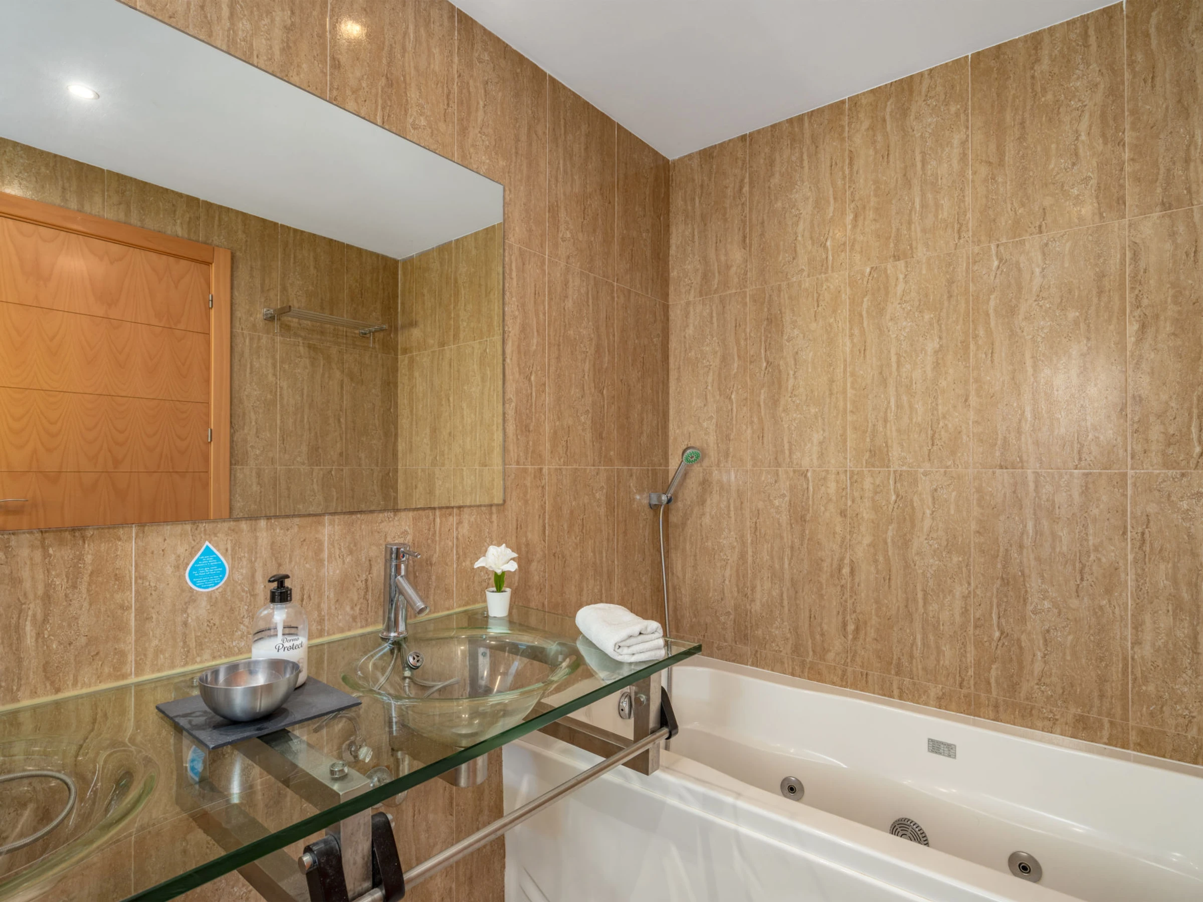 "Cortijo del Mar Gardens", apt 3 pièces 92 m2, sous-sol de plain-pied. Logement idéal pour 4 adultes. Spacieux et clair, aménagement confortable et moderne: séjour/salle à manger avec Télévision numérique, air-conditionné et chauffage à air chaud. Sortie sur la terrasse. 1 chambre avec 1 grand-lit (180 cm, longueur 200 cm), bain/WC, double vasque et bain à remous (privé) air-conditionné et chauffage à air chaud. Sortie sur la terrasse. 1 chambre avec 2 lits (100 cm, longueur 200 cm), air-conditionné et chauffage à air chaud. Cuisine (four, lave-vaisselle, 4 plaques vitrocéramiques, grille-pain, bouilloire électrique, micro-ondes, congélateur, cafetière électrique). Douche/WC. Jardinet 34 m2, jardin 28 m2. Meubles de terrasse, chaises longues (2). A disposition: lave-linge, fer à repasser, chaise haute pour enfant, lit bébé, sèche-cheveux. Internet (Connexion WIFI, gratuit). Veuillez noter: logement non-fumeur. [hidden] // Reg. Nr.: ESFCTU0000290370004871610000000000000000[hidden]