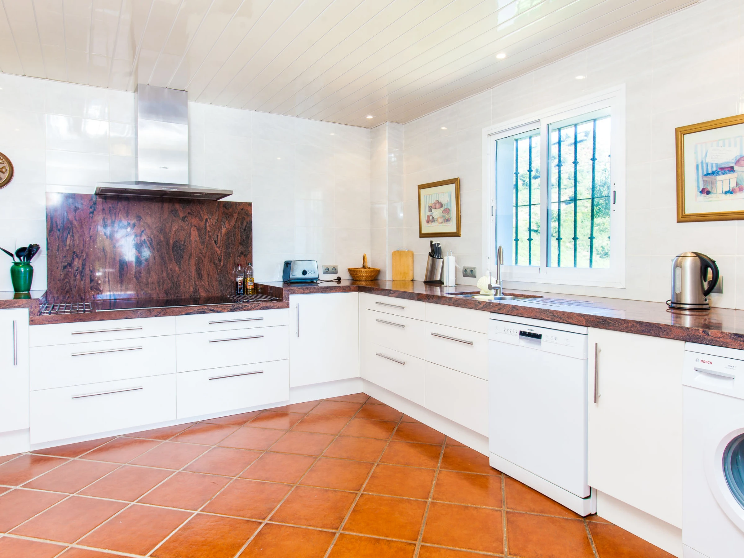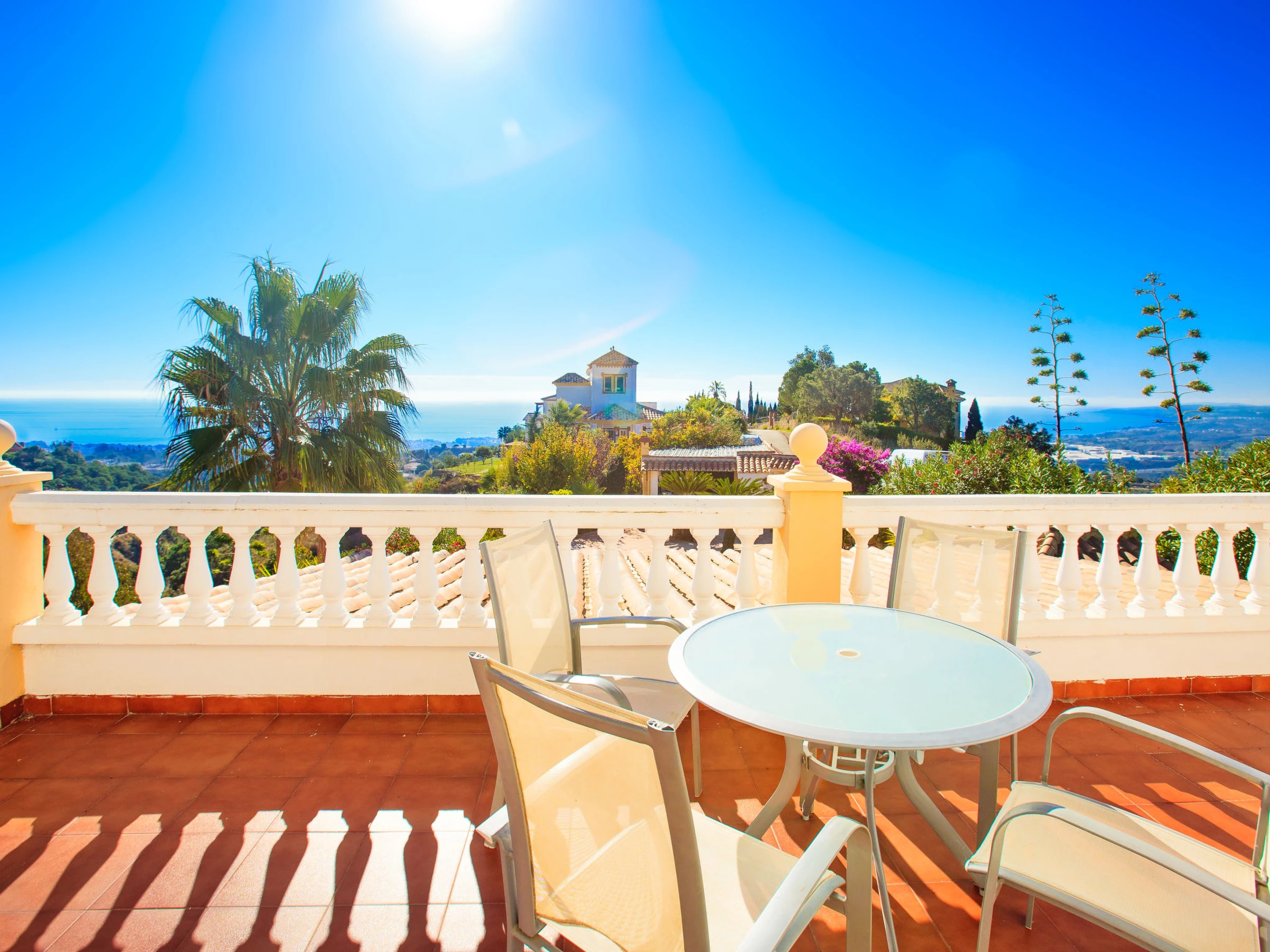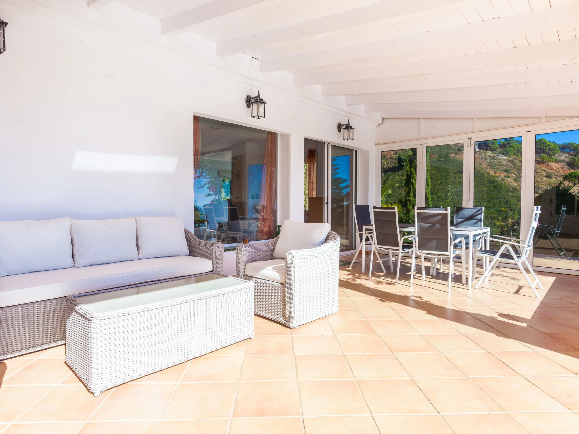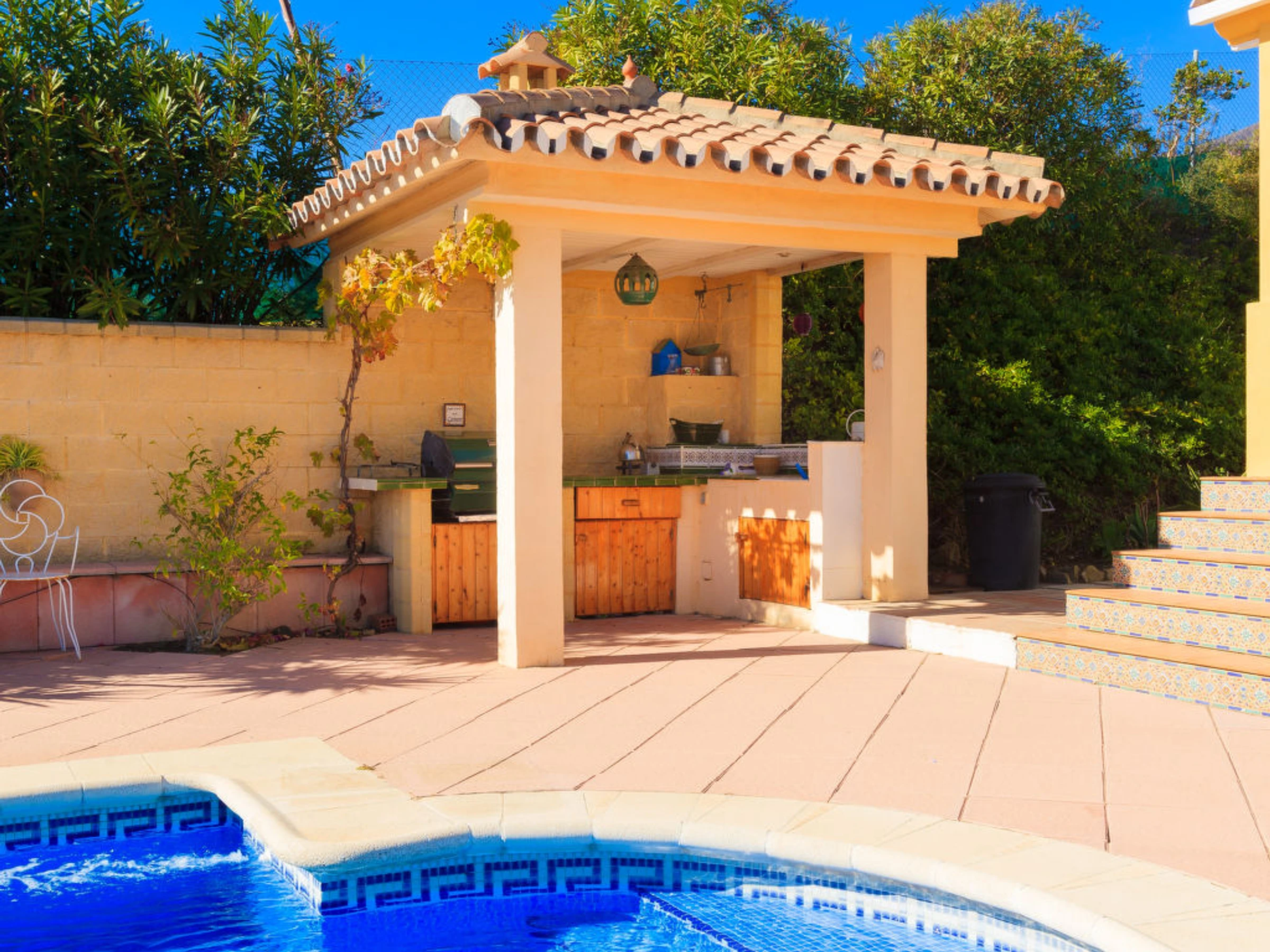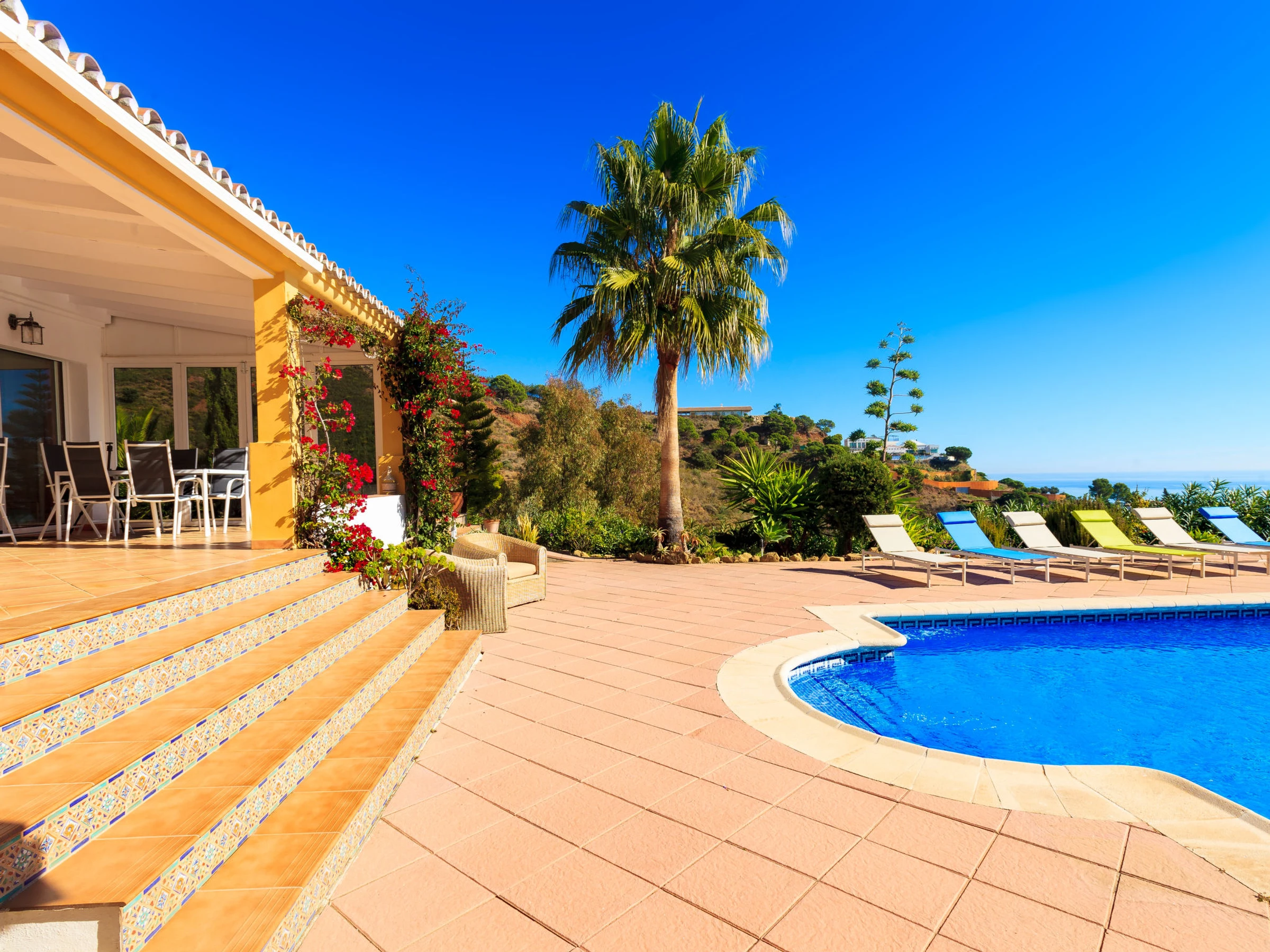 Los Reales: Belle maison individuelle "Esmerdo", de 3 étages, année de construction 1998, rénovée en 2016, environnée par les champs. En-dehors de la localité, à 3.5 km du centre d'Estepona, situation ensoleillée, à 3.5 km de la mer, à 3.5 km de la plage, dans la verdure, orientée sud. A usage privé: piscine rectangulaire (10 x 5 m, profondeur 100 - 200 cm, disponibilité saisonnière: [hidden] - [hidden] avec marches intérieures et systeme d'électolyseur au sel. Tonnelle, espace barbecue, garage individuel. Magasins 2.5 km, supermarché 2.5 km, restaurant 2 km, plage de sable 3.5 km. Veuillez noter: voiture recommandée. Le propriétaire n'accepte pas les groupes. Le propriétaire n'accepte pas les groupes de jeunes.