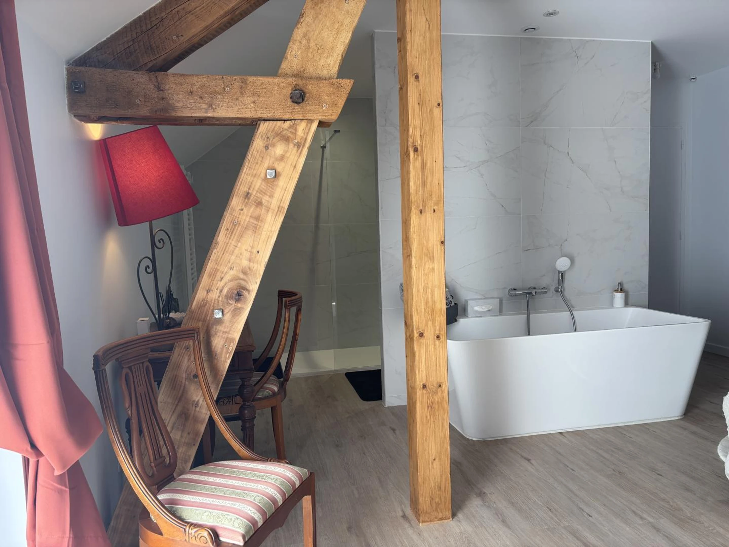 1er étage : 2 chambres pour 2 personnes avec salle d'eau privative (douche/WC), 1 chambre pour 2 personnes avec salle de bain ( baignoire îlot, douche et WC indépendant). Climatisation dans toutes les chambres de l'étage.