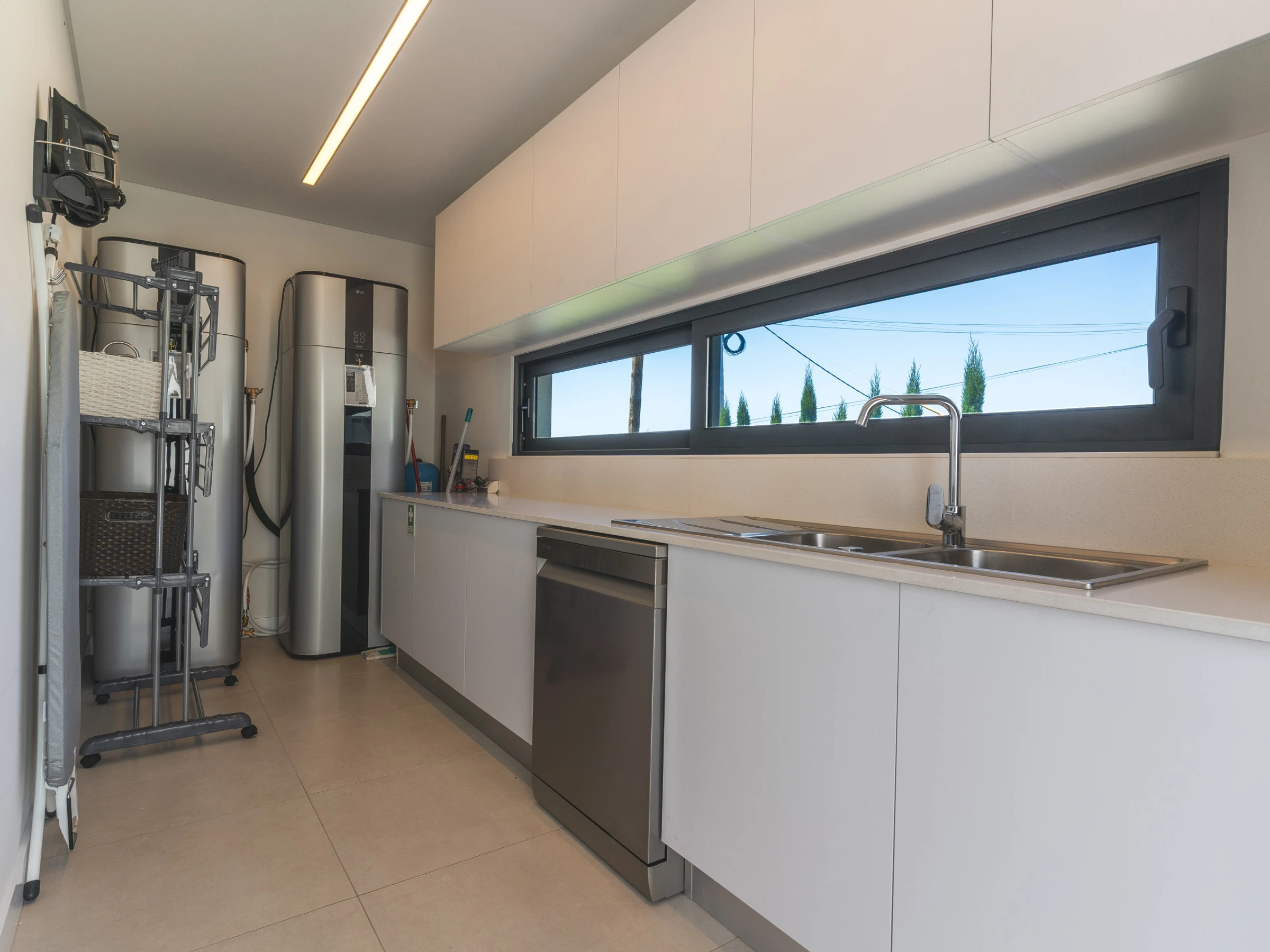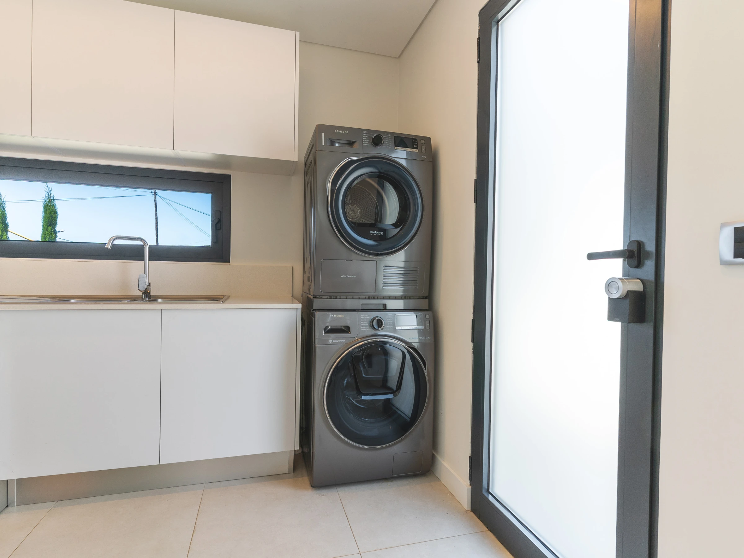 La cuisine entièrement équipée comprend tous les essentiels pour la cuisine. La maison est également équipée d'un sèche-linge et d'une machine à laver, et un sèche-cheveux est disponible.