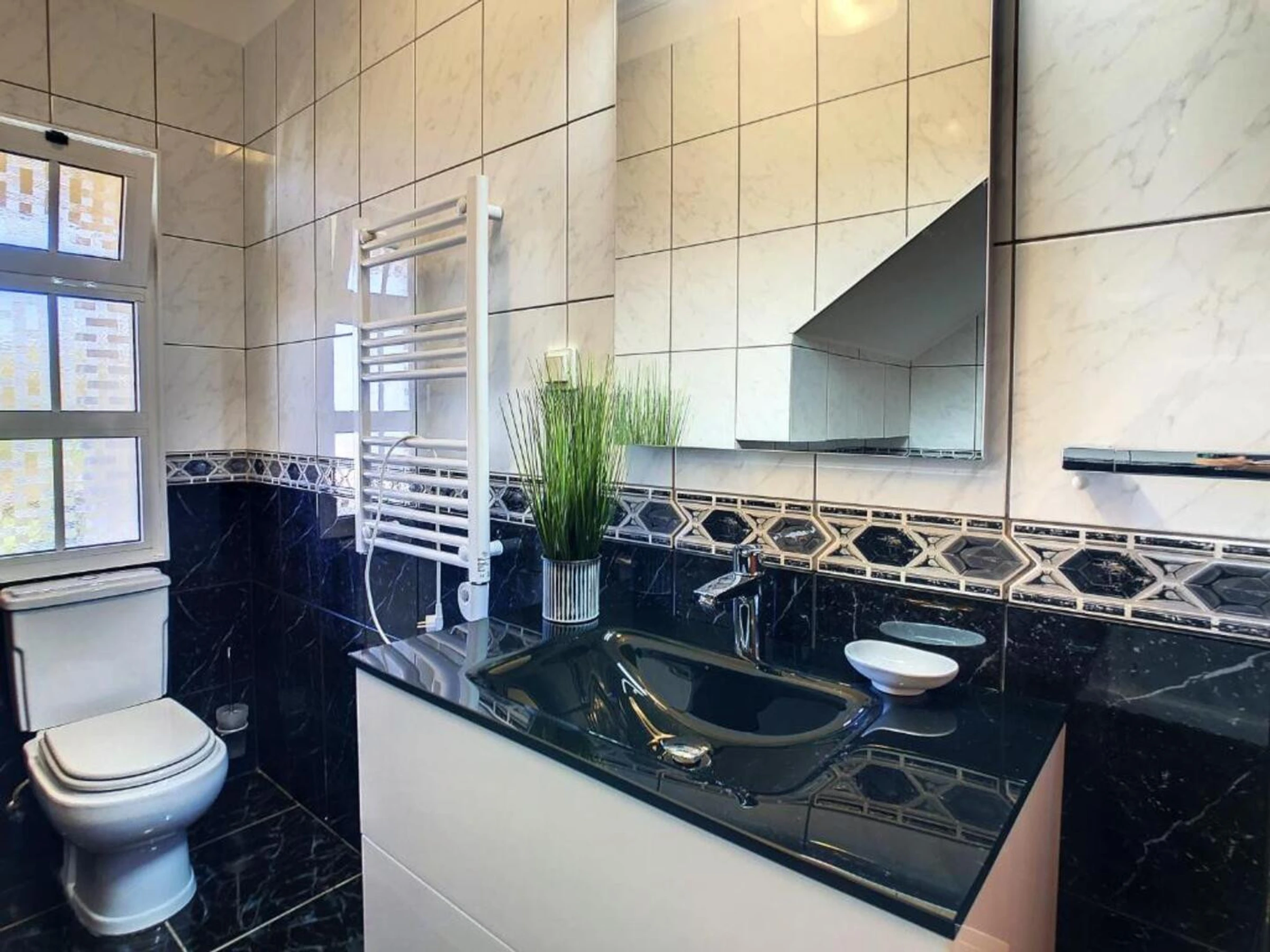 La cuisine est équipée d'essentiels tels que réfrigérateur, congélateur, four, micro-ondes, plaque de cuisson, couverts, assiettes et ustensiles pour la cuisine quotidienne. Une salle de jeux avec une table de baby-foot et une petite table de ping-pong ajoute du divertissement supplémentaire pendant votre séjour.