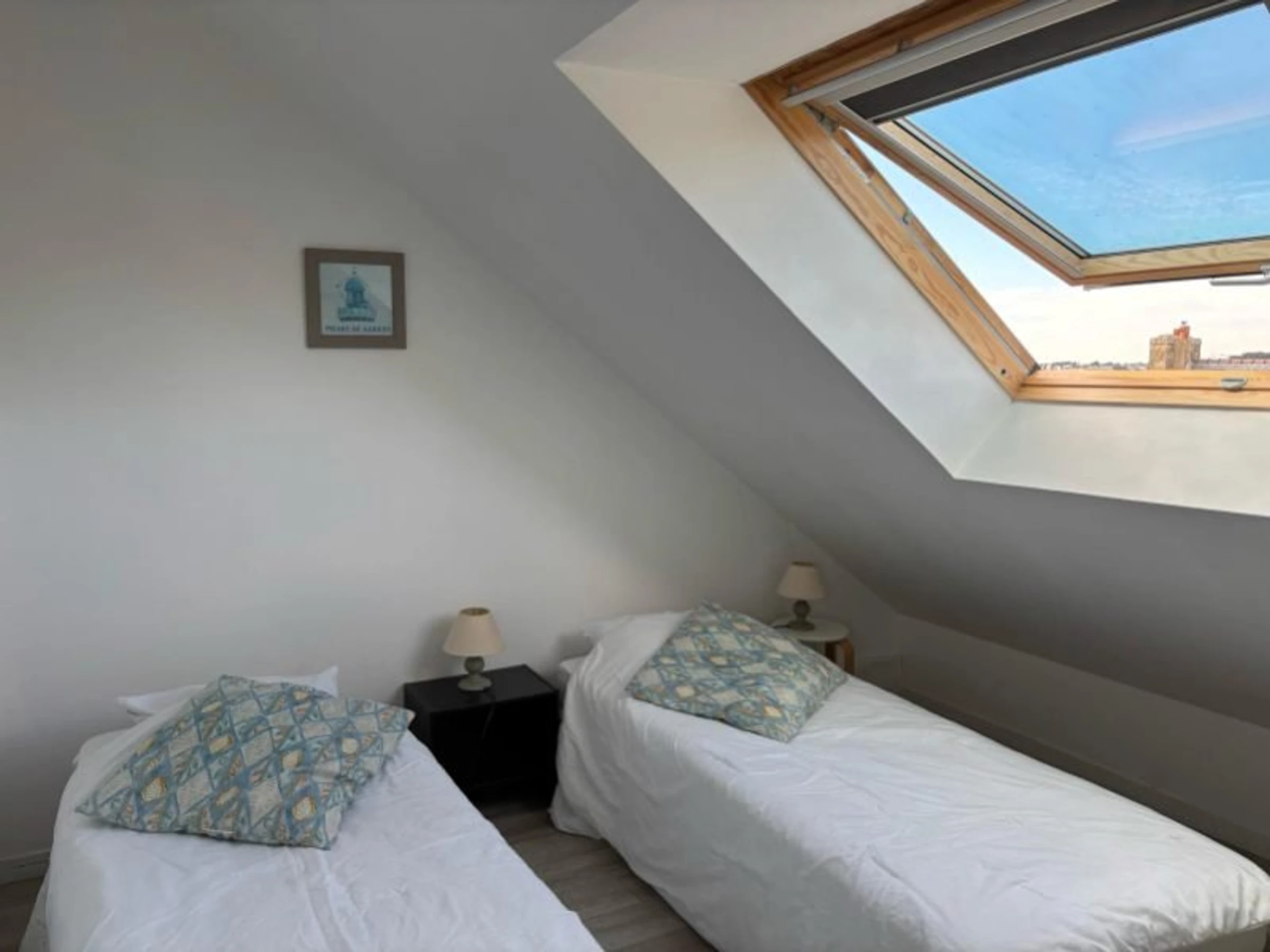 Deux chambres : l’une avec un lit de 140, l’autre avec deux lits de 90.