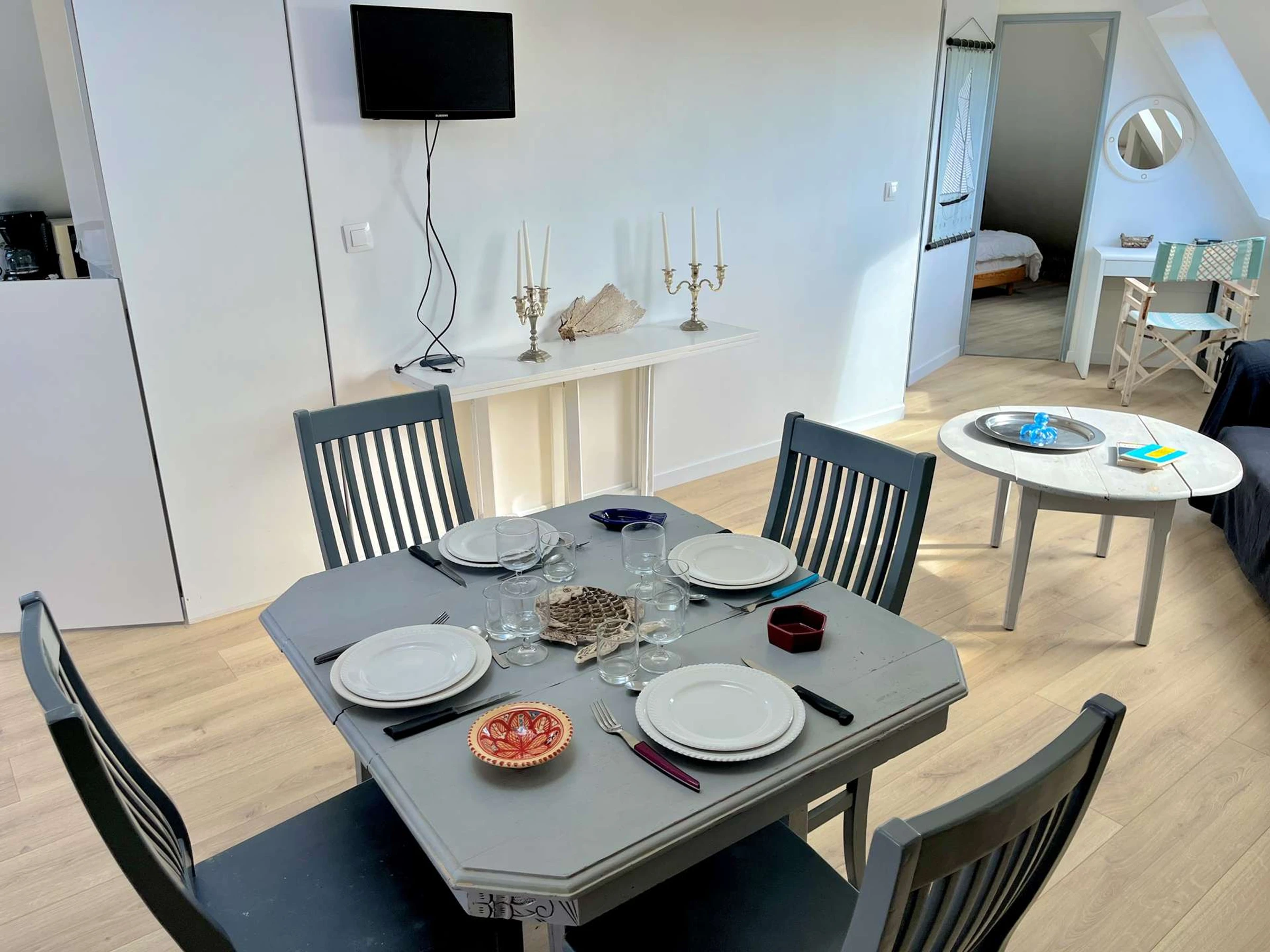 Cet appartement bénéficie d'une vue sur la barre d'Etel. A quelques pas du port de plaisance, des commerces, des restaurants, des bars et à proximité immédiate de la plage ainsi que du bassin d'eau de mer, idéal pour les enfants.