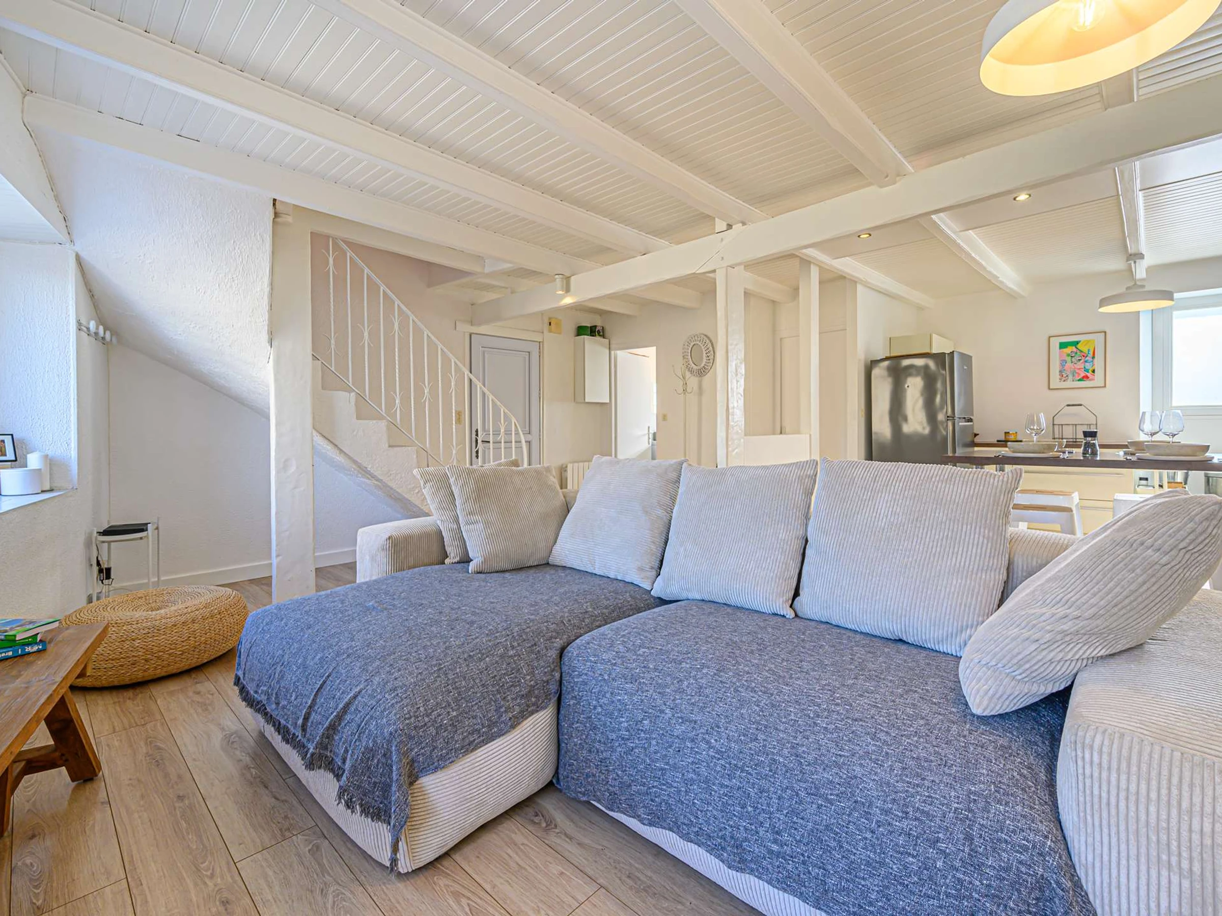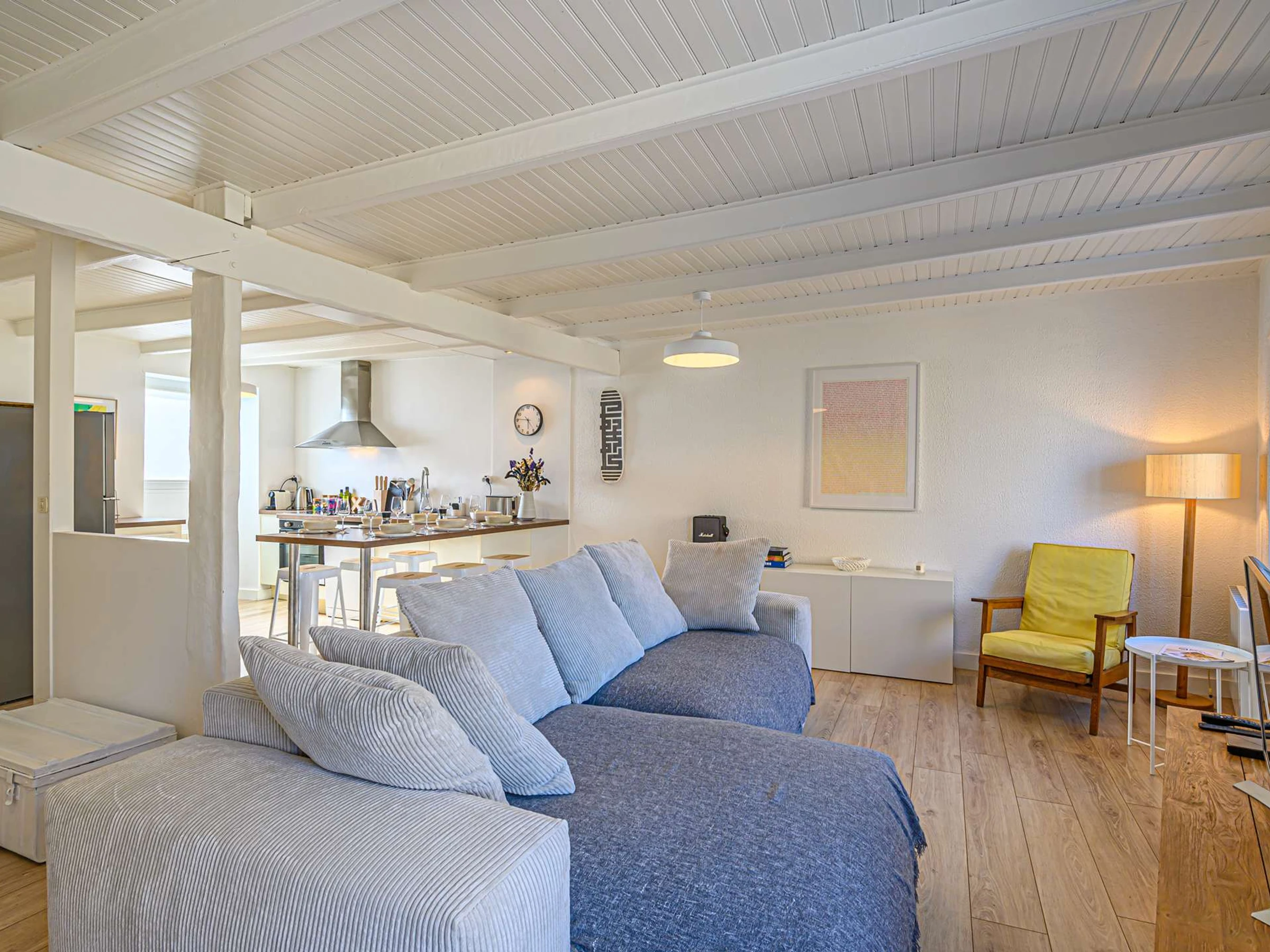 Pièce de vie comprenant un canapé de plus de 3 mètres ultra confortable, accès internet Wifi, télévision connectée de 43 pouces avec accès Netflix, console de jeu vintage Nintendo, ampli Marshall Bluetooth, livres, magazines et jeux de société pour des après-midi de détente et des soirées cinéma.