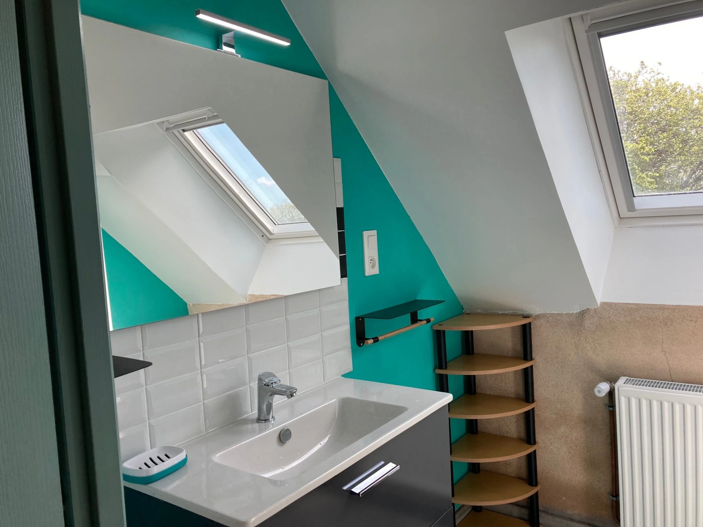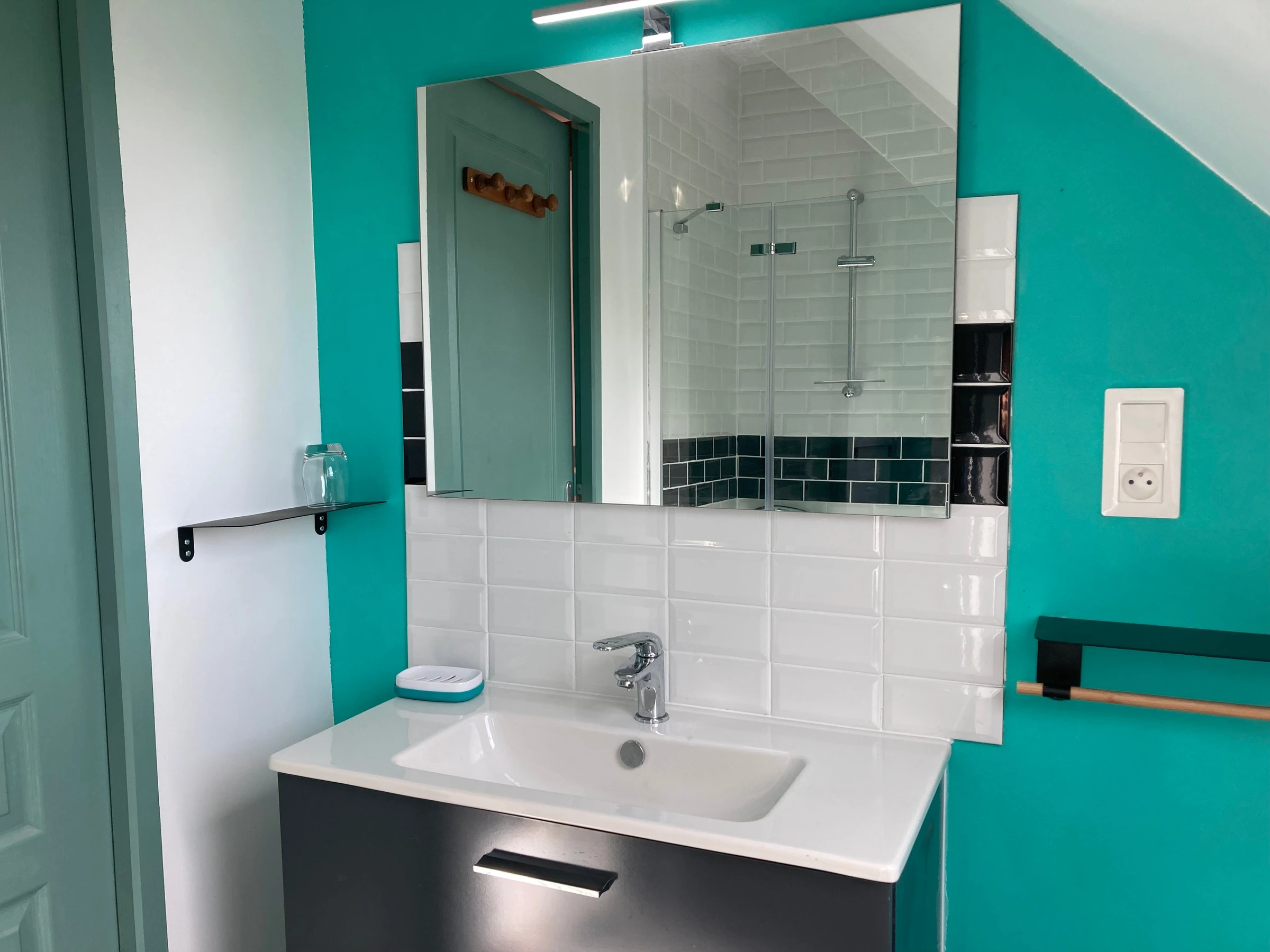 A l'étage, 2 chambres avec chacune leur salle d'eau privative et leur wc et un palier idéal pour passer des soirées télévision, avec un coin lecture et un coin jeux..