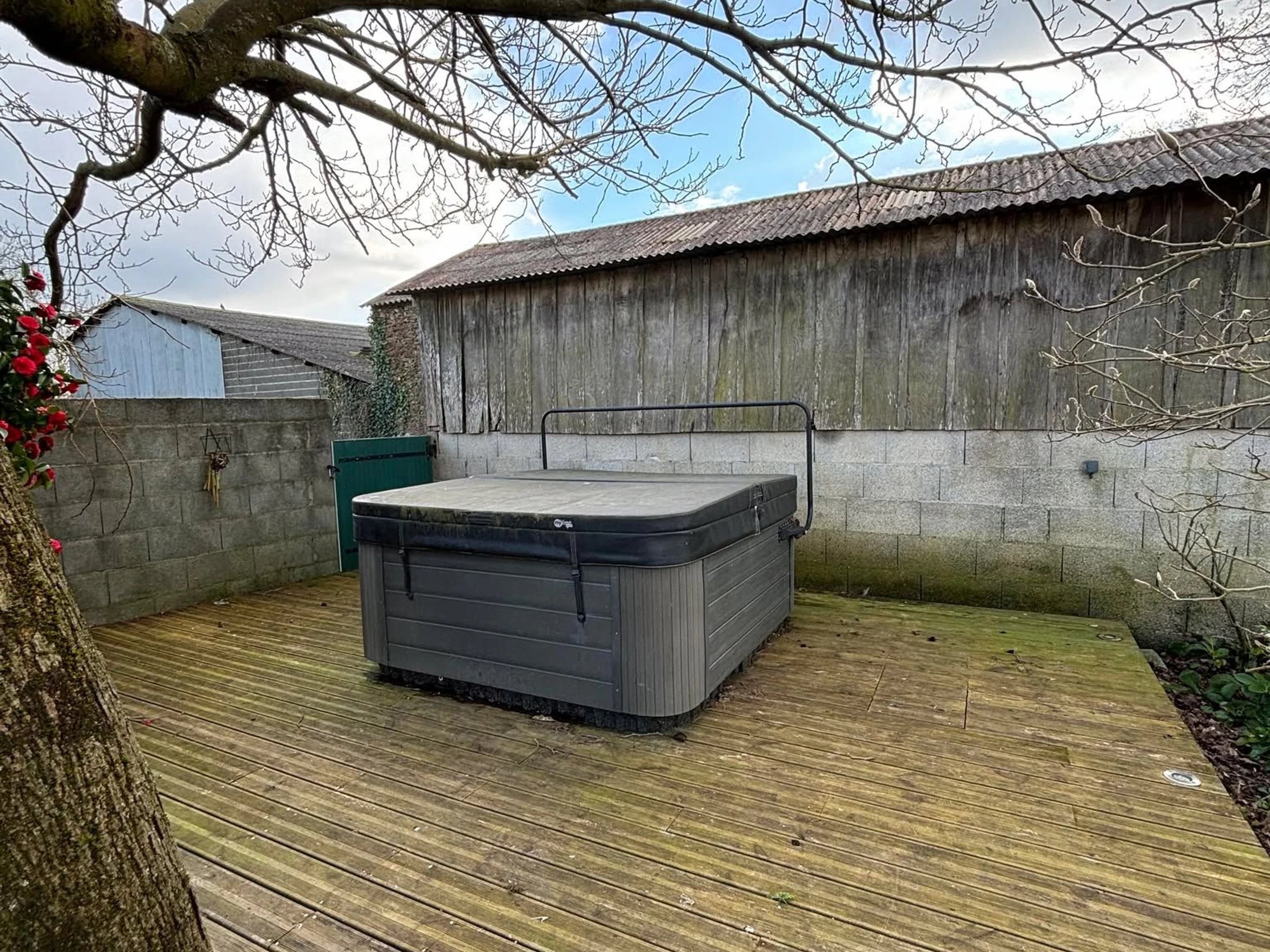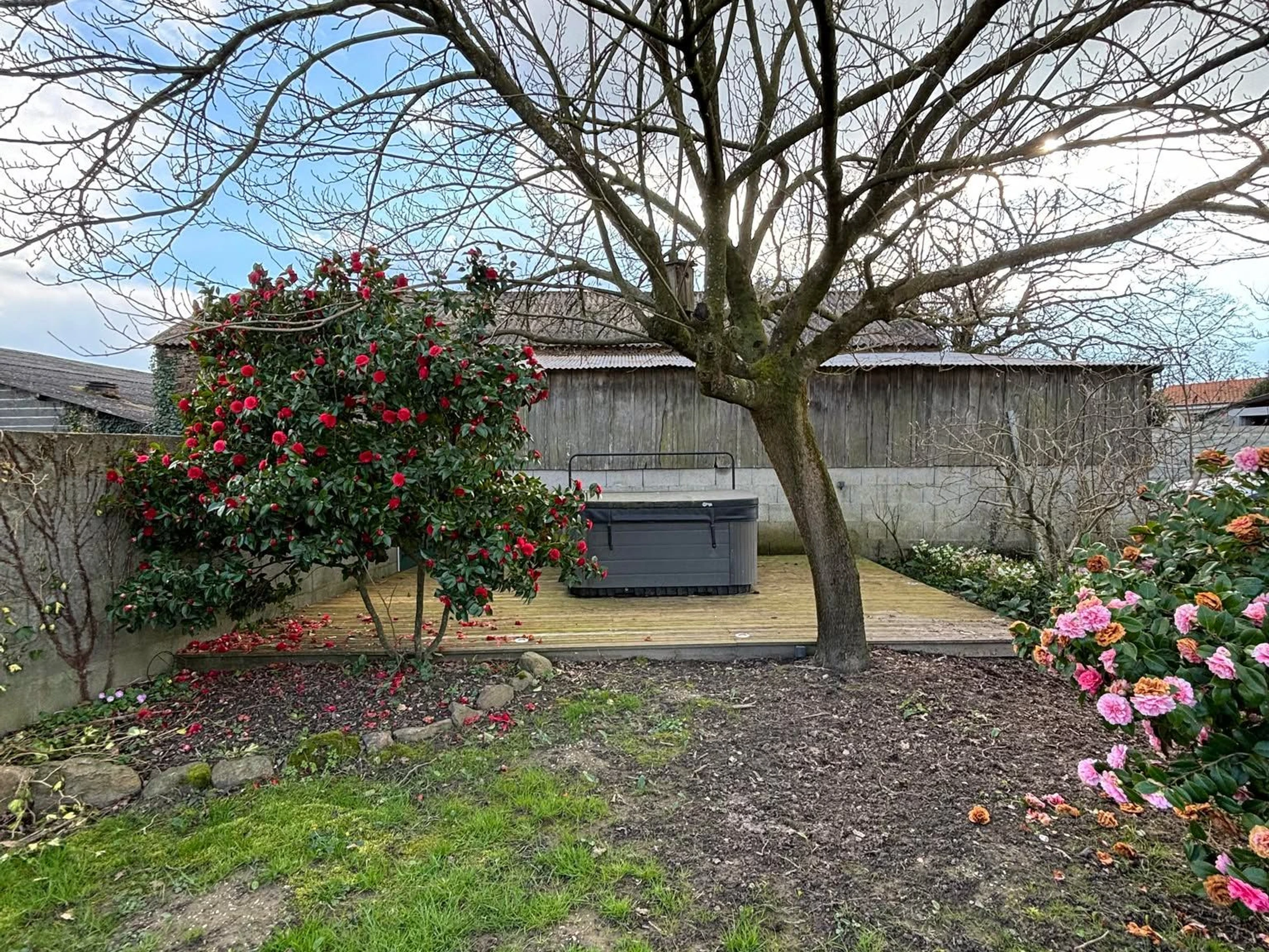La maison dispose d'un jardin de 500m² avec terrasse, mobilier de jardin et barbecue.