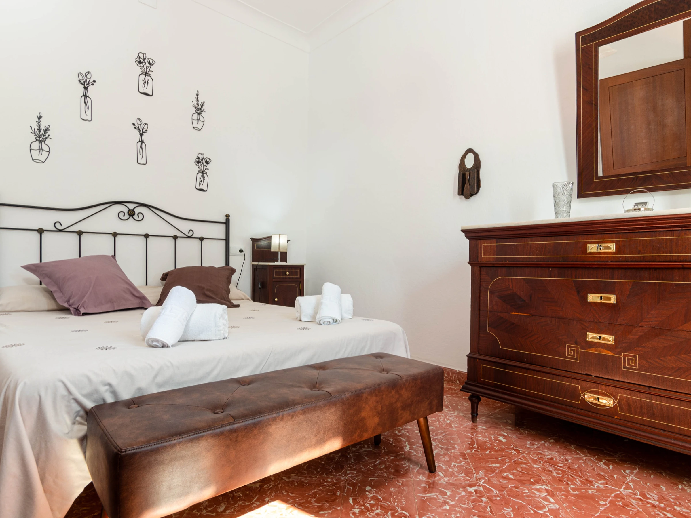 Villa à Felanitx qui possède 3 chambre(s) et Capacité pour 6 personnes. Logement de 100 m² confortable et totalement équipé, avec vue sur la piscine. La location se trouve à 0 m de la gare, 11 km du domaine de Golf "Vall D'Or Golf", 13 km de la ville "Portocolom", 13 km du super-marché "Eroski", 13 km de la plage de sable "Cala Marçal", 15 km du restaurant "Restaurant Vora Mar Portocolom", 46 km de l'aéroport "Son Sant Joan" et il est situé dans une zone idéale pour familles zone et rural.Elle dispose de jardin, mobilier de jardin, clôture, 200 m² de terrasse, lave-linge, barbecue, fer à repasser, accès internet (wifi), sèche-cheveux, chauffage pompe à chaleur, climatisations dans certaines chambres, piscine privée, parking extérieur même bâtiment, 1 ventilateur, 1 Télévision, tv satellite (Langues: Espagnol, Anglais, Allemand).La cuisine indépendante, à induction, est équipée avec réfrigérateur, micro-ondes, four, congélateur, lave-vaisselle, vaisselle/couverts, ustensiles/cuisine, cafetière, grille pain, bouilloire et presse-agrumes.