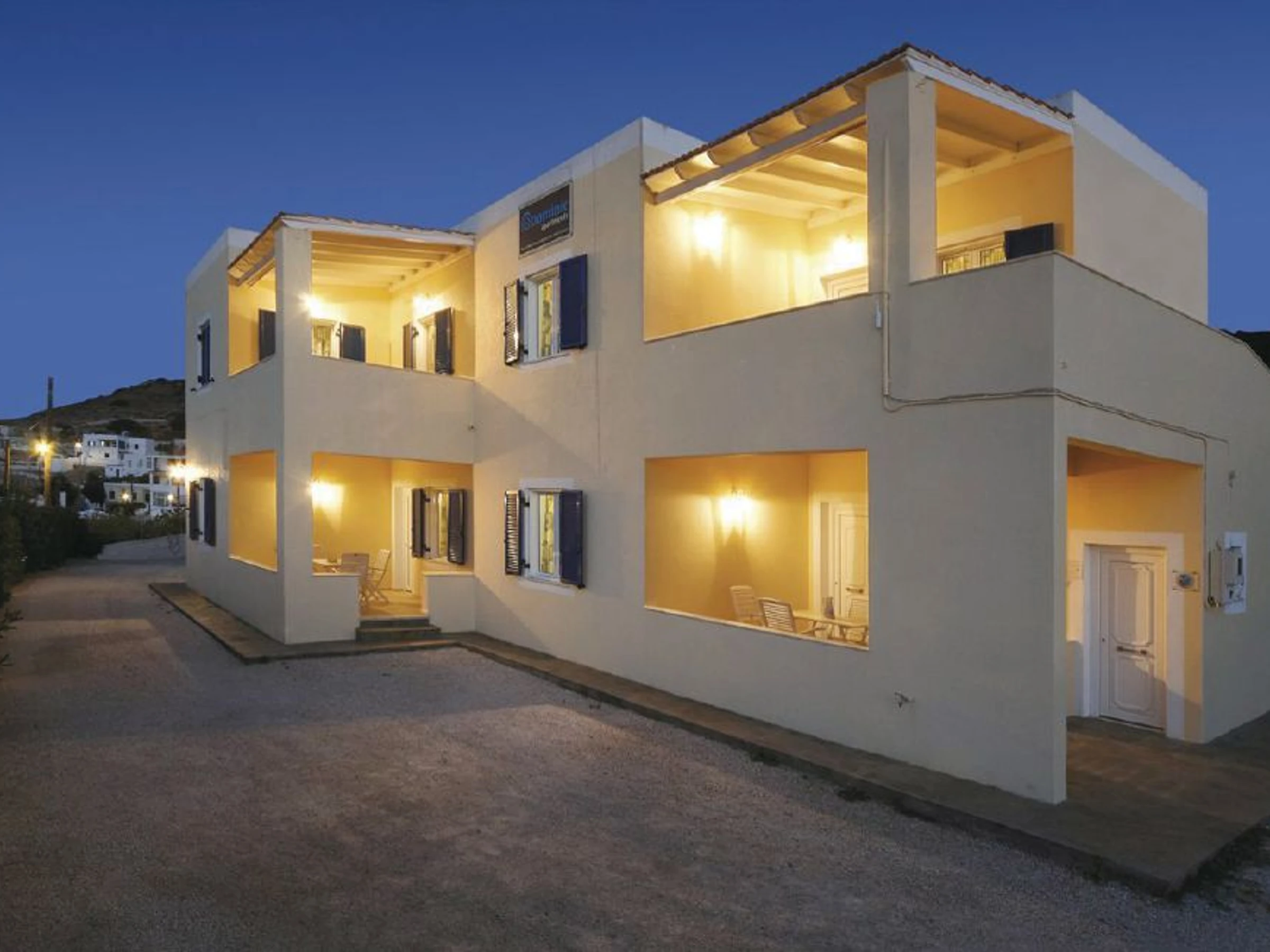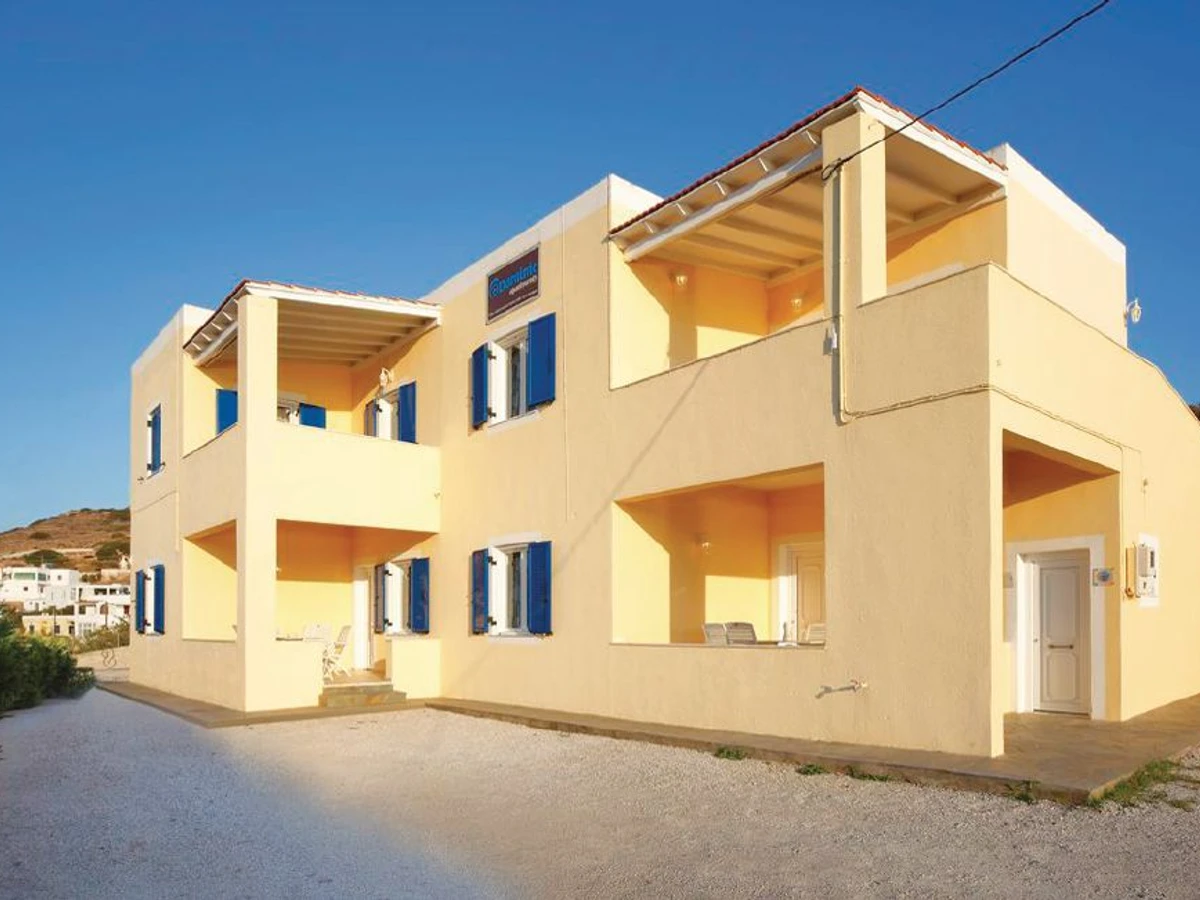 Ces appartements de vacances sont situés dans un endroit chaleureux et calme, à seulement 150m de la plage de Finikas sur l'île de Syros. En une courte distance de marche, vous pourrez rejoindre les restaurants, les cafés et les commerces du village. Les appartements disposent d'une loggia ou terrasse couverte ainsi que de deux chambres séparées. Vous pourrez profiter de la tranquillité du lieu et ce sont des locations de vacances idéales pour apprécier pleinement la mer et les beaux paysages de l'île. Finikas est situé dans la partie sud-ouest de Syros, à environ 9 km de la ville principale de l'île, Ermoupoli, la « reine des Cyclades », qui peut être atteinte par un transport en commun régulier du port principal du Pirée. Disponible sur le site avec supplément: Draps et serviettes - 0.0 EUR par personne; Nettoyage(sur place) - 0.0 EUR par séjour;