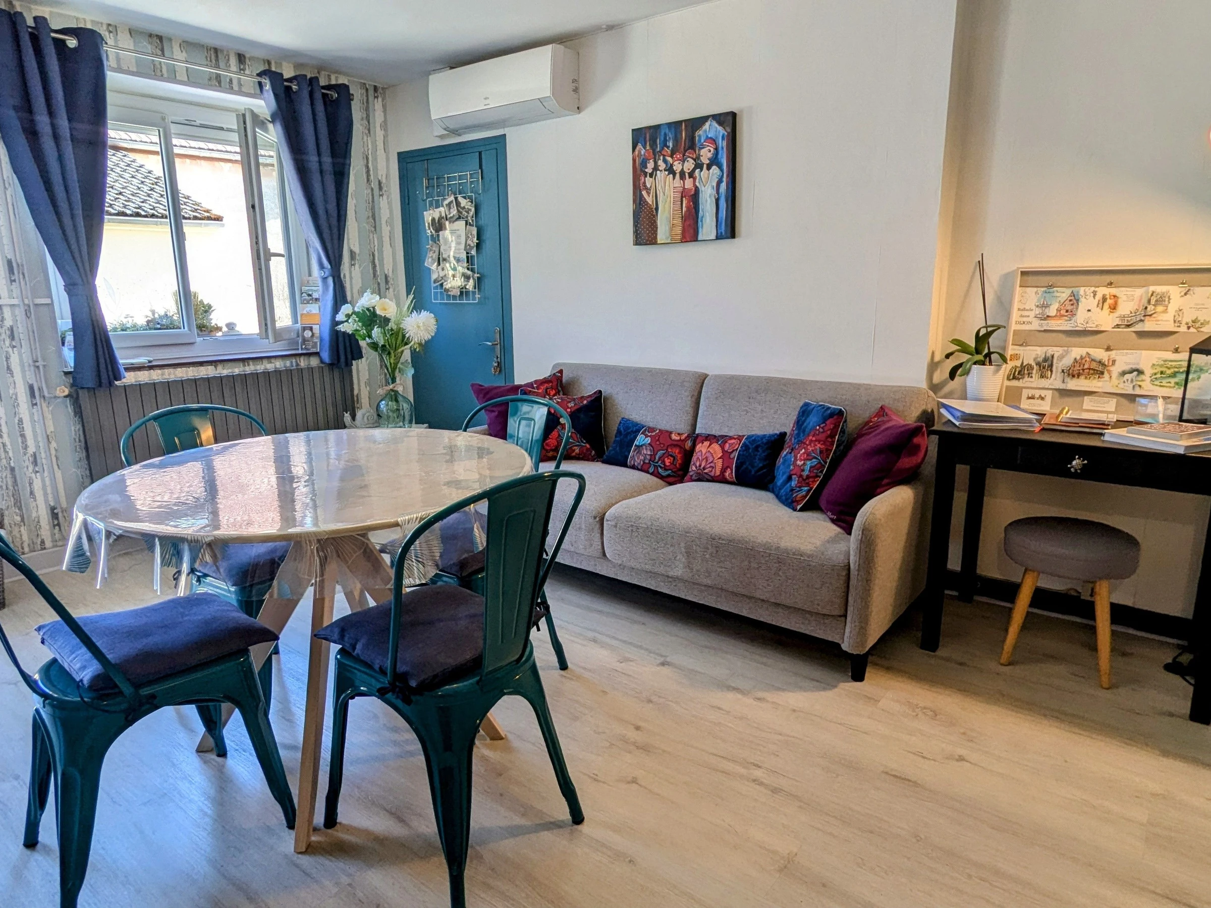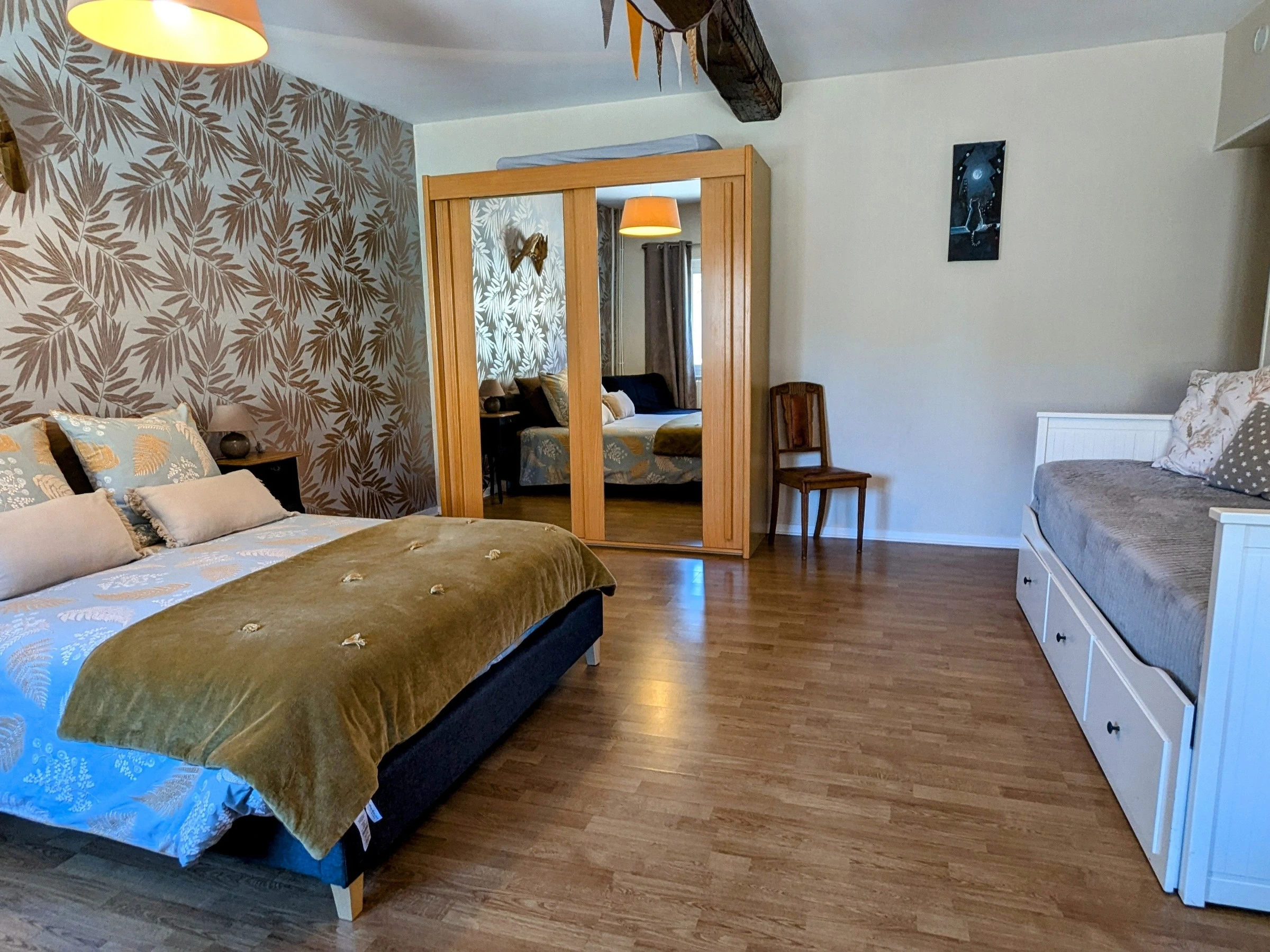 Dans un petit village calme à proximité de Nuits-Saint-Georges et à 20 minutes de Dijon, le gîte "l'Atelier de Flagey", gîte de plain pied mitoyen à l'atelier et à la maison des propriétaires, vous offre : 1 cuisine équipée ouverte sur salon/salle à manger, TV, wifi, 1 salle d'eau avec douche adaptée aux personnes à mobilité réduite et WC, 1 grande chambre avec 1 lit de 140 cm + 1 lit gigogne. Climatisation réversible. Possibilité de 2 couchages supplémentaires sur demande (10 €/nuit/pers). A disposition sur demande : 1 lit parapluie, 1 chaise haute et 1 baignoire bébé. Petite terrasse privative avec salon de jardin, parasol et barbecue. Piscine hors sol à partager avec les propriétaires, non chauffée, ouverte selon conditions météo (Mai à Septembre - de 10h00 à 19h00). 1 place de parking dans la cour (non fermée), et grand parking public gratuit à l'arrière du gîte. Si recharge de voiture électrique (pas de prise renforcée) : 10 €/charge à régler sur place.