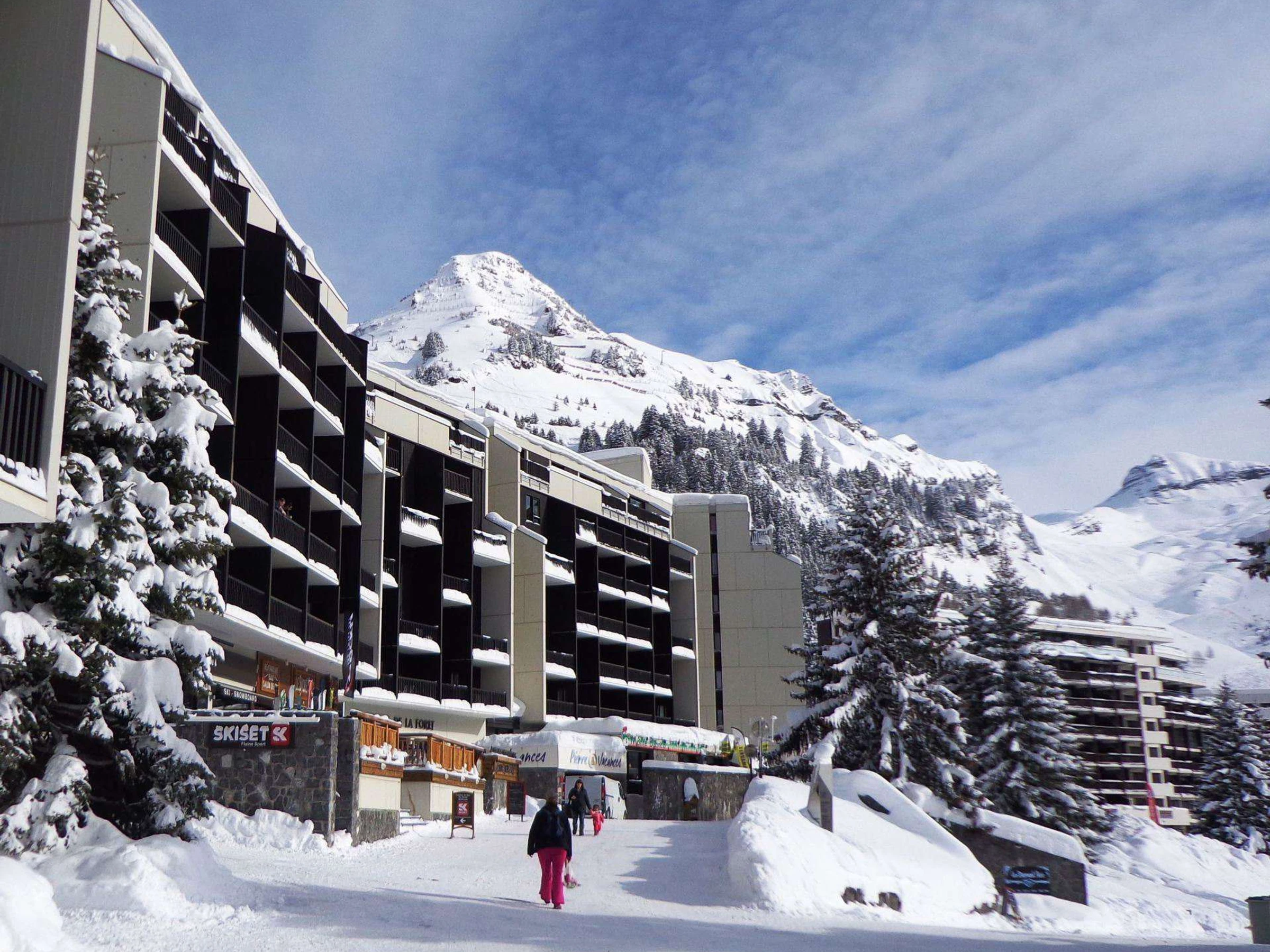 Résidence située dans le quartier de Flaine Forêt à environ 50 mètres du départ des pistes et des rassemblements d'écoles de ski et à proximité immédiate des commerces. Ascenseurs. Casiers à ski.
