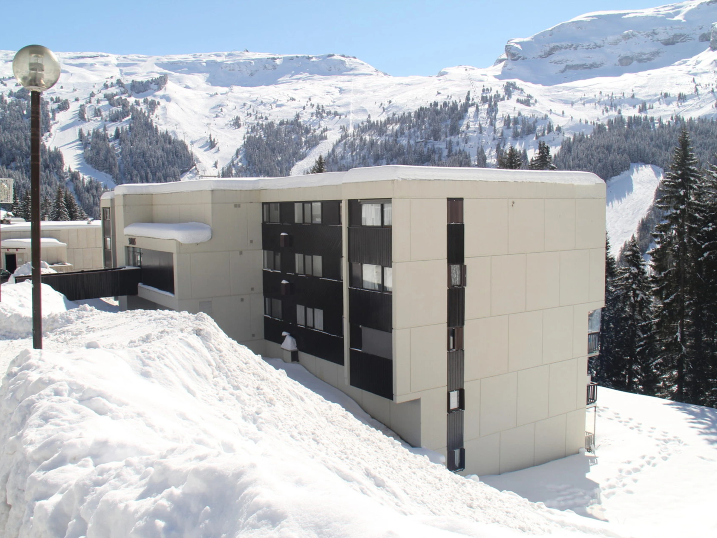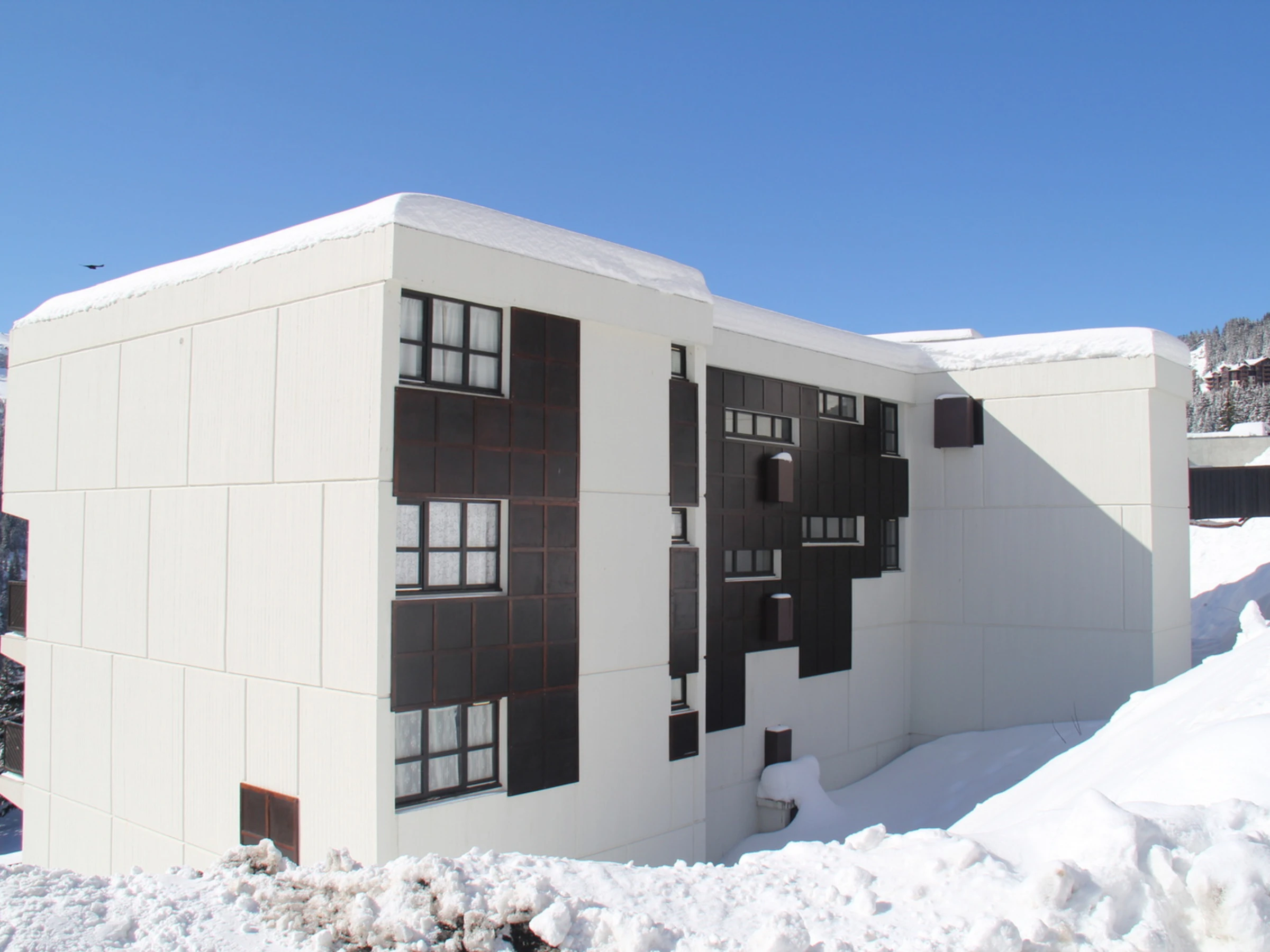 Résidence située dans le quartier de Flaine Forêt à environ 400 mètres du départ des pistes et des rassemblements d'écoles de ski et à environ 100 mètres des [hidden] Arrêt de bus à 20m. Casiers à skis.
