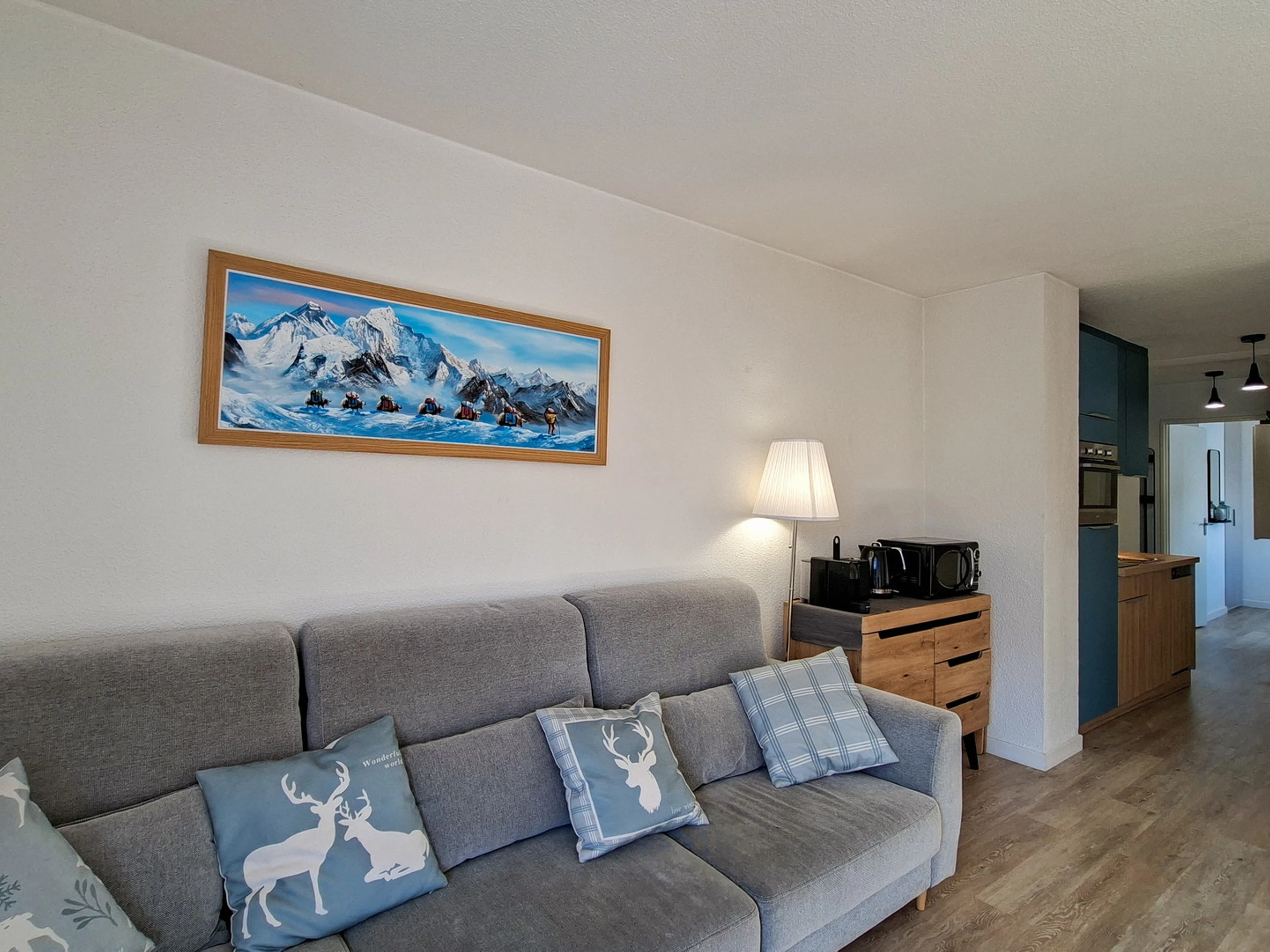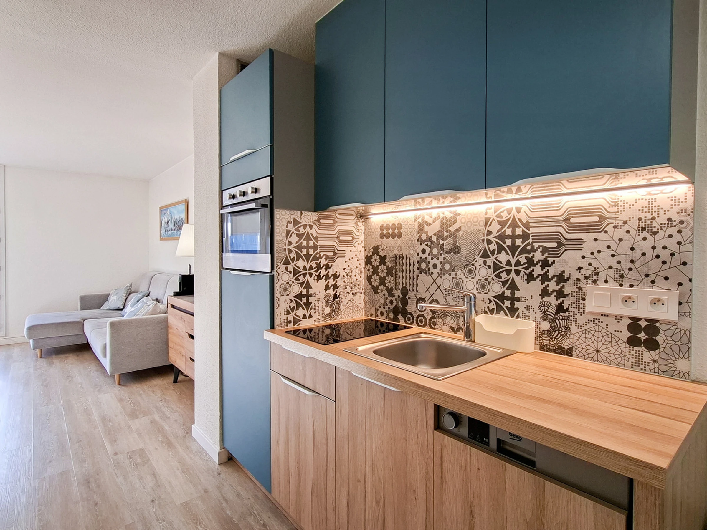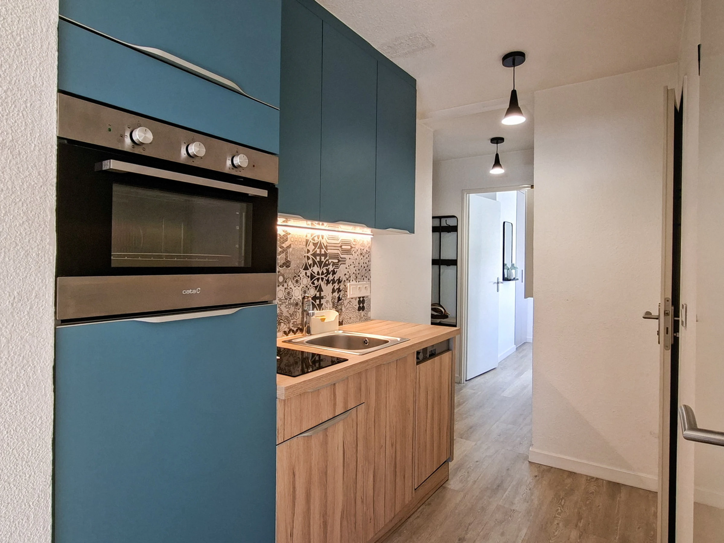 - Coin cuisine avec 2 plaques à induction, four, micro-onde, lave-vaisselle, réfrigérateur, cafetière à capsules Nespresso