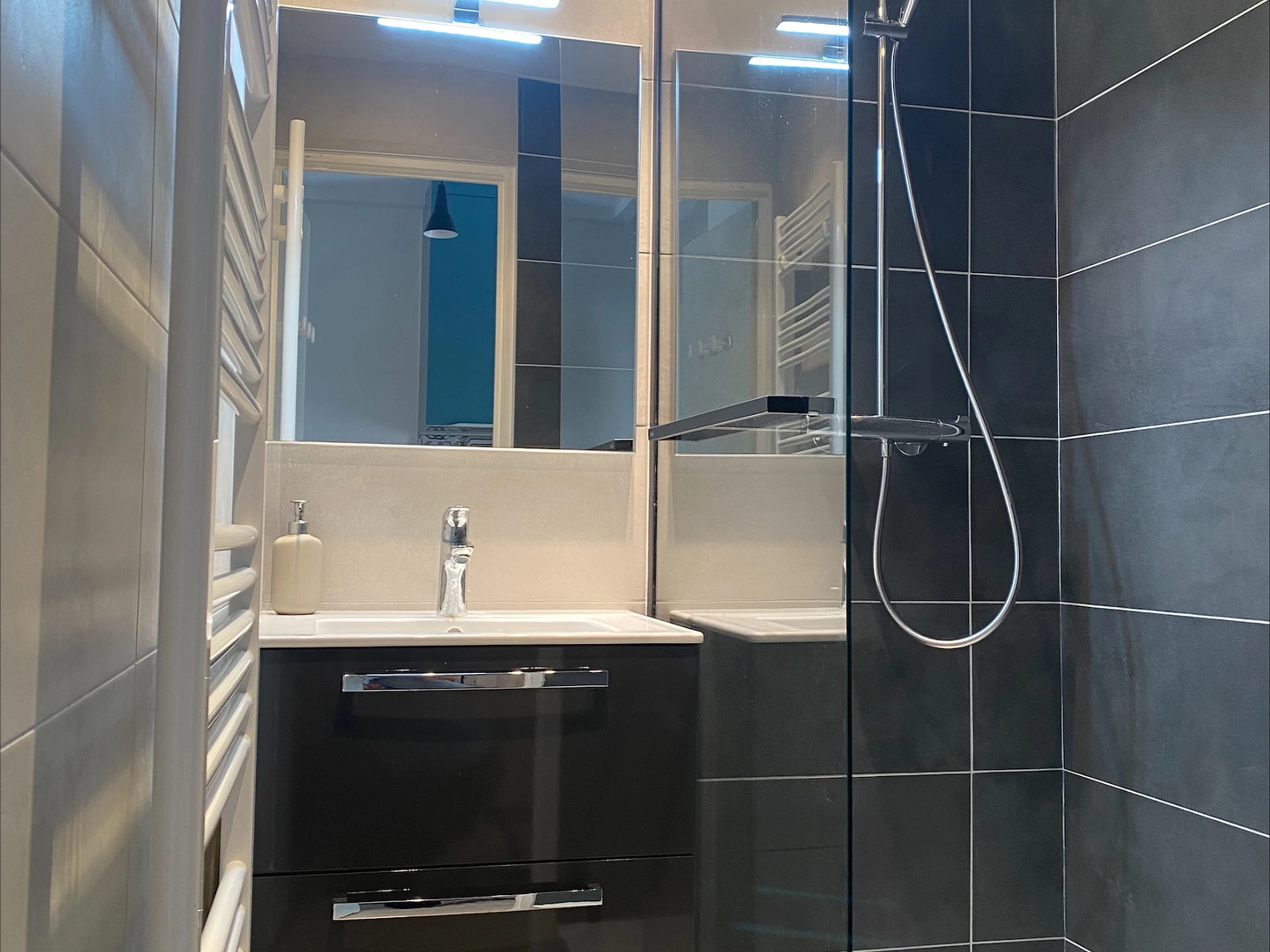 - Salle de douche avec radiateur sèche serviette