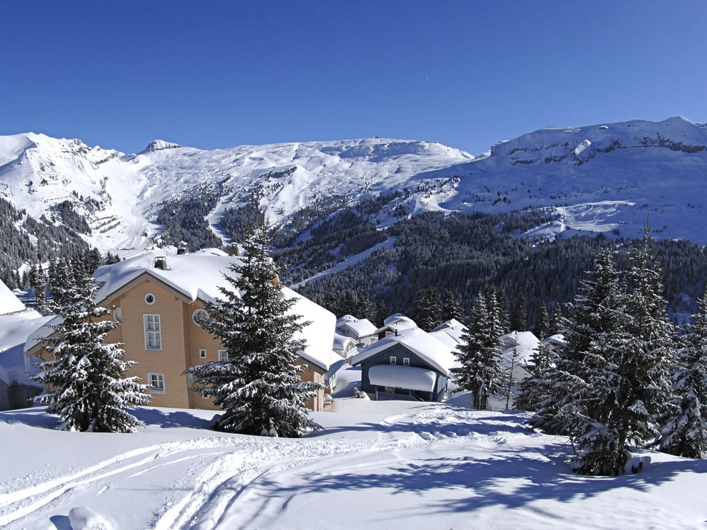 Magnifique quartier de chalets scandinaves avec quelques commerces situé au Hameau de Flaine. Piste bleue à proximité pour atteindre les remontées mécaniques et skibus gratuit pour accéder au départ des pistes et rassemblement d'écoles de ski de Flaine Forêt.
