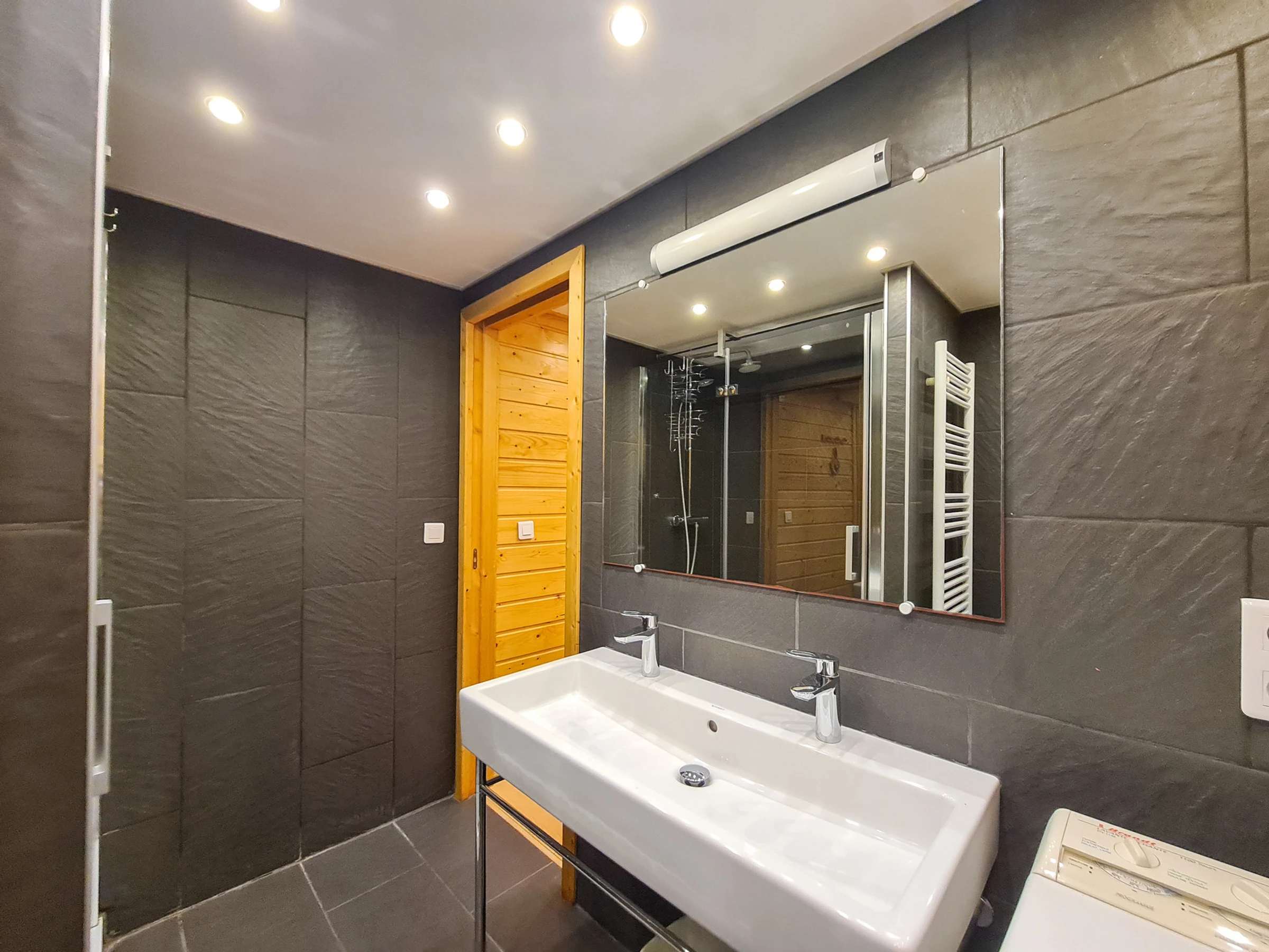 - 1 salle de douche avec lave- linge séchant et toilettes