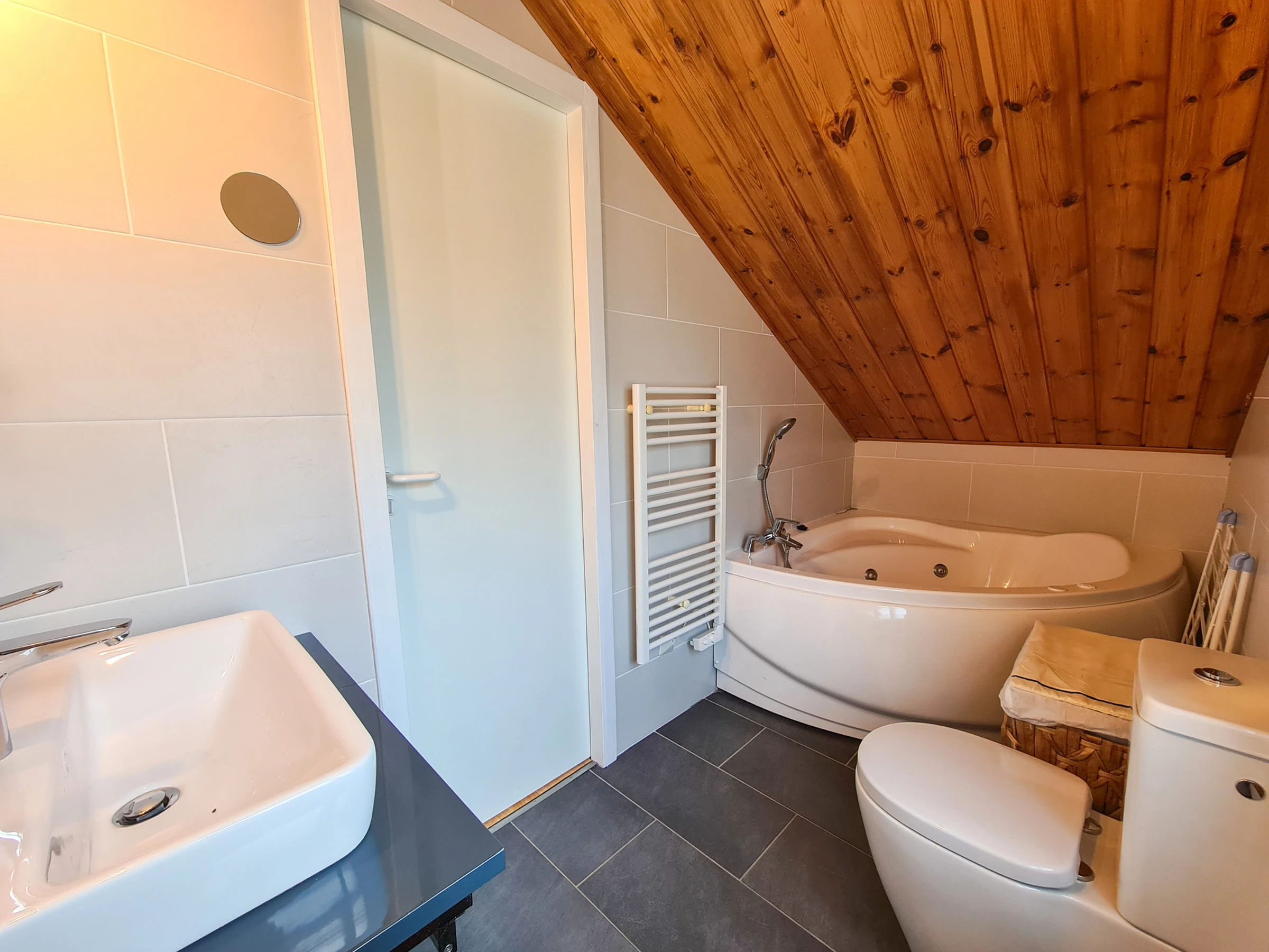 - 1 salle de bain avec baignoire balneo et toilettes,