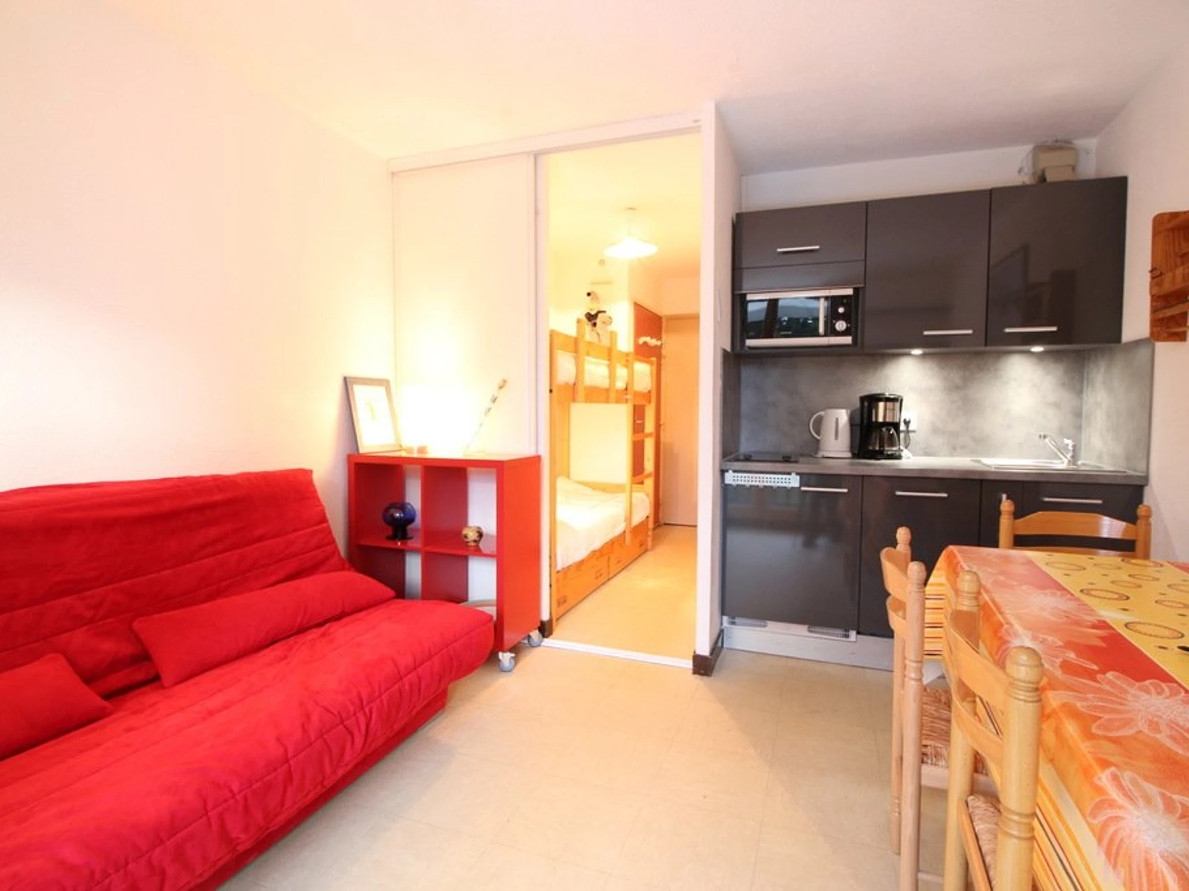 Ce studio cabine de 25 m², avec séjour récemment rénové, est situé au 1er étage de la résidence (niveau -2 par rapport à l’entrée principale, sans ascenseur), à 500 mètres des pistes et à seulement 50 mètres des commerces. Un arrêt de navette gratuite se trouve à 20 mètres. Le balcon exposé sud offre une vue dégagée sur le domaine skiable.