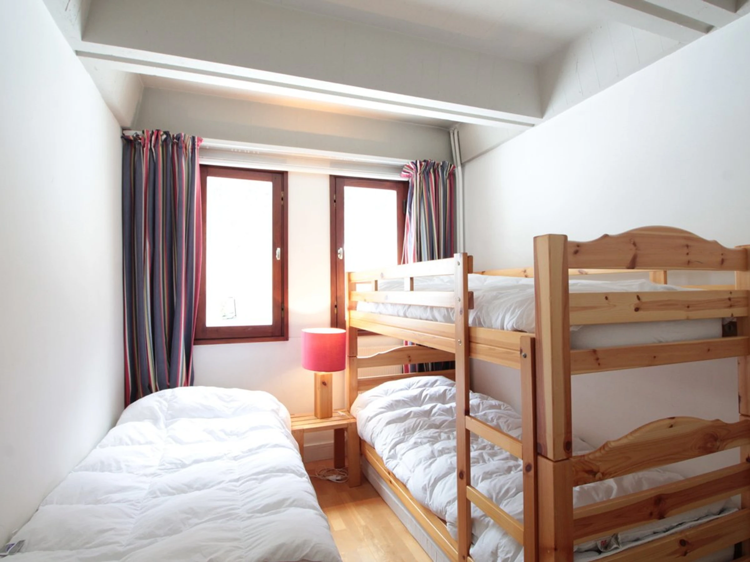 Chambre 1 : deux ensembles de lits superposés (1 personne). Le couchage en hauteur ne convient pas aux enfants de moins de 6 ans.