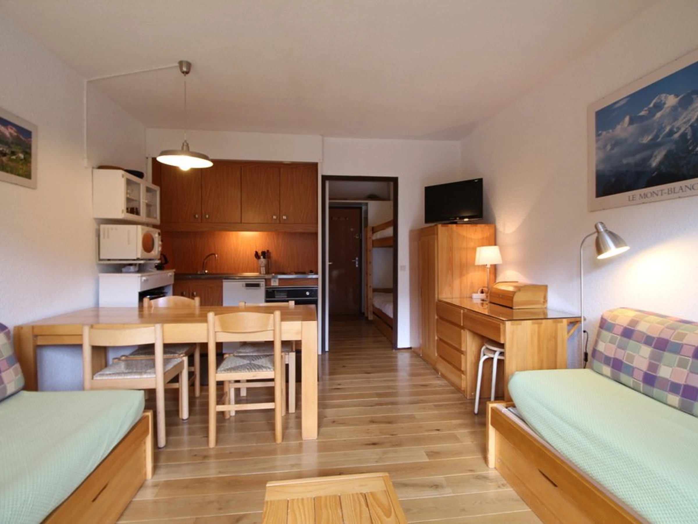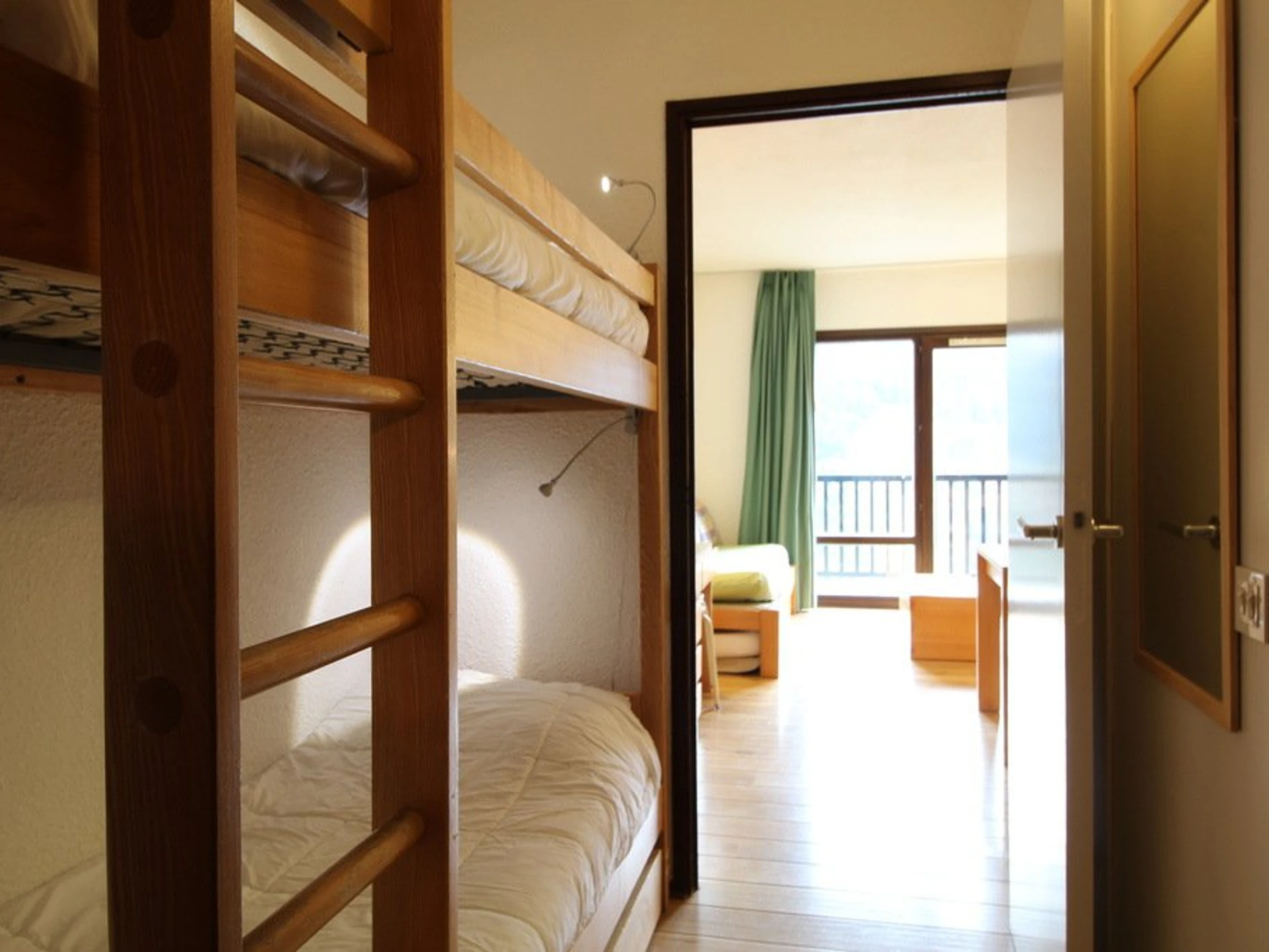 Le séjour comprend un canapé-lit gigogne pour deux personnes et une banquette-lit une personne. L’entrée fermée est équipée de lits superposés pour deux couchages individuels, dont le lit supérieur n’est pas adapté aux enfants de moins de six ans. La salle de bains est pourvue d’un WC. La cuisine, fonctionnelle et bien équipée, comprend un four, un micro-ondes, quatre plaques électriques, un réfrigérateur et une cafetière filtre. L’appartement est également doté d’un téléviseur à écran plat, d’un chauffage individuel et d’une eau chaude collective. Un casier à skis est à disposition au rez-de-chaussée et un parking extérieur est disponible à la station. Le logement est non-fumeur.