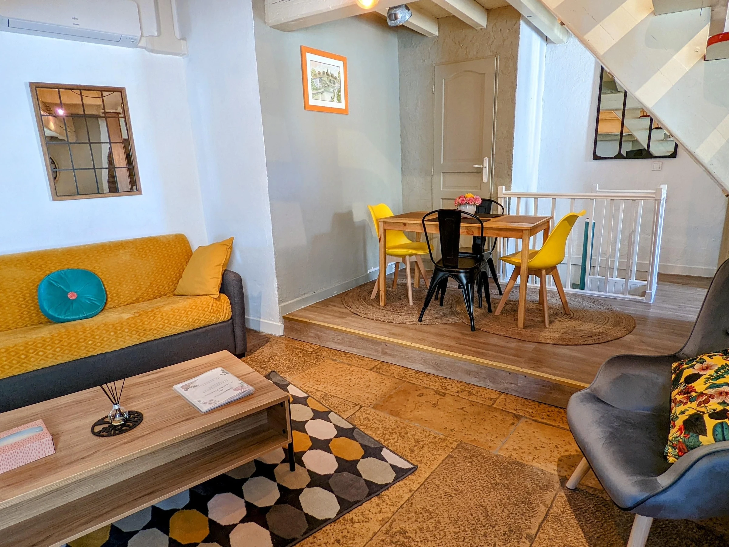 Un espace "zen" avec sauna infra-rouge, un salon de détente avec tisanerie A 15 minutes de Dijon, au bord du Canal de Bourgogne, avec toutes les commodités, jolie maison atypique, comprenant : au rez-de-chaussée (surélevé) : salon (canapé convertible offrant 2 couchages d'appoint avec supplément), TV, enceinte Bluetooth, ouvert sur salle à manger et cuisine équipée. A l'étage inférieur : Salle de bain avec baignoire et WC. Un espace "zen" avec sauna infra-rouge, un salon de détente avec tisanerie. Au 1er étage : 1 chambre avec 1 lit de 160 cm et 1 chambre avec 2 lits de 90 cm. Climatisation réversible. Petite terrasse avec salon de jardin, barbecue, parasol. 2 animaux max. admis. Gîte non adapté aux personnes à mobilité réduite (escaliers "raides").