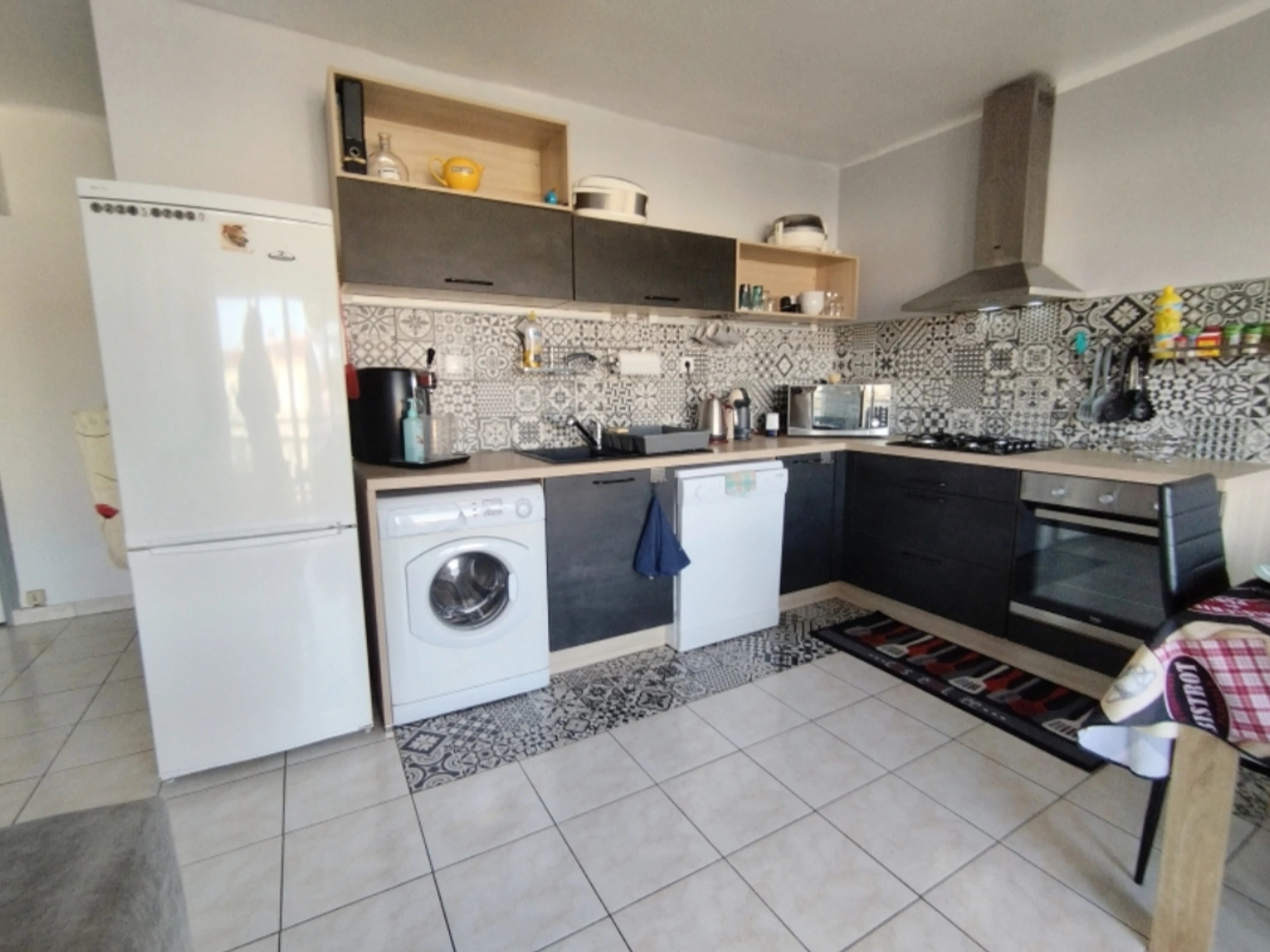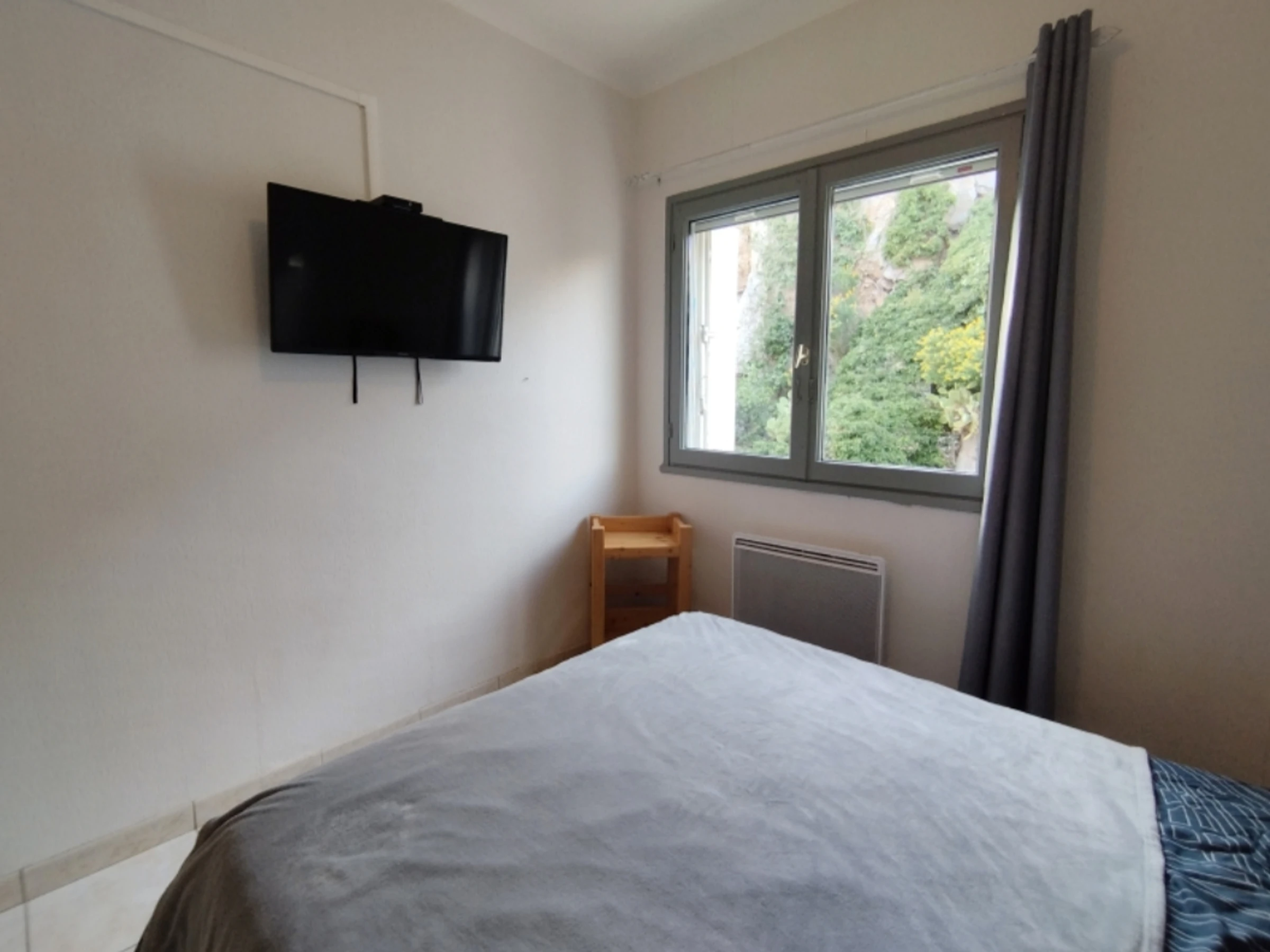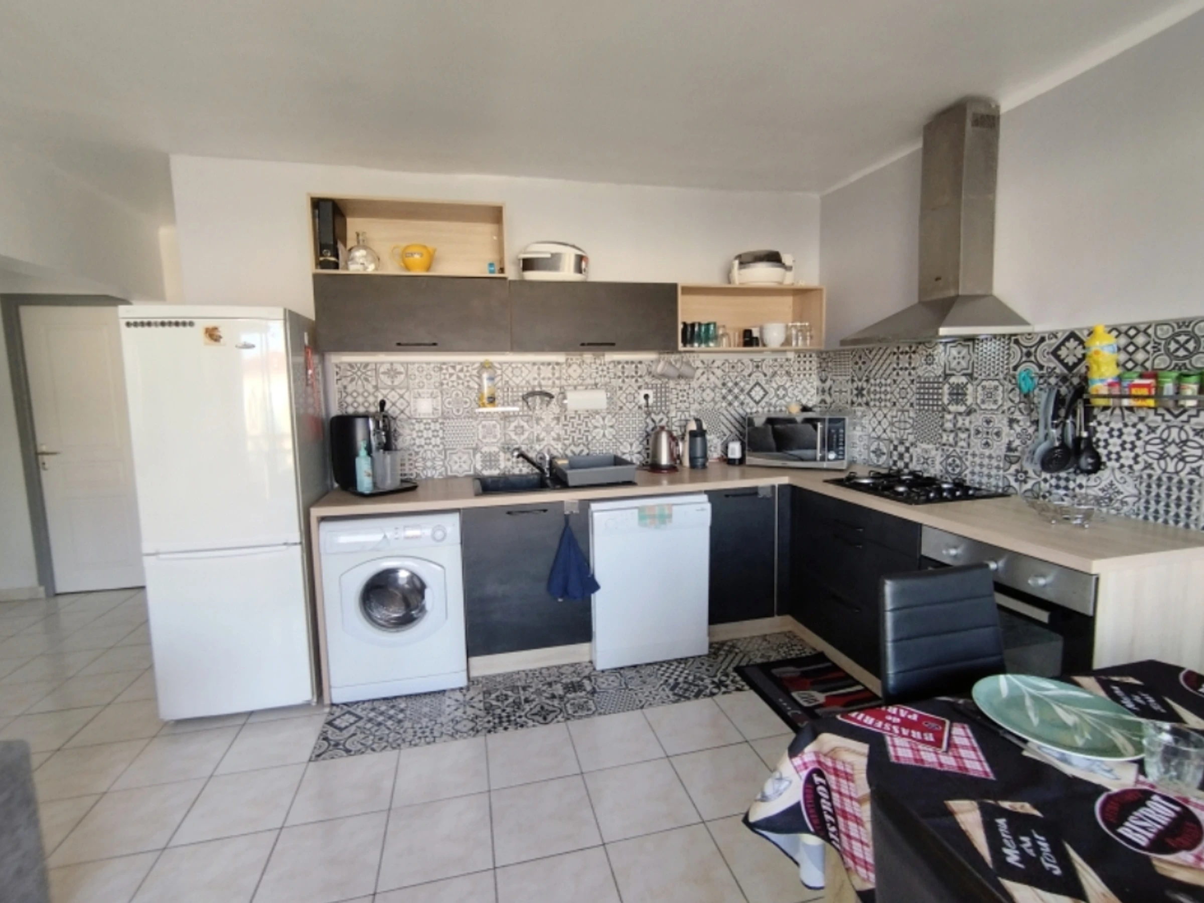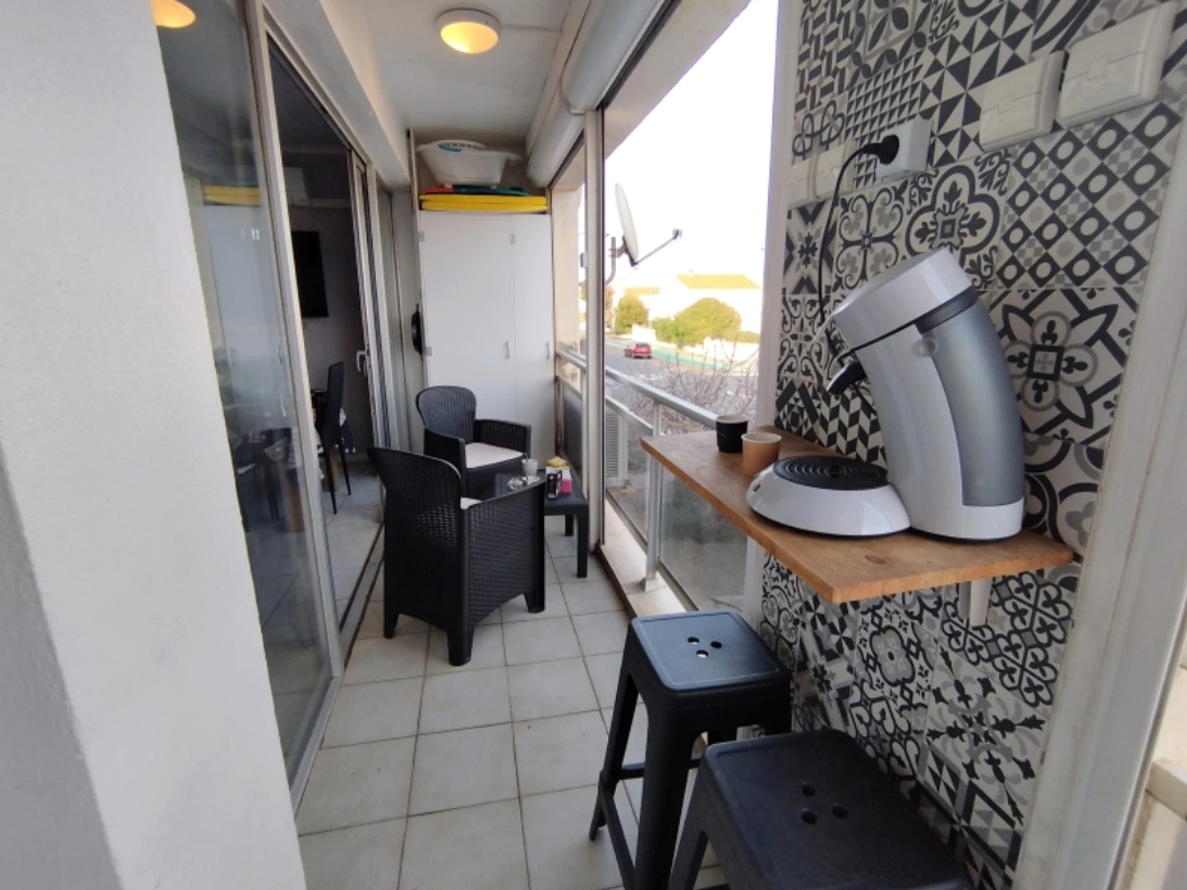 Grande pièce lumineuse (canapé convertible) donnant sur une longue terrasse ensoleillée. Coin cuisine entièrement équipé.