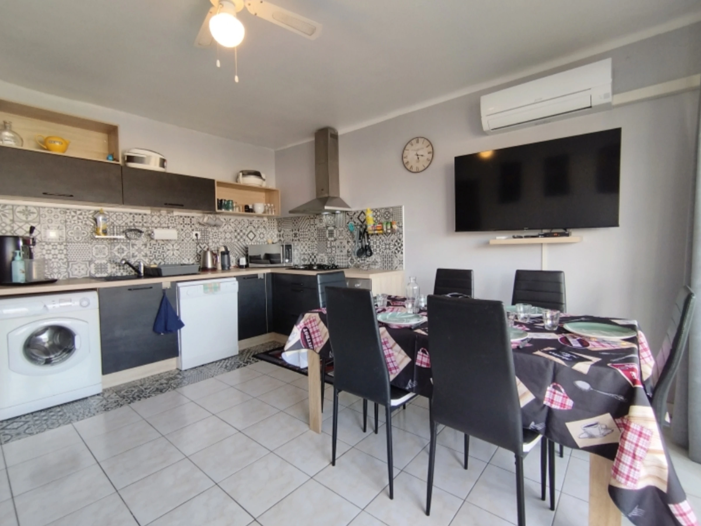 Équipements complets : Climatisation, TV écran plat, lave-linge, lave-vaisselle, grand frigo-congélateur, micro-ondes, cafetières Senseo & Dolce Gusto, four, bouilloire, plancha, mobilier de terrasse, ventilateurs...