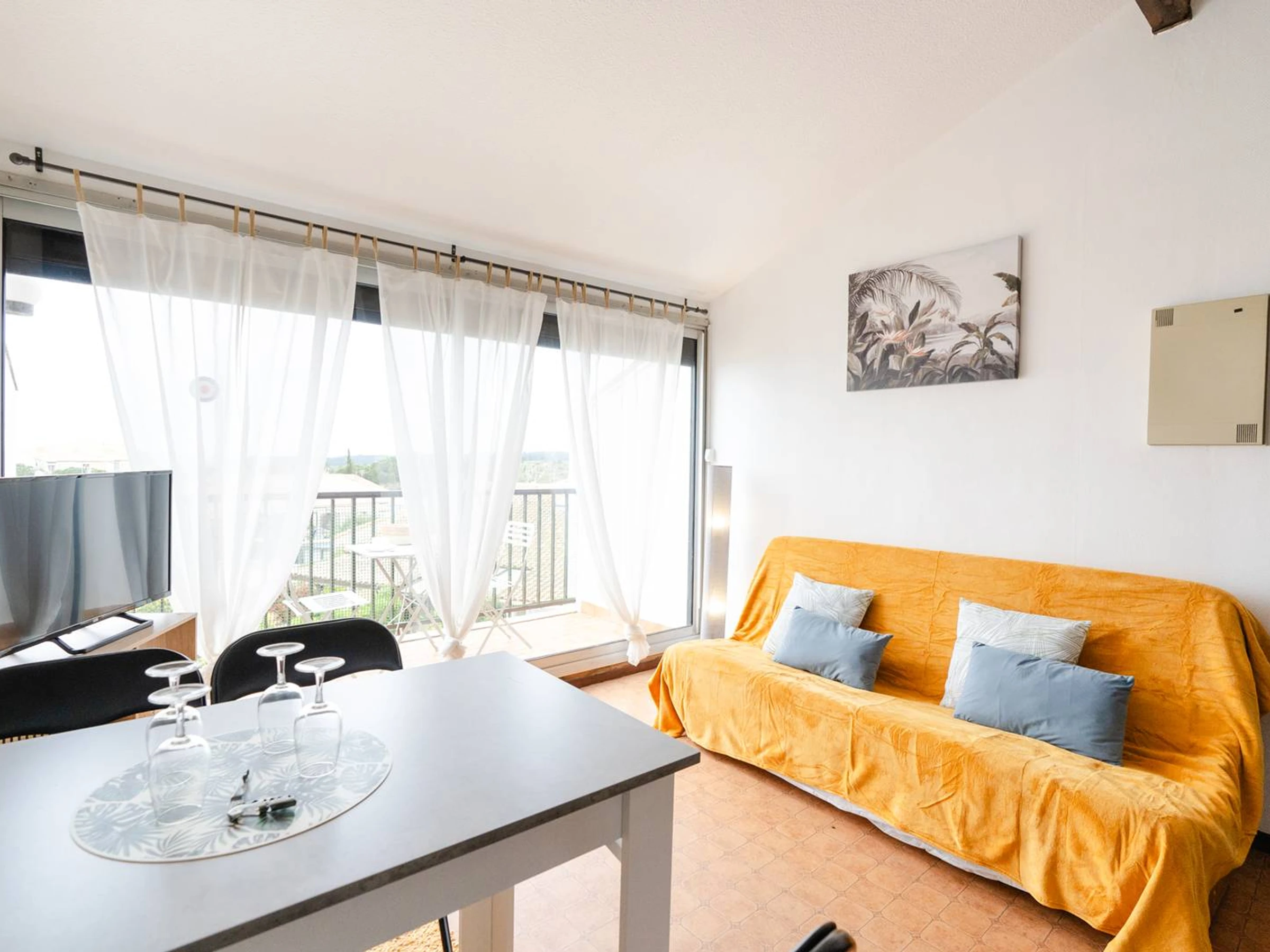 Découvrez ce studio avec mezzanine offrant une vue sur la mer.