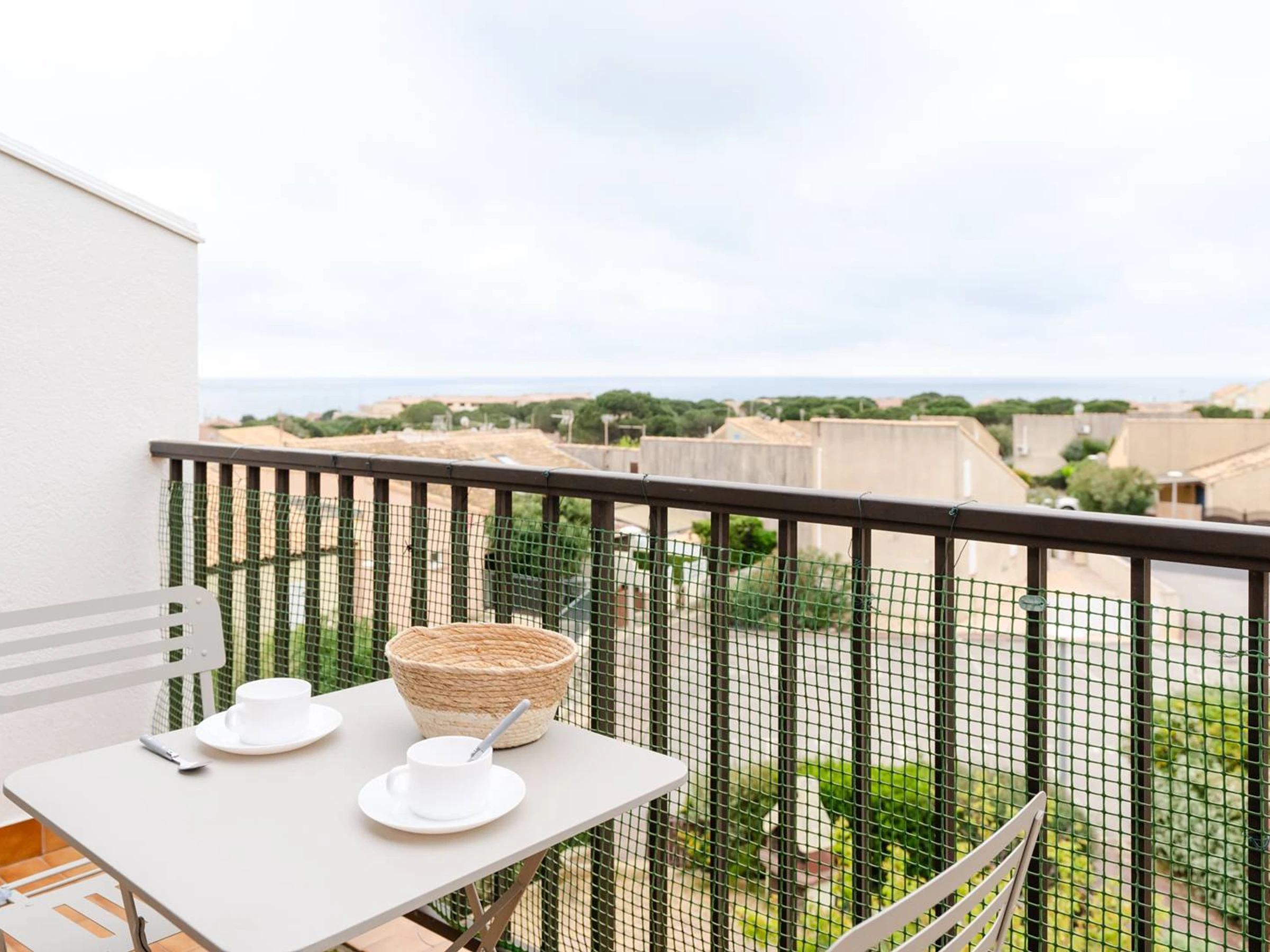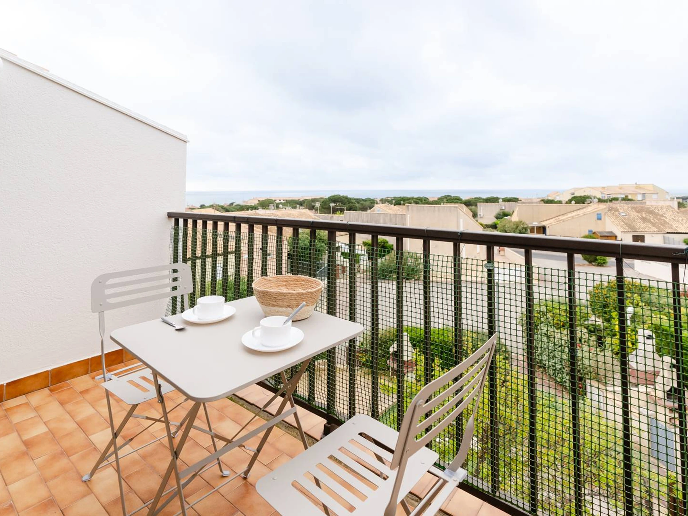 Le logement offre un balcon équipé d'une petite table, de quatre chaises de jardin et de deux chaises chiliennes.