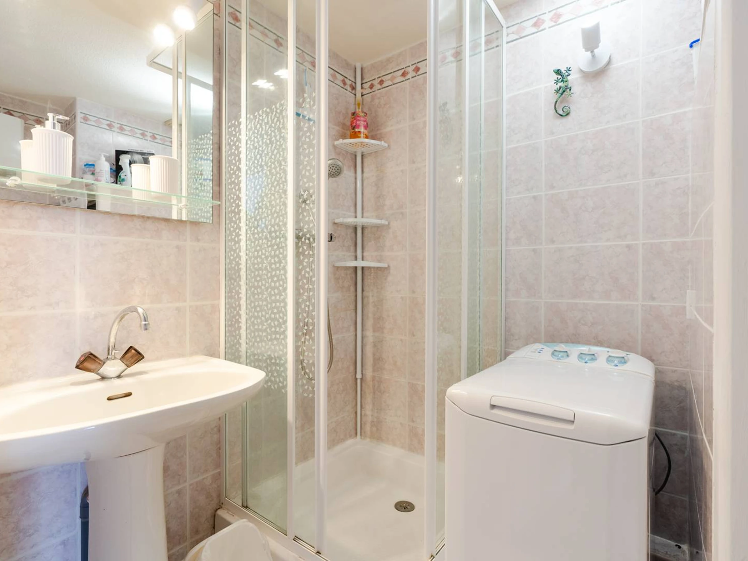 La salle d'eau est équipée d'une douche, WC, lavabo et d'un lave-linge pour plus de confort. La mezzanine est équipée de deux lits simples de 90x190 cm et d'un portant.