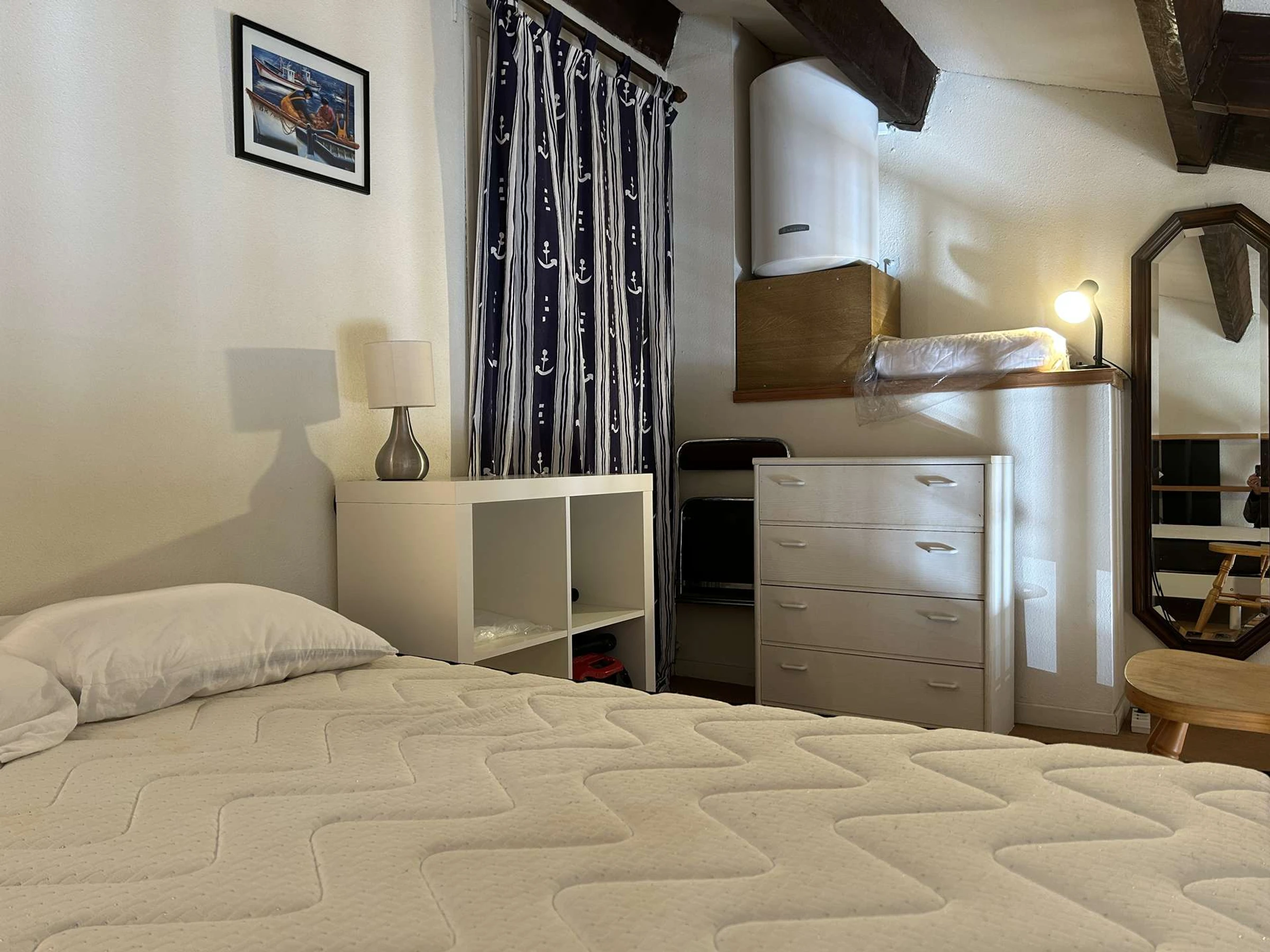 Cette location de vacances en familles, située au 3e et dernier étage, comprend un séjour avec télévision et canapé convertible 2 personnes, une cuisine équipée, un chambre avec un lit en 140, une salle d'eau avec toilettes et une mezzanine avec un lit 2 places (140) et une commode + des rangements cubes