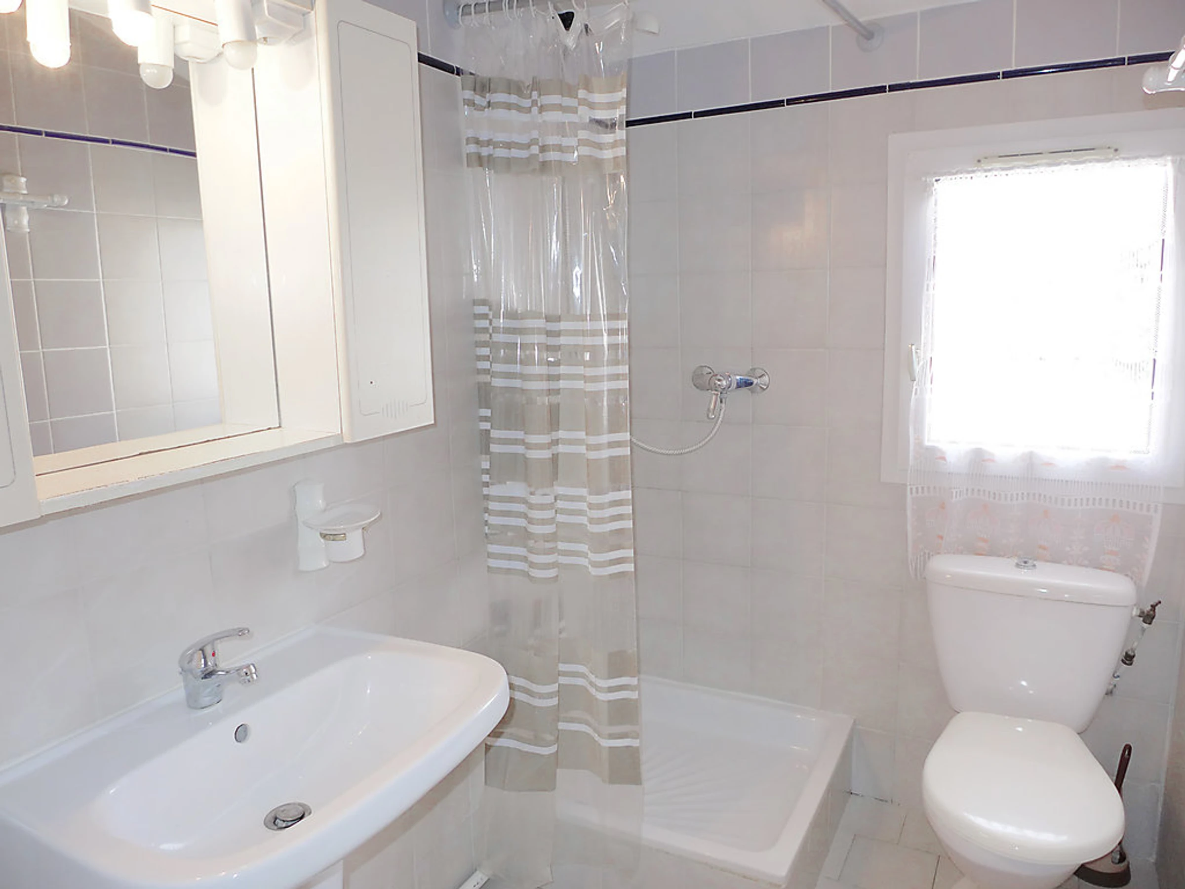 Maison mitoyenne 4 pièces 50 m2 sur 2 niveaux. Salle à manger avec TV (écran plat). Sortie sur la véranda. 1 chambre avec 1 grand-lit (140 cm). Cuisine ouverte (4 plaques de cuisson, four, four micro-ondes, congélateur) avec bar. Douche/WC. À l'étage supérieur: 2 chambres, chaque chambre avec: 1 grand-lit (140 cm). Douche/WC. Chauffage électrique. Terrasse 45 m2, situation sud-est. Meubles de terrasse, loggia. Vue sur la mer. A disposition: Internet (Connexion WIFI, en sus). Garage. Veuillez noter: 1 animal/ chien autorisé. Détecteur de fumée.