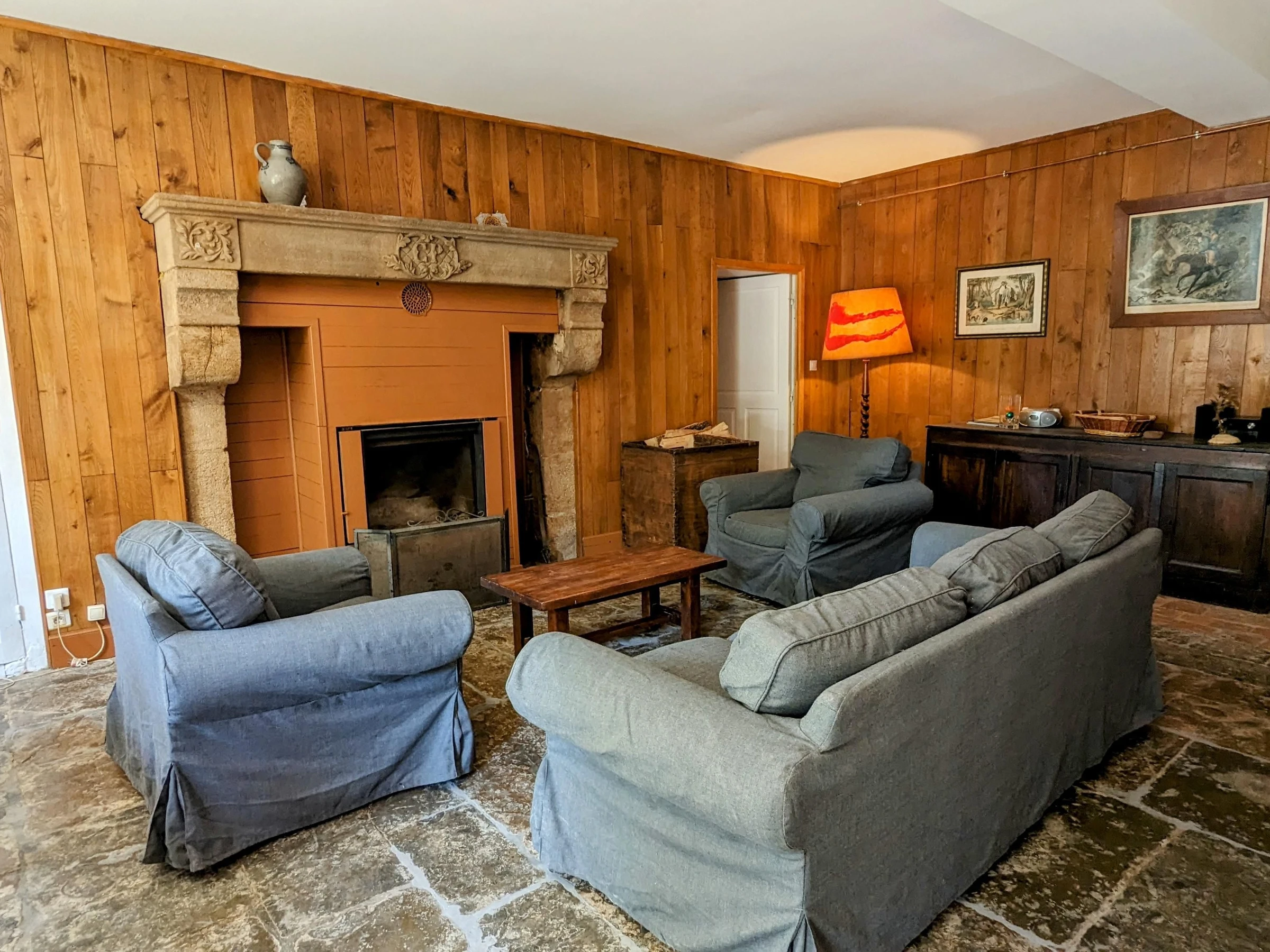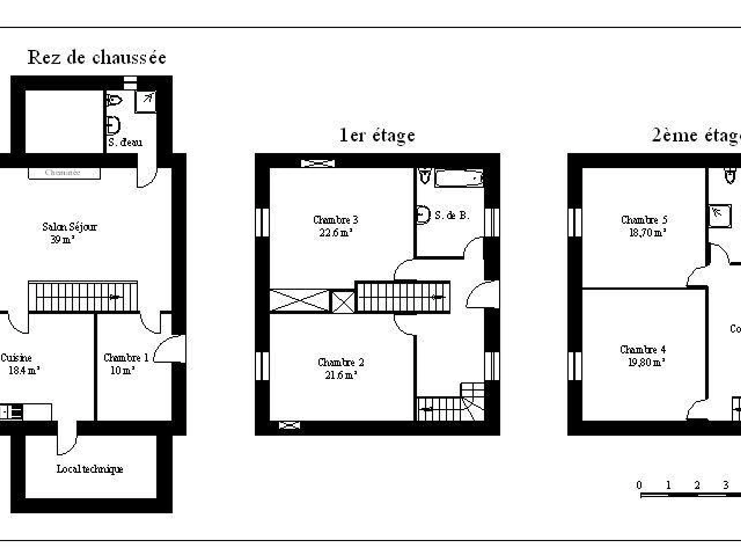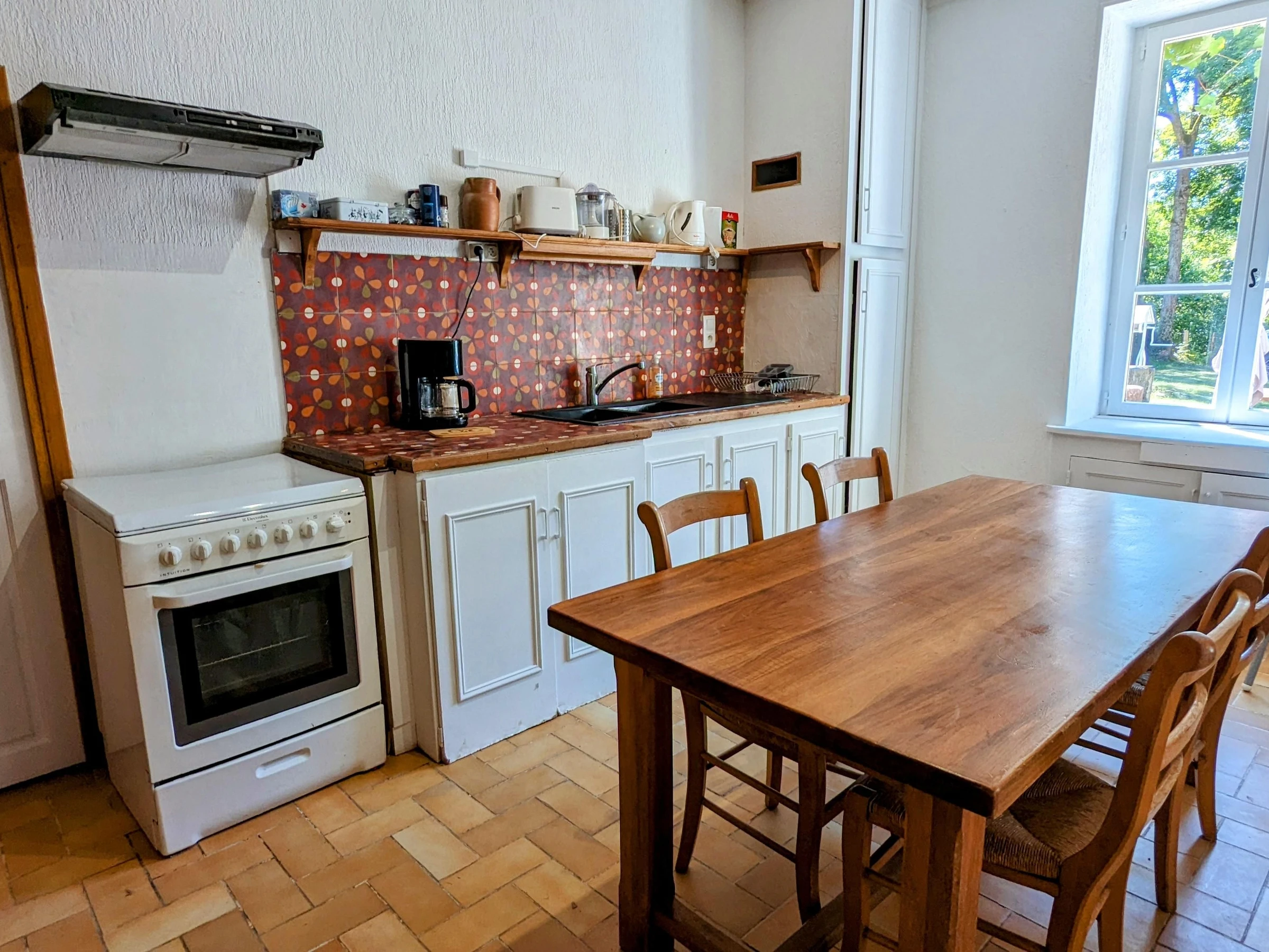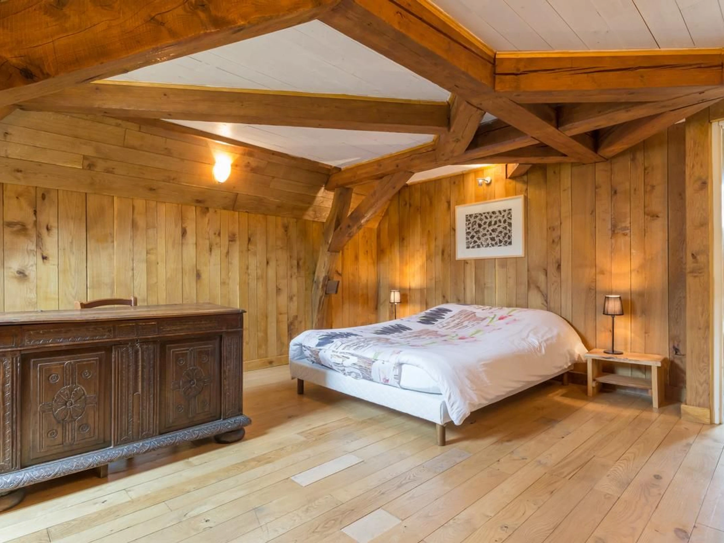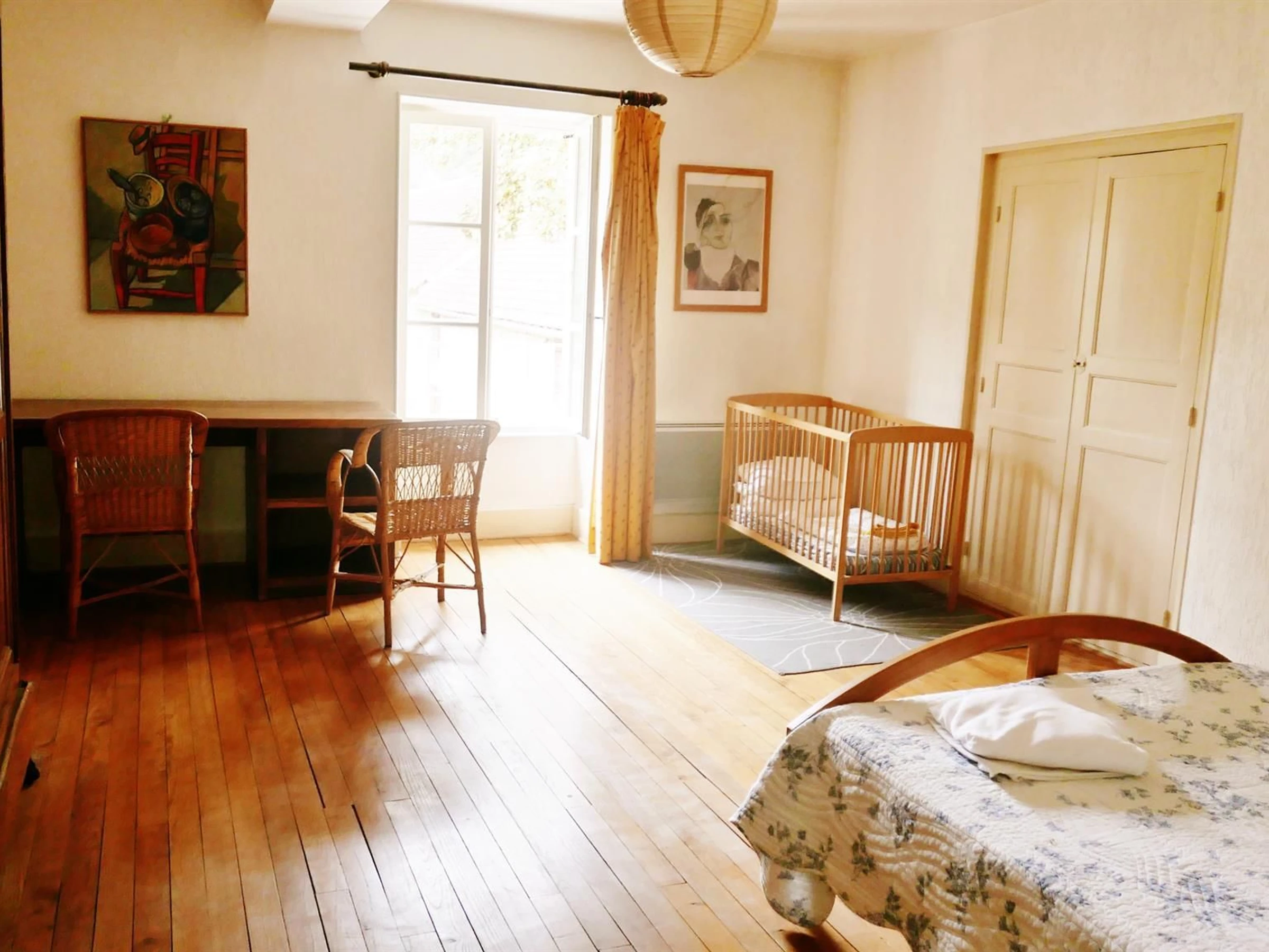 Rez-de-chaussée : salle à manger - salon avec dalles anciennes, cheminée et piano. Cuisine. 1 chambre avec 2 lits 90. Salle d'eau, wc. Etage 1 : 2 chambres, une avec 1 lit 140 et 1 lit 90, la 2ème avec 1 lit 140. Salle de bains avec wc. Le 2ème étage est une extension en bois récemment créée avec 2 chambres (une avec 1 lit 160 et l'autre avec 2 lits en 90) et salle d'eau avec WC. Grand terrain sur 10 ha de forêt privée.
