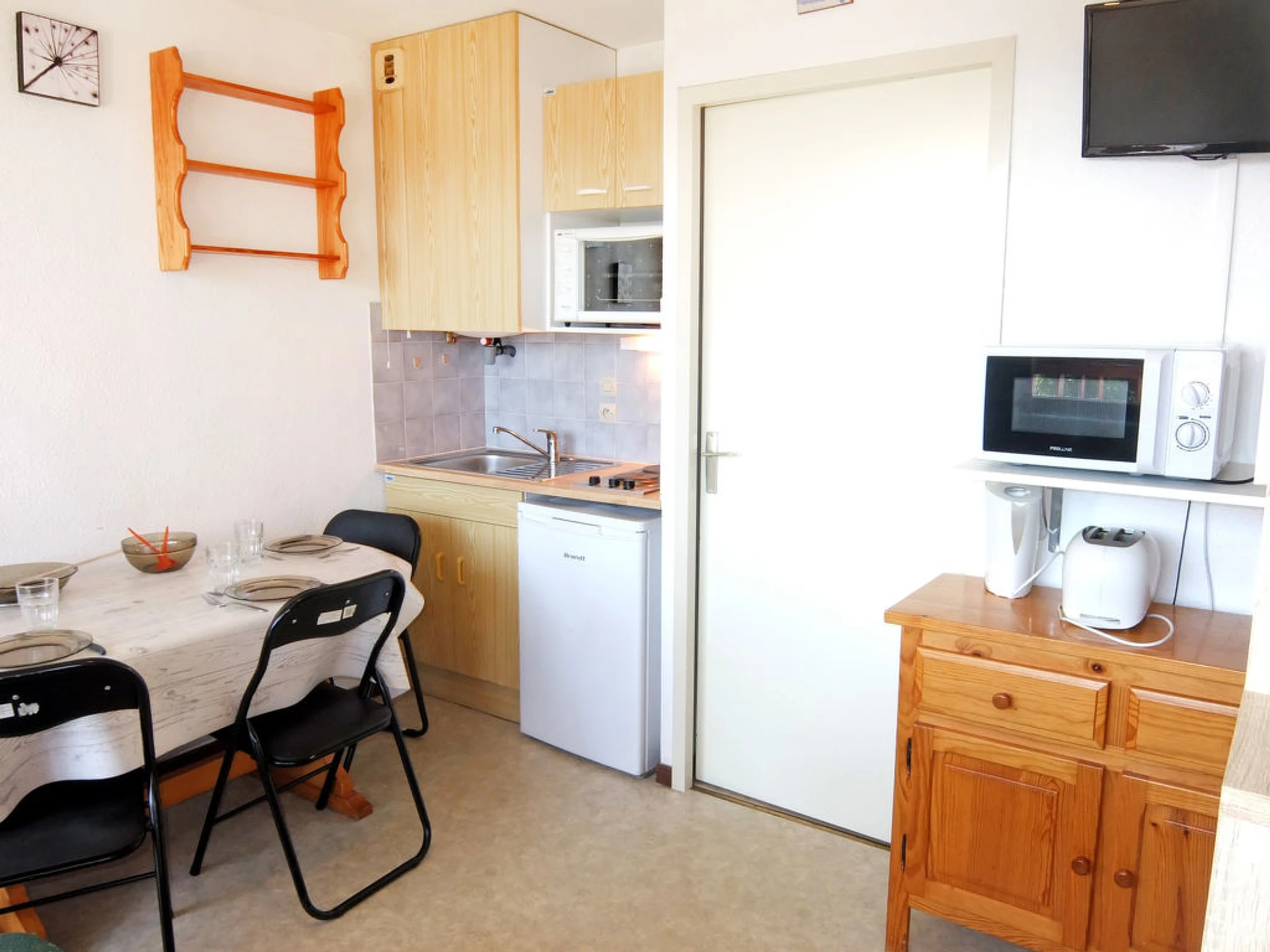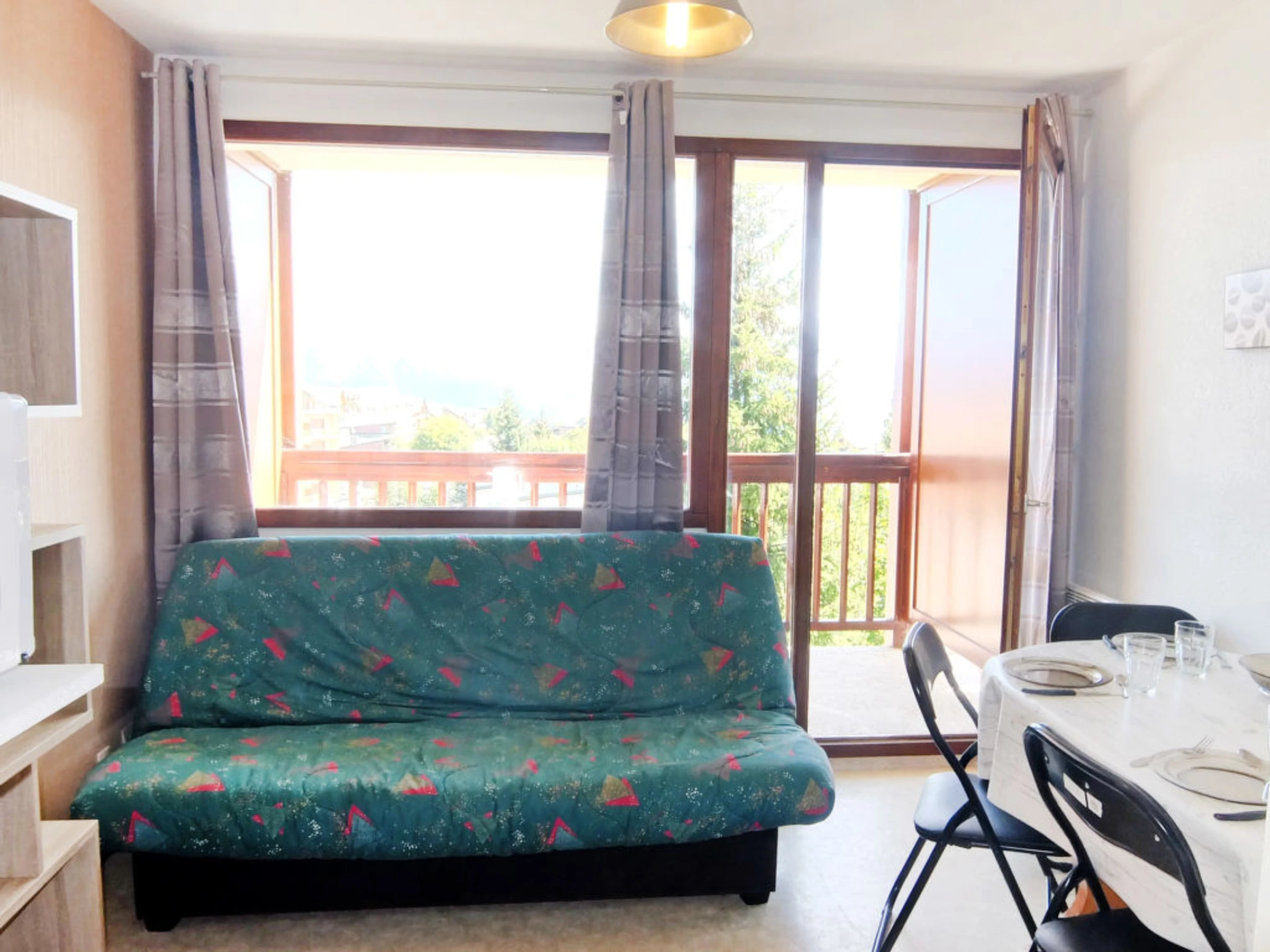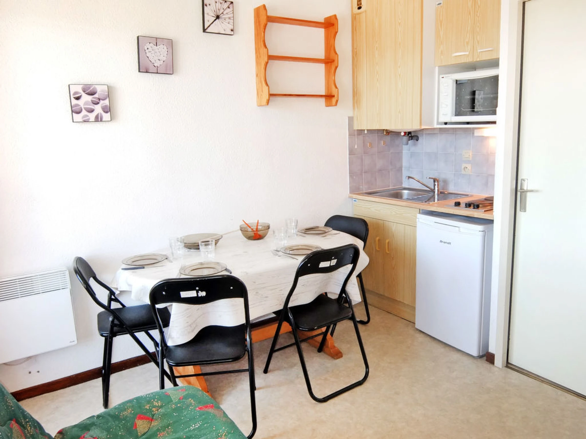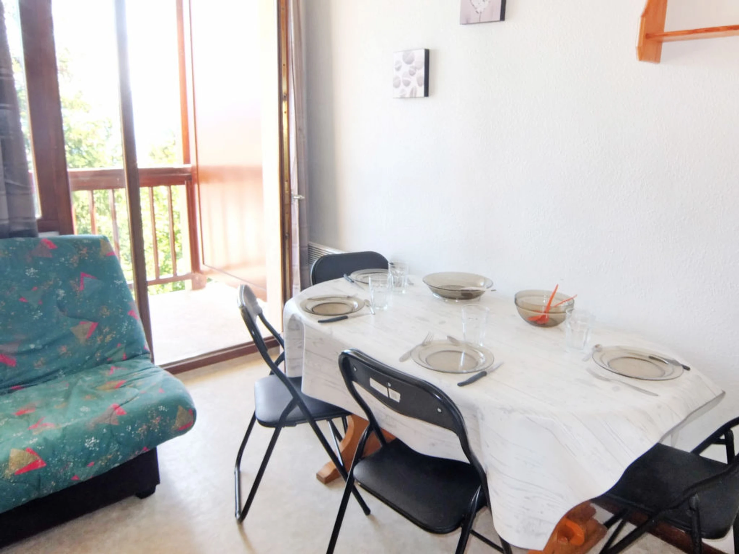 Apt 2 pièces 25 m2 au 2ème étage, situation nord-est. Séjour/salle à manger avec TV. Sortie sur le balcon. 1 chambre avec 1 grand-lit (120 cm). Entrée avec 1 x 2 lits superposés (90 cm). Petite coin cuisine (2 plaques de cuisson, four, four micro-ondes, cafetière électrique). Salle de bains, WC séparé. Balcon. Meubles de terrasse. Belle vue sur les alentours et la localité. A disposition: fer à repasser. Internet (Connexion WIFI, en sus). Veuillez noter: maximum 1 animal/ chien de petite taille autorisé. Détecteur de fumée. Logement dans le bâtiment A. ATTENTION : LA REMISE DES CLEFS DES LOGEMENTS DE LA TOUSSUIRE SE FAIT AU BUREAU DU CORBIER A 4 KM. POUR LES ARRIVEES EN BUS, MERCI DE NOUS CONTACTER 48 HEURE A L'AVANCE AFIN D'ORGANISER VOTRE REMISE DES CLEFS. SERVICES SUPPLEMENTAIRE PAYANT POSSIBLE: 30 EUROS.