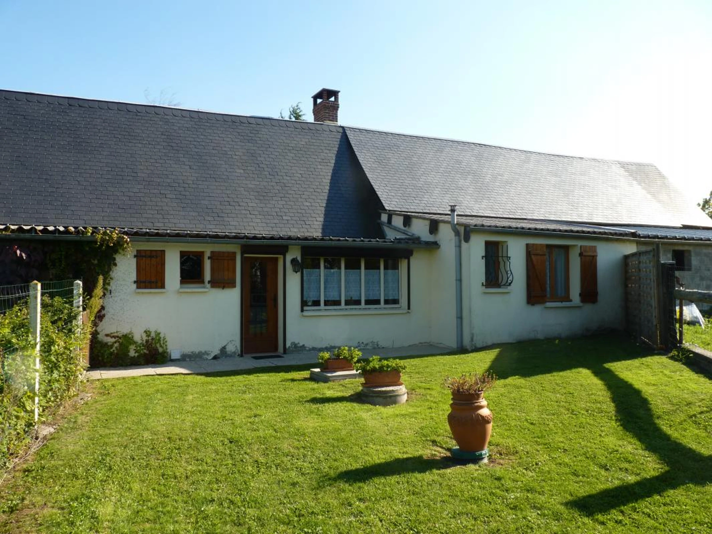 Jardin clos, Maison individuelle, Télévision, Cheminée, Lave vaisselle, Lave linge, Chauffage electrique, Chambre au Rez de C, Plain pied, Wifi, Entreprises, fumeur, Barbecue, Micro-ondes, Parking, Terrasse, Jardin, Animaux acceptés, Jeux pour enfants, Hébergement equipé de Wifi.
