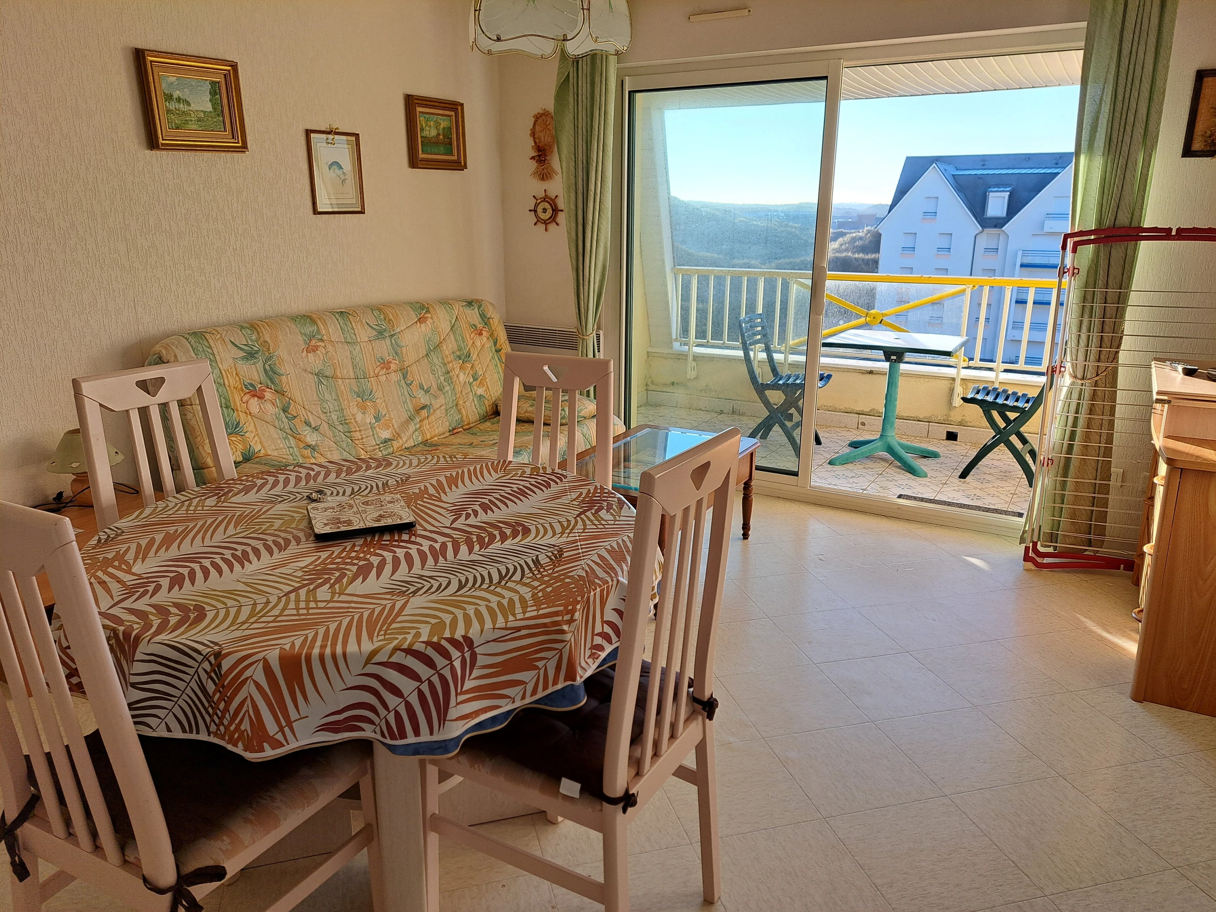 Situé au 4ᵉ étage, il dispose d’un balcon exposé plein sud, parfait pour profiter du soleil tout au long de la journée. L’appartement se compose d’un séjour agréable avec coin cuisine, d’un canapé convertible offrant un couchage confortable, d’une chambre séparée, d’une salle d’eau (douche) et de WC indépendants.